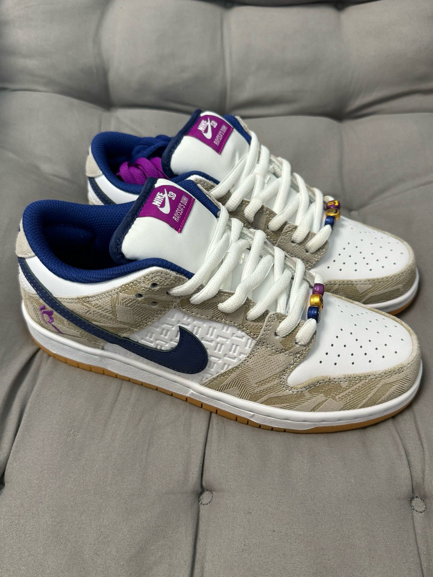 炫一炫我的新战靴!一-Rayssa Leal与 Nike SB Dunk Low联名系列,酷炫登场! **潮流焦点**:这款SB Dunk Low低帮滑板鞋凭借其独一无二的创新配色方案和前卫设计理念,成功引领街头时尚的新潮流。 **独特细节吸睛**:鞋头部分精心设计了串珠笑脸装饰,这一巧思十足的元素让鞋子瞬间活泼起来,展现出难以抗拒的可爱魅力,令人过目不忘。 **全面覆盖受众**:男女皆宜,尺码...