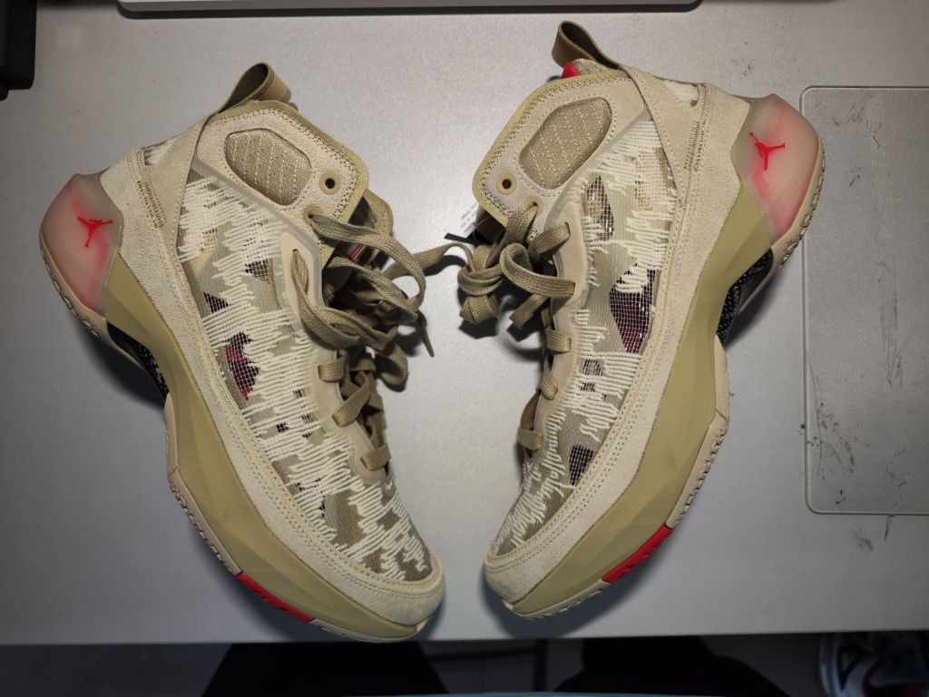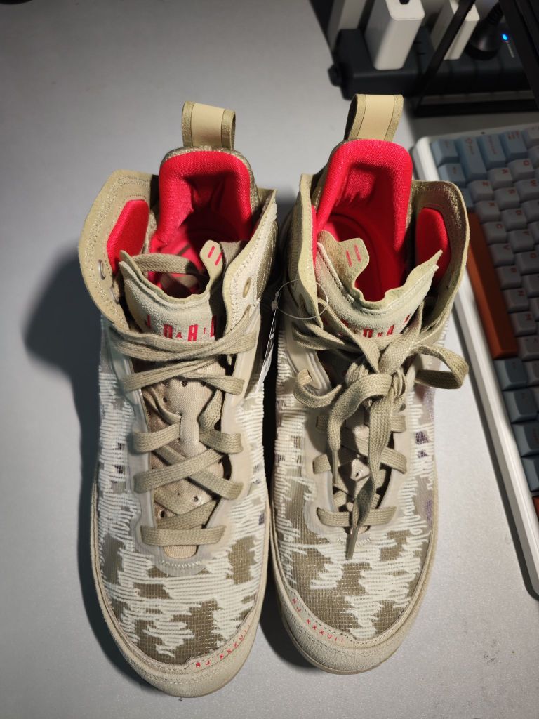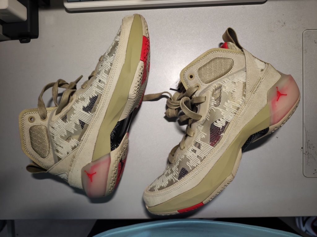 最近入手了一双 AJ37 小麦,初上脚觉得它和之前穿过的 AJ37 所给我带来的感受不一样,尤其是在包裹上面[吃瓜] 于是我就拿他和我之前穿过的 AJ37 兔八哥配色对比于是便找到了答案,是小麦配色的鞋面有所加强[大胆一点]这样才导致同款产品不同感受[嚯][嚯][嚯] #airjordan37 #球鞋细节控 #a j37 #谁还没有一双AJ #把春天穿身上