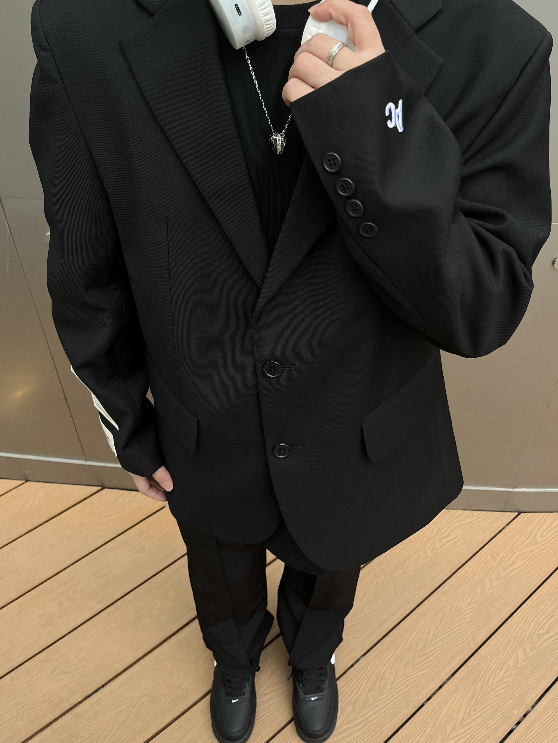 简单干净有质感的穿搭往往能给人留下印象 极简主义是一种追求✔️也是一种生活态度 上衣选择ARDENCODE🕋的宽肩西装正装 上身很干练大方 自带成熟稳重的气息🤓 两只修口各有一边刺绣𝐀𝐂和贴布设计👌 不会过于正式放到有更加轻松自由的感觉💯 宽肩设计修饰肩头比拉长比例 面料硬挺有型 裤子搭配一条黑色的休闲西裤🥷🏻百搭耐看 鞋子选择小ambush的黑空军 最近常上脚 - 🙋🏻♂️170/115 👔M...