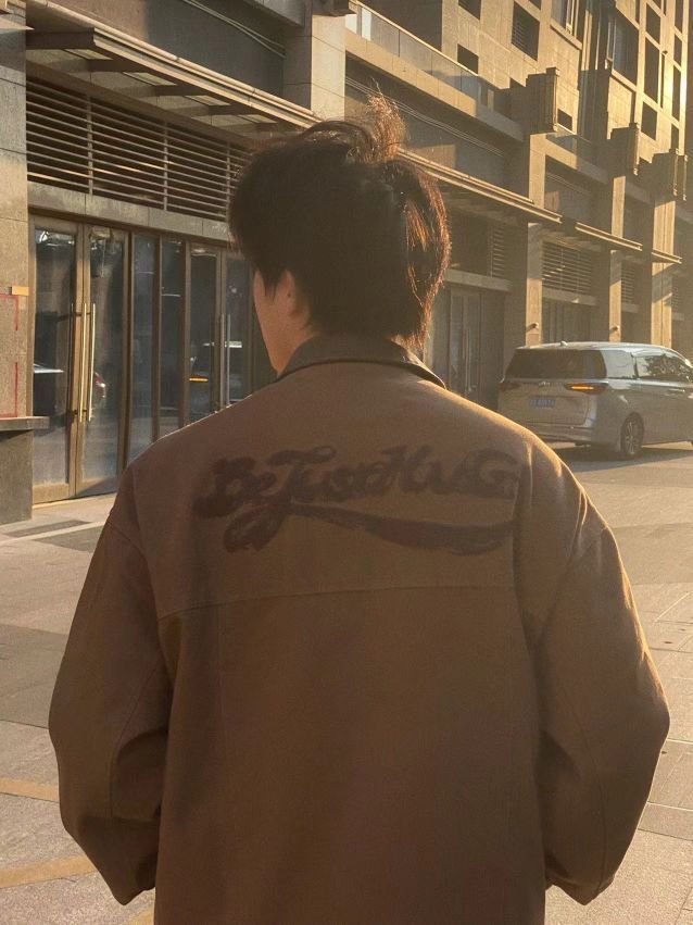 🌈美拉德风穿搭我真的好爱,午后阳光下有着暖融融的氛围感,棕色复古夹克轻松营造穿搭高级感。 🌈廓形夹克版型笔挺,领子拼接水洗pu皮,增强设计感,斑驳的质感和美拉德的复古风太搭啦!背后还有大片的的破坏感刺绣,充分保留美式街头风,午后的好天气穿这身出门吧! 🌈搭配黑色牛仔裤,一套深色系的穿搭稳重又耐看。 (图片来自博主:BeJustHuG_BJHG)