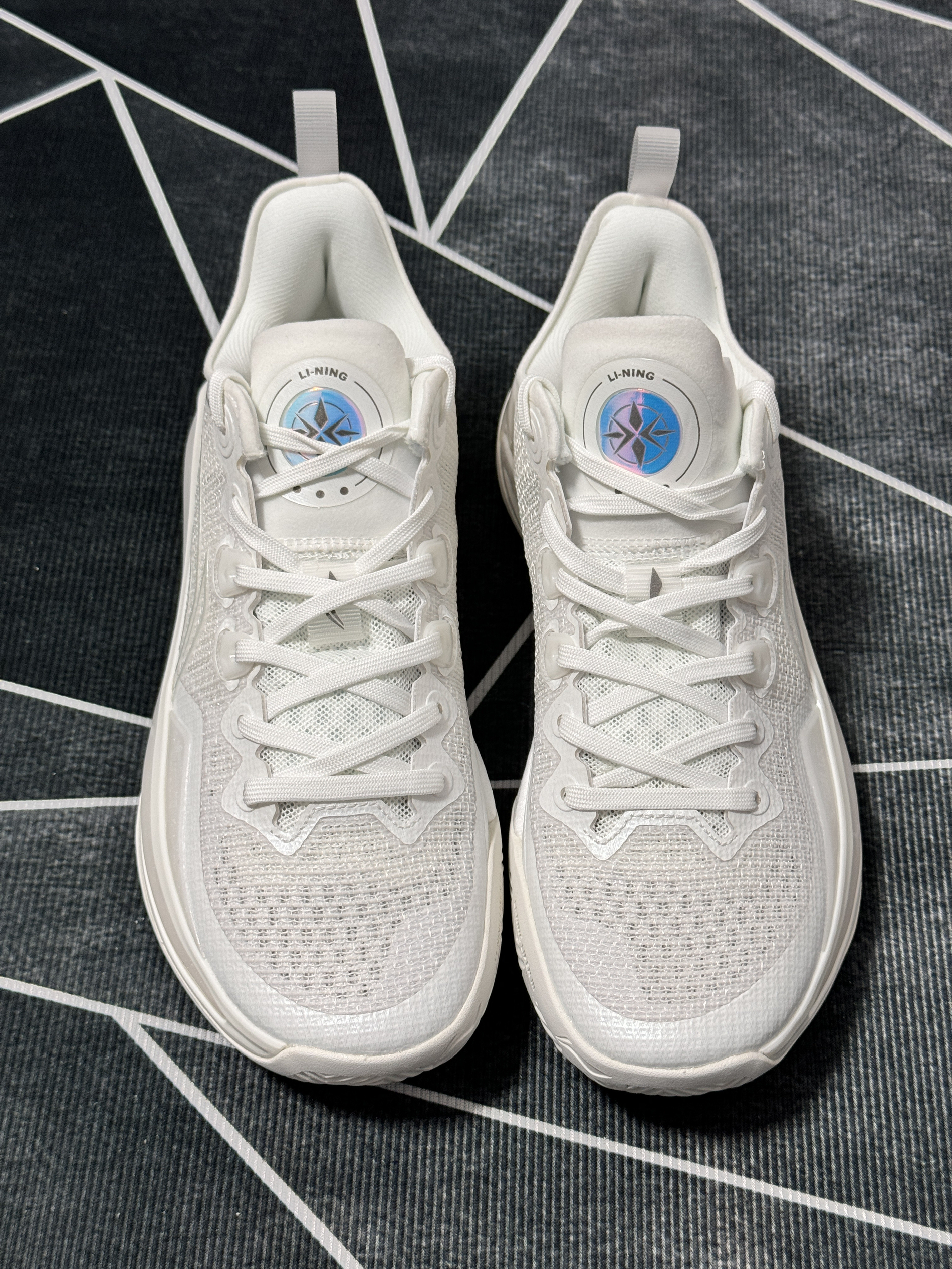 今天分享一款宁子的实战鞋,利刃3 v2白珍珠配色。 这双鞋用的大面积网布,非常透气,鞋底用的李宁当家科技,缓震也是很不错的。 鞋身全白配色搭配鞋舌独特的渐变logo,颜值很高,感觉压马路也是不错的选择。 缺点就是非常不耐脏,打两场球就黑了😭 最后尺码不偏码,脚宽的建议大半码!