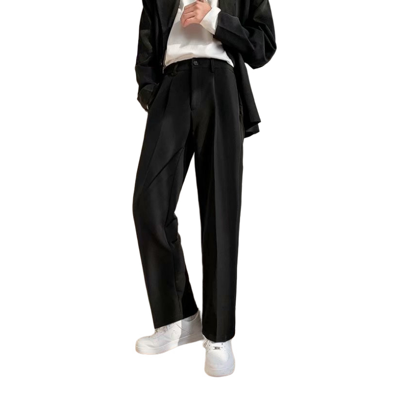 ✨男生不要把西裤的印象定义为只有穿正装的时候才会穿西裤,其实日常生活里,偏休闲宽松一点的西裤可以搭配的衣服炒鸡多,而且都很好看! ✨春夏西裤可以搭配短袖t恤,简简单单的白t也行,或者胸口加点字母设计的都是没有问题的,不要太繁琐的就行,温度稍微低一点可以外面加个西装外套,不要正式的那种哦,真的非常好看! ✨一般男生的柜子里裤子都不会特别多,因为男生穿裤子挑中一条耐穿的裤子他会一直穿它!是不是特别懂你...