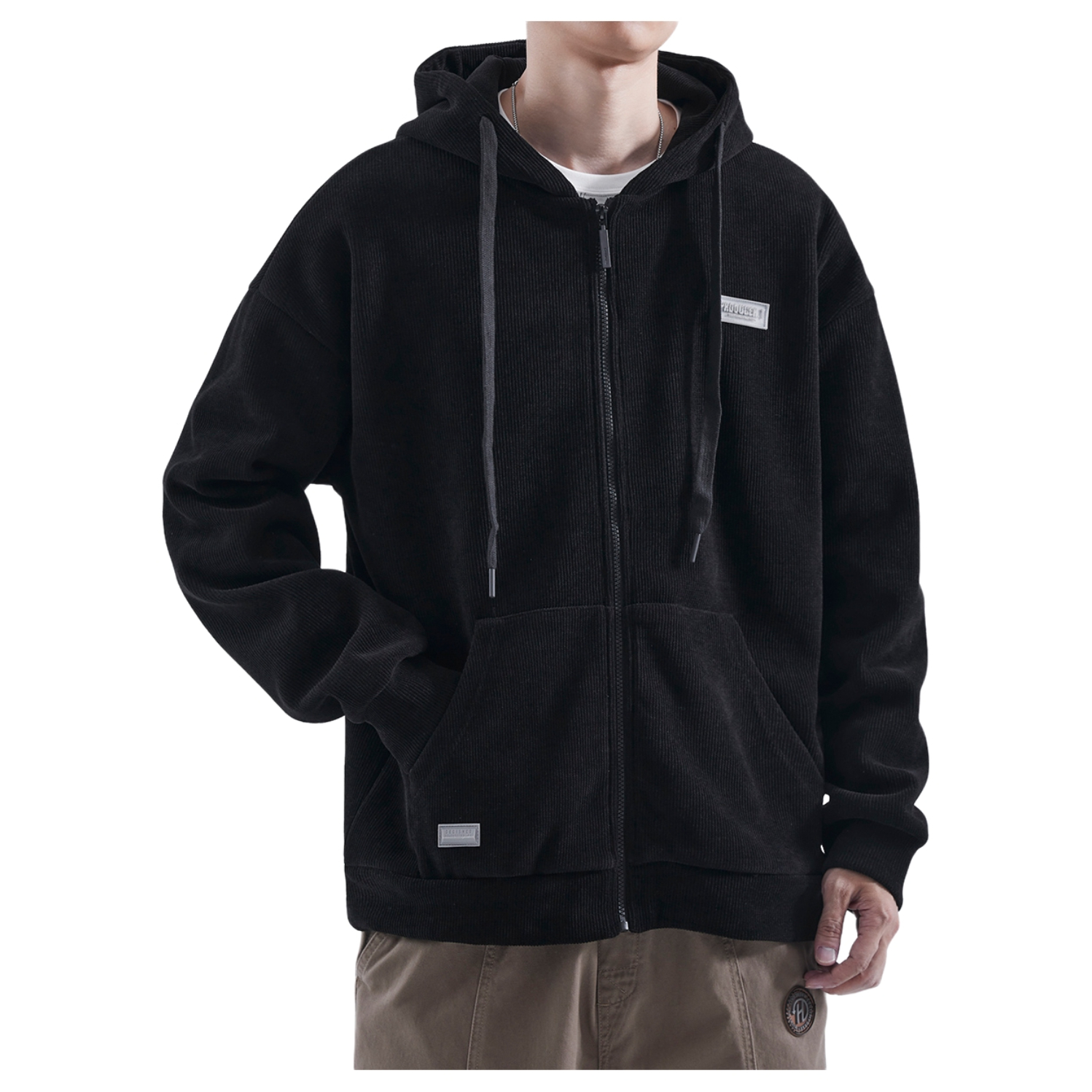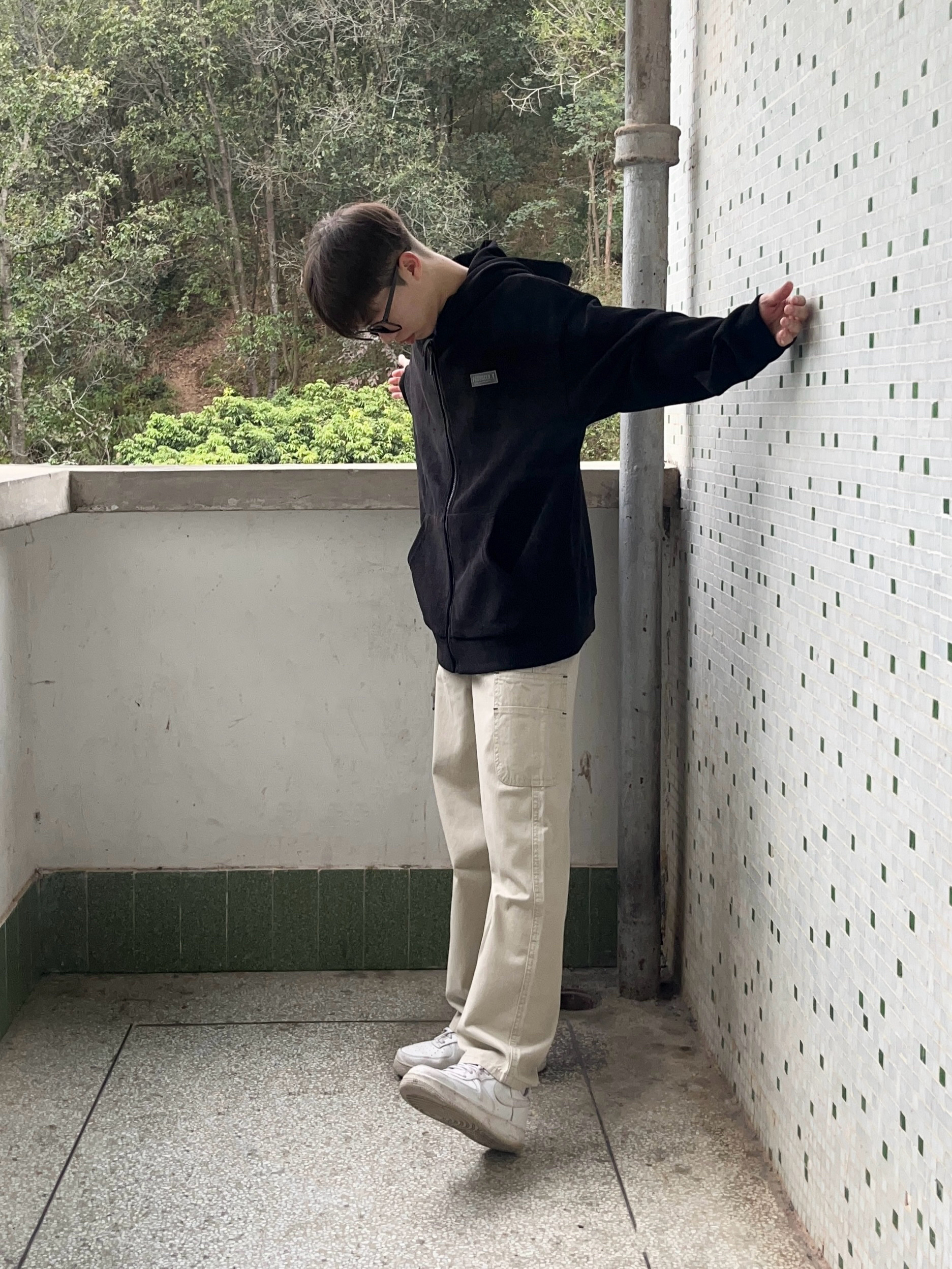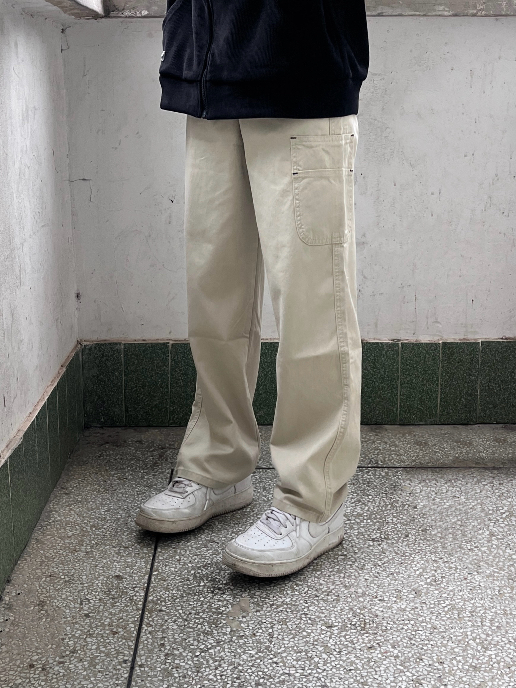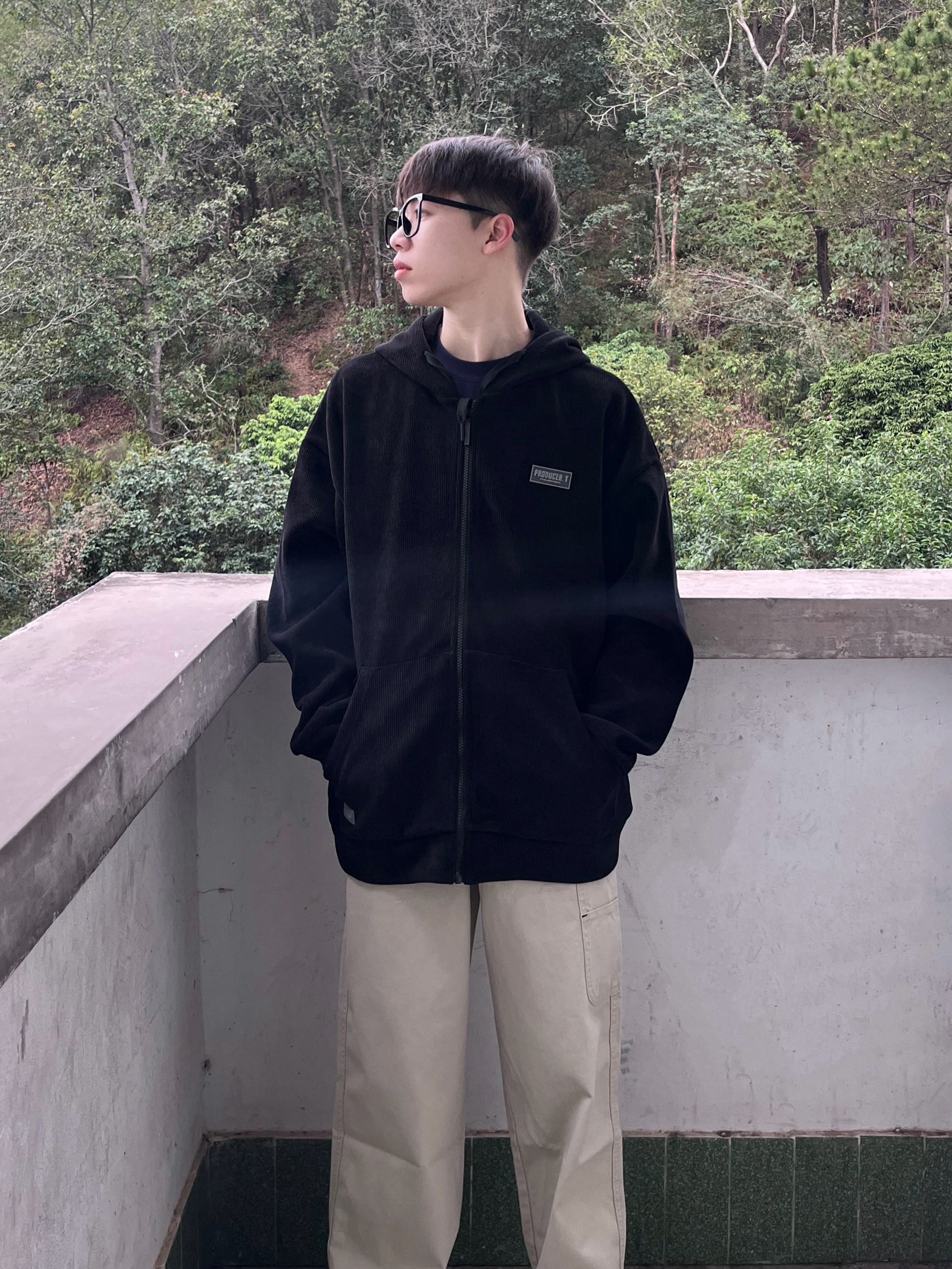 今日份穿搭分享look👀 衣服是黑色的简约连帽卫衣 面料柔软舒适 穿上很有oversize感 再搭配一条浅杏色工装直筒裤修饰腿型 版型宽松显瘦 最后上脚一双经典空军一号板鞋点缀 鞋底防滑耐磨 穿上后脚感舒适透气 一套搭配下来 日系风拉满