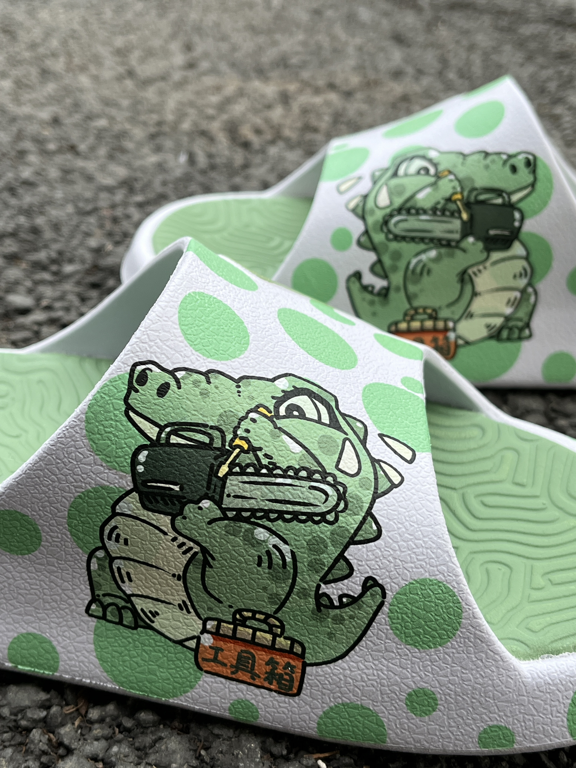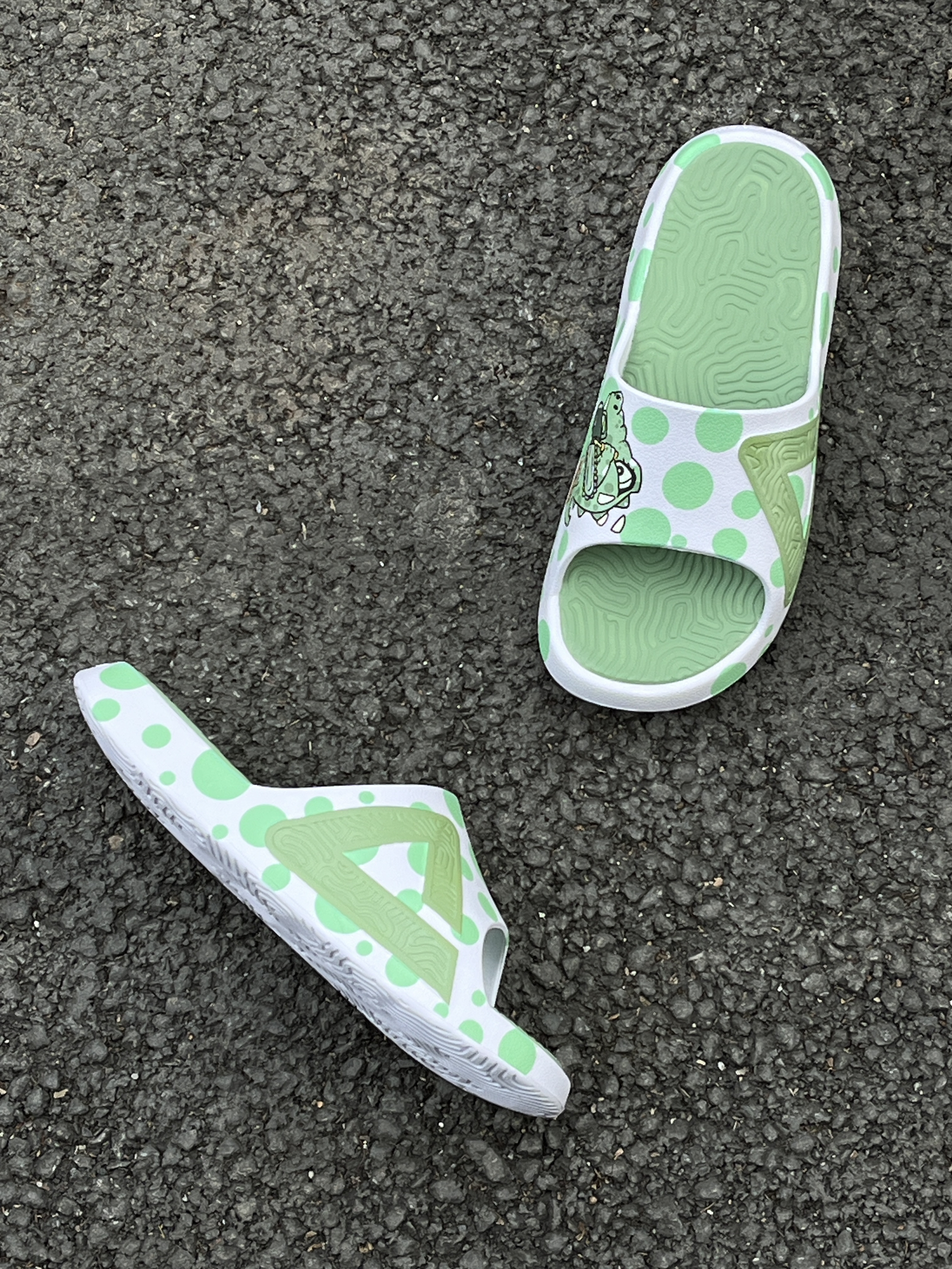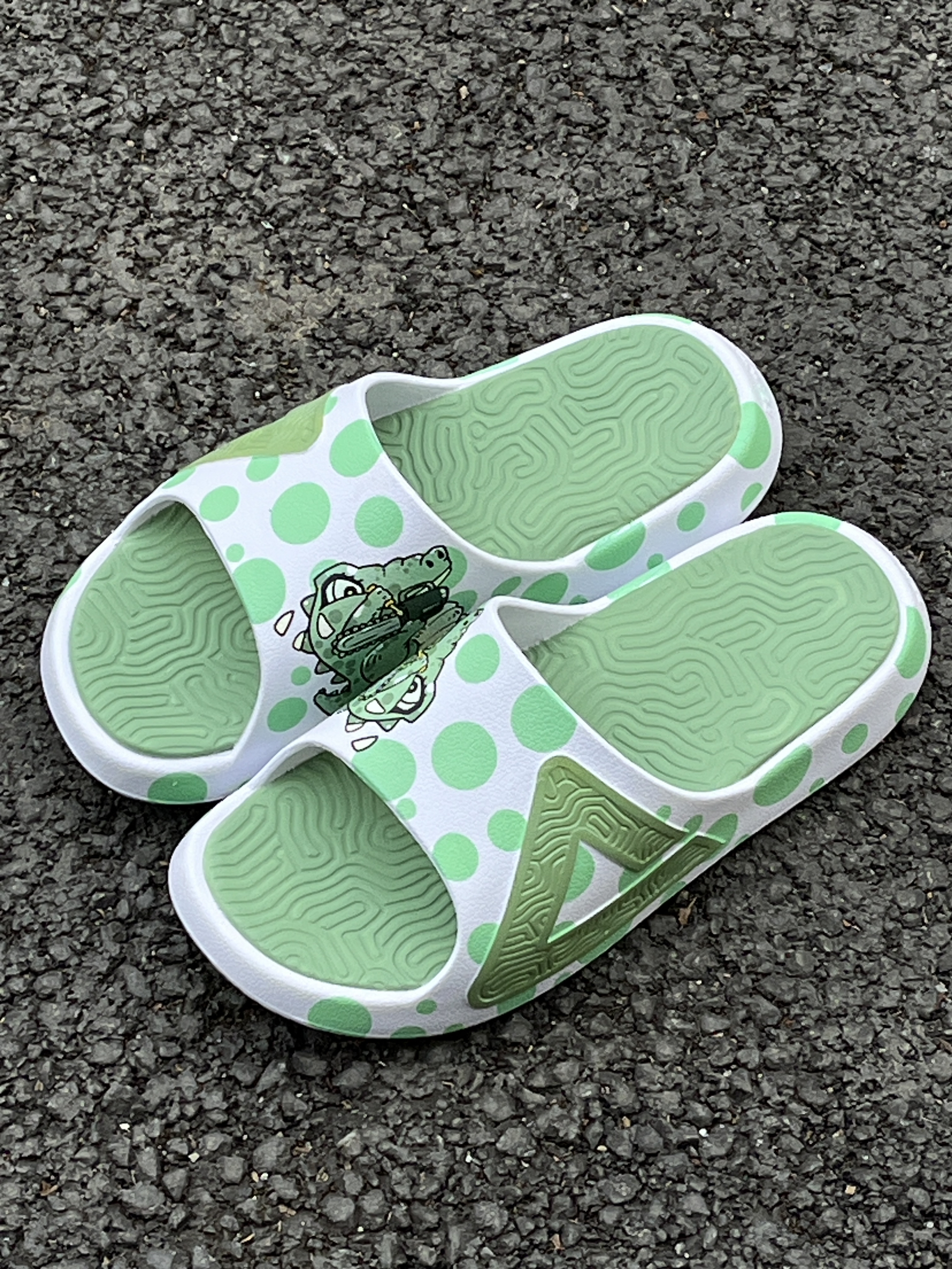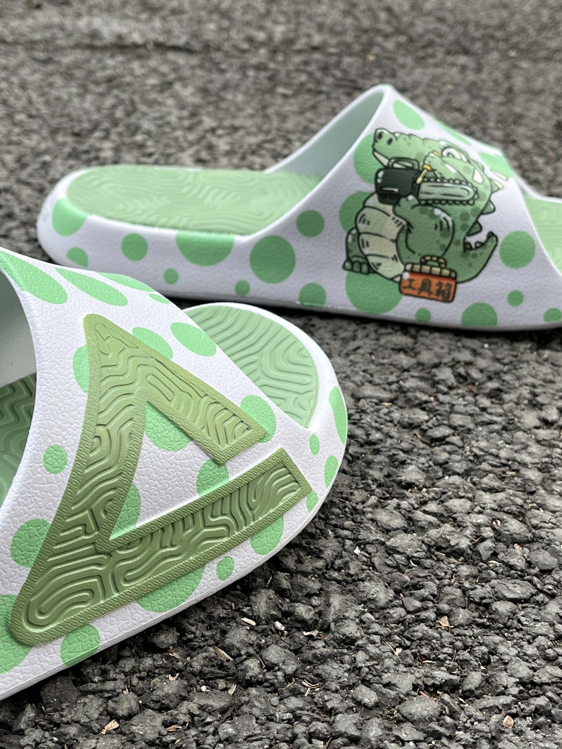 哈喽购大家好,这里是CC_同学 今天给大家分享一双很有创意的拖鞋 就是这双 匹克国创系列 态极拖鞋 小鳄鱼涂鸦 实物收到手有种专门定制鞋的视觉感! 白色十绿色的组合也太有夏天的感觉了吧! 干干净净有活力! 穿腻了黑白色不妨尝试一下它吧! 绿色小鳄鱼的四涂鸦也太有童话感了! 可谓个性十足! 上脚脚感。也很舒适,踩鱼感很足! 日常出行或者运动完穿着都很合适! 尺码建议拍大一码脚感更佳!