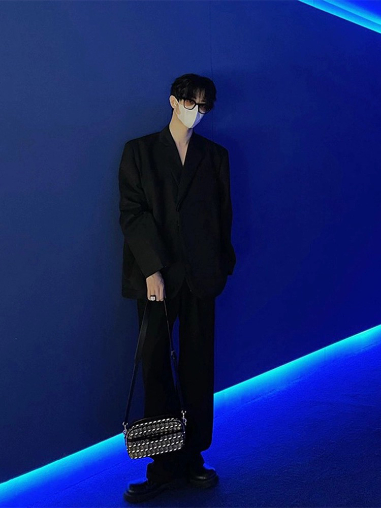 那不勒斯西服套装痞帅男装三件套高级感英伦雅痞垫肩休闲西装外套