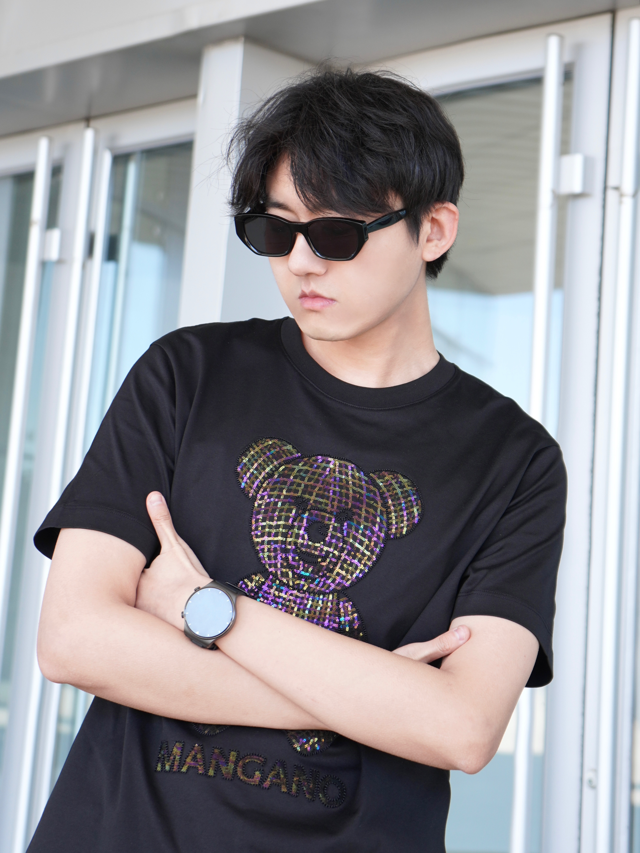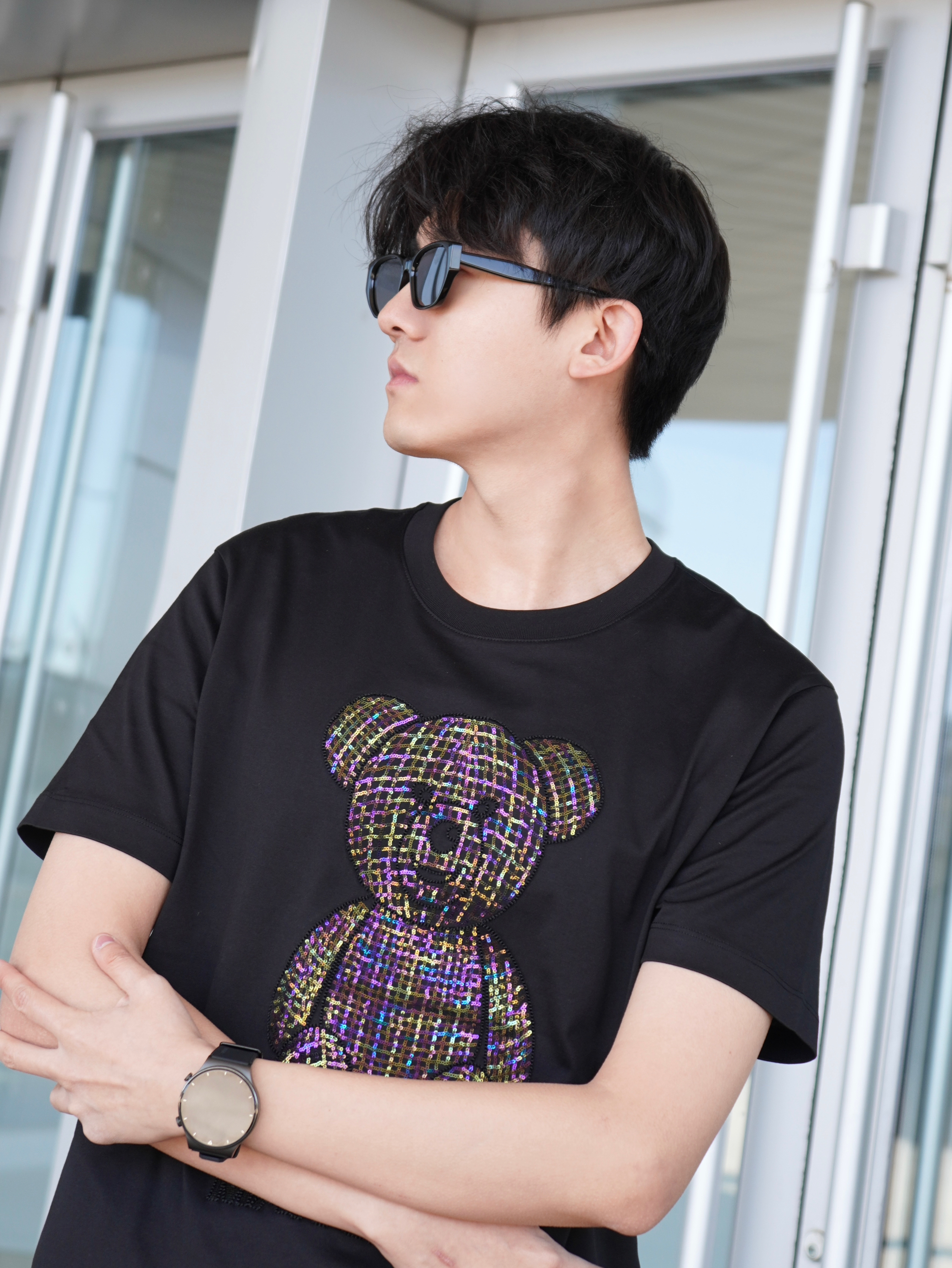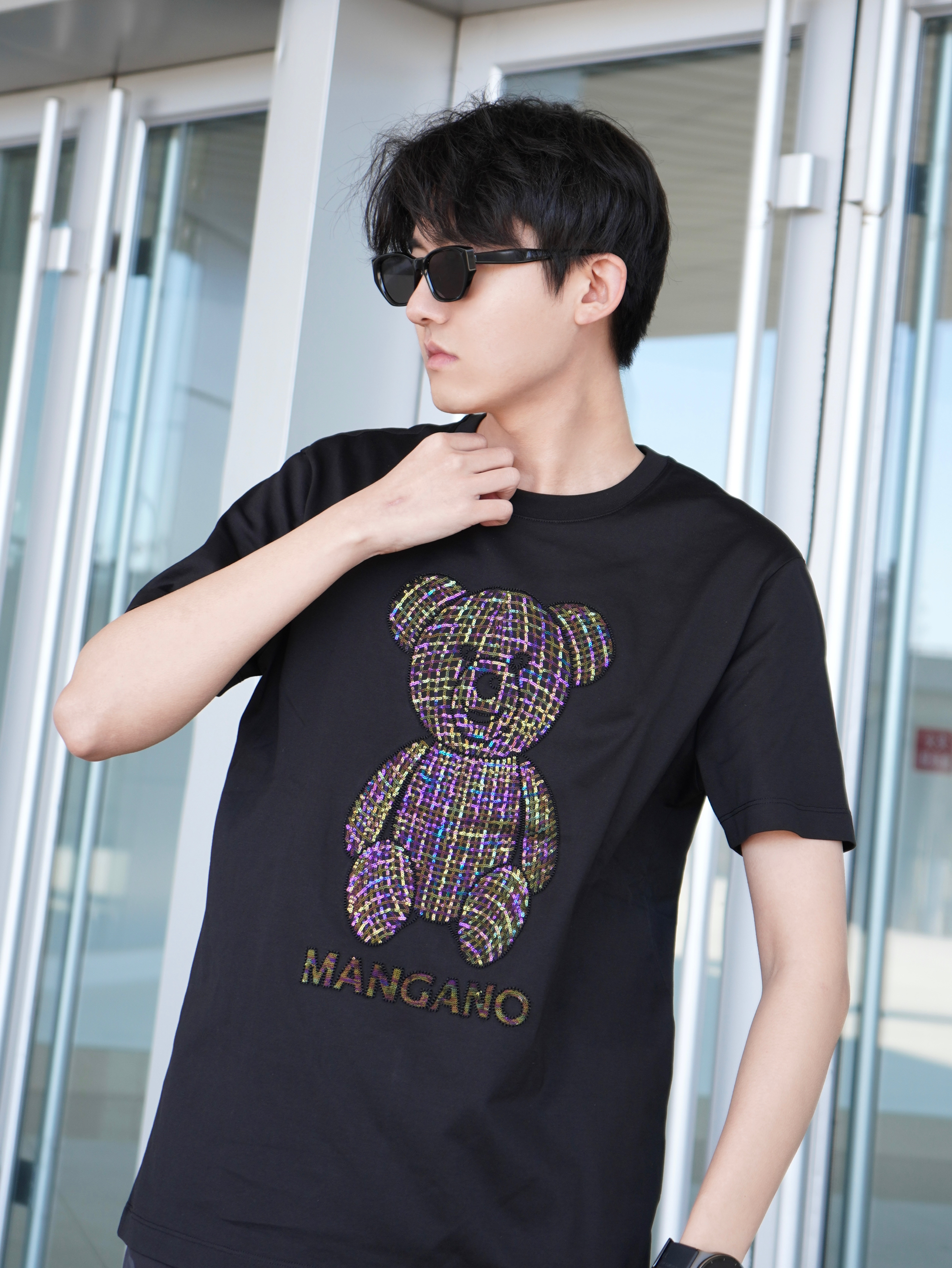 黑白配真的能提升高级感🖤🤍 T恤是来自MANGANO家的小熊满钻图案阳光下很闪 面烙柔软舒适 做工细腻亲肤 弹性也很不错 纯棉透气 - 再搭配一双定制版AF1 龙年限定配色和印花 上脚时尚脚感舒适~ - 参考:身高178cm/体重65kg 上衣:MANGANO 裤子:JEEP 鞋子:定制版AF1