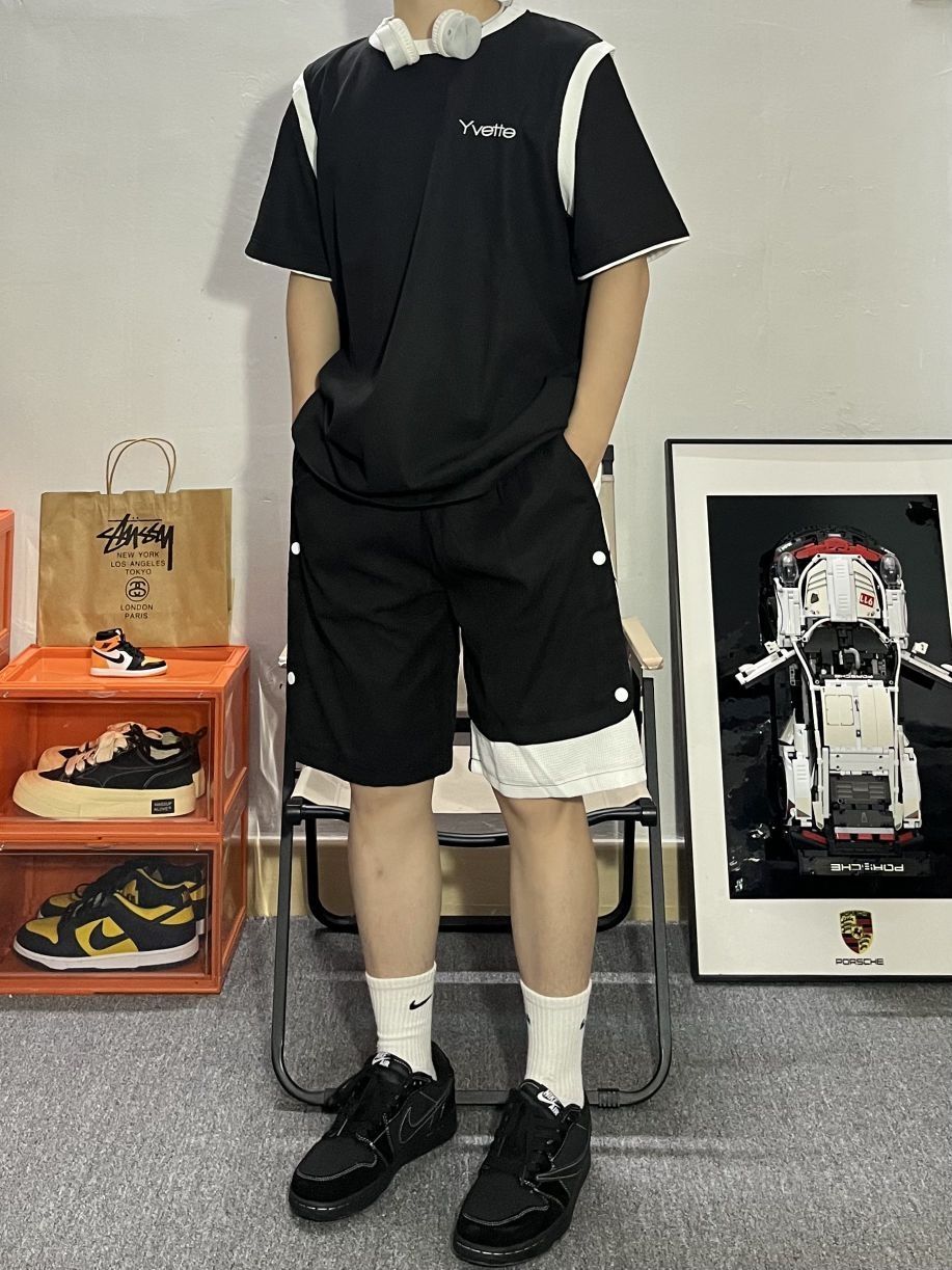哈喽这里是pupu同鞋🏄🏻♂️ ——————————— · 👔👖:薏凡特 春天终于到啦!运动套装赶紧支棱起来 简简单单的插肩短袖✔️搭上运动短裤 不会搭配的一定要选择这款套装。黑白风真的不会出错!一套下来黑白配干干净净运动大男孩很难不心动🤓简约又有设计感 · 👟:倒钩 ——————————— 💁🏻♂️:170/115 以上都是个人观点🍟欢迎讨论