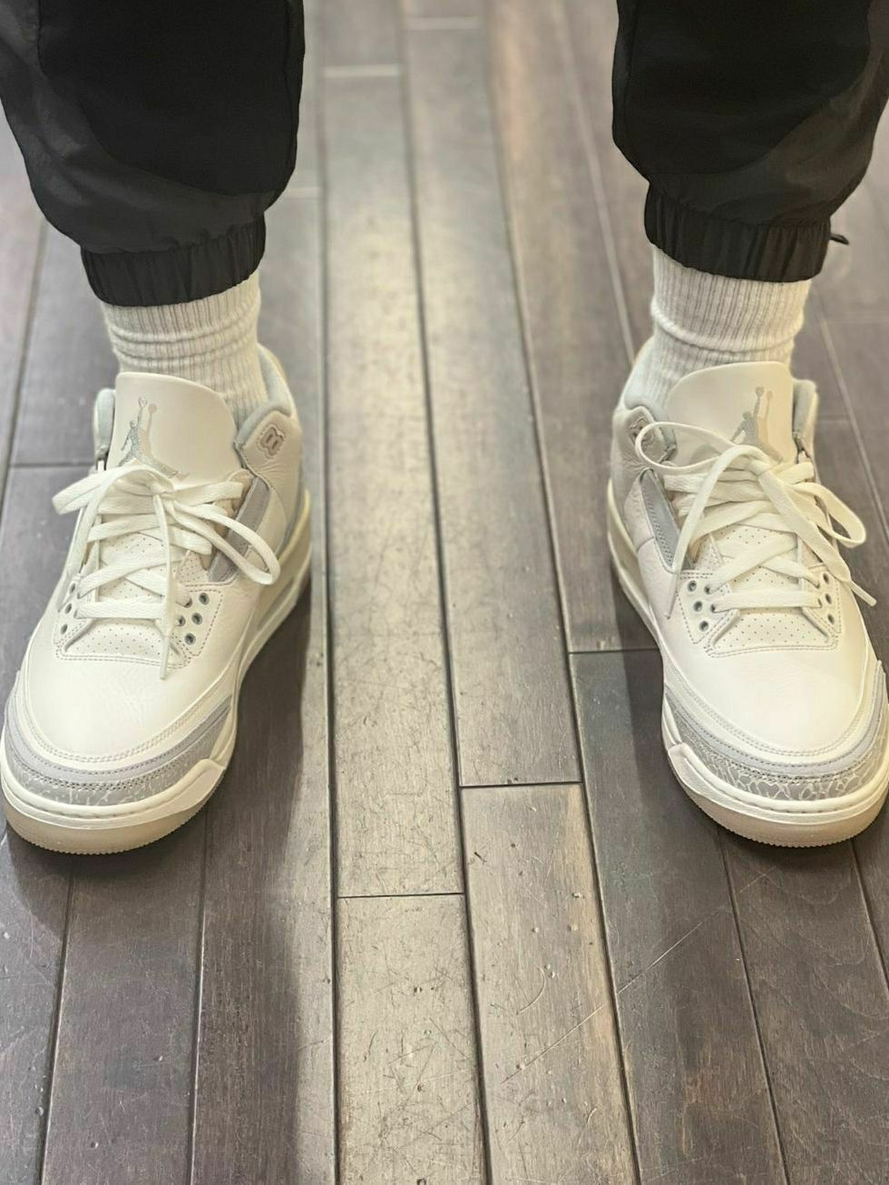 本篇笔记关联了Air Jordan 3 运动休闲鞋 潮流复古抓地支撑缓震合成革圆头 象牙白/薄雾灰等商品,为用户提供真实的使用体验和购买参考。