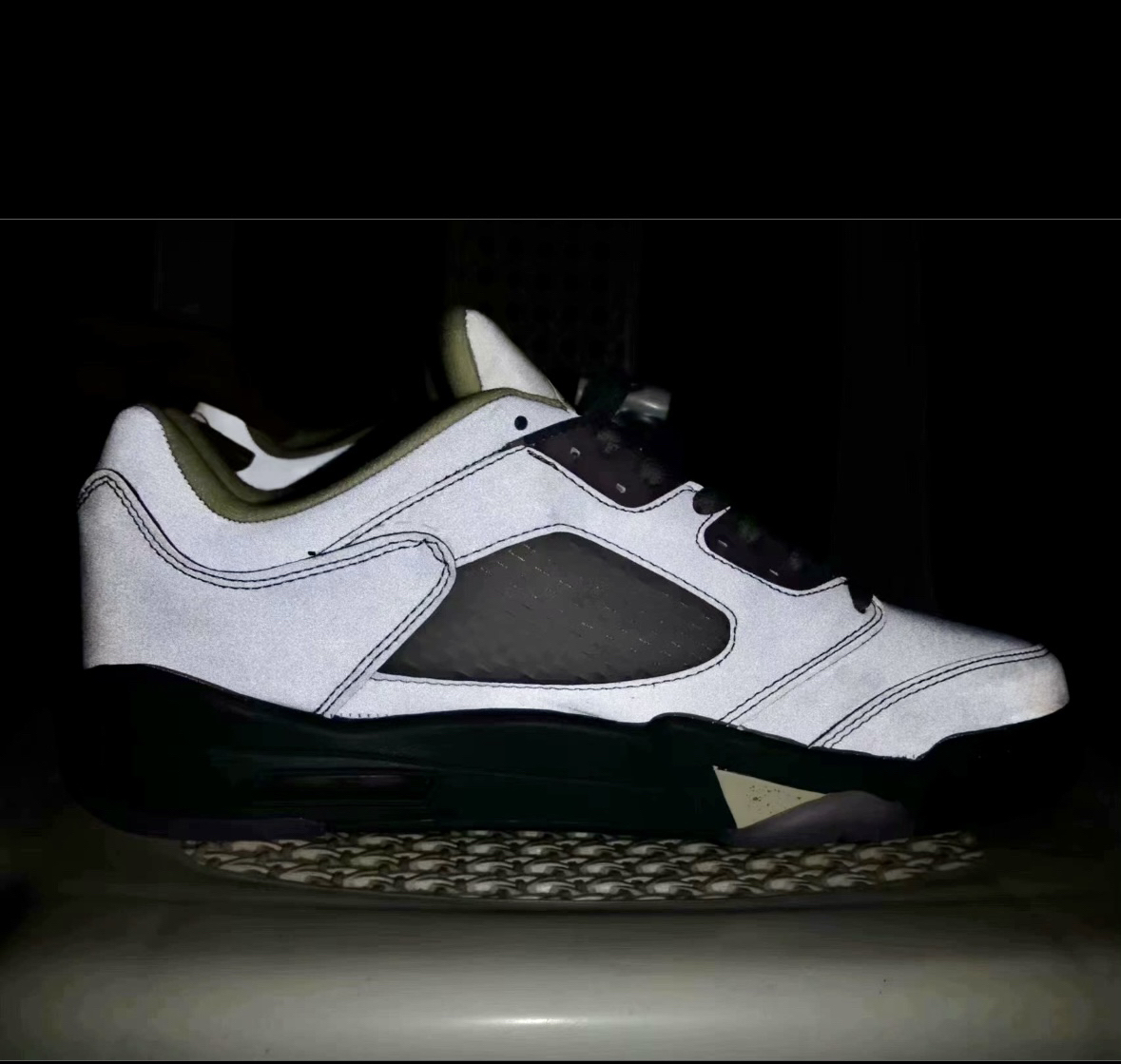 这双 aj5 “Indigo Haze”靛蓝雾霾 真的会发光‼️ 🌟鞋面采用3M材质,不同部分在光照下会呈现不同的颜色,反光效果真的巨帅🥰 🌟鞋面是灰蒙蒙的蓝色,复古感满满,而且非常耐脏 🌟整鞋采用浅色调,淡绿色内衬,非常清新