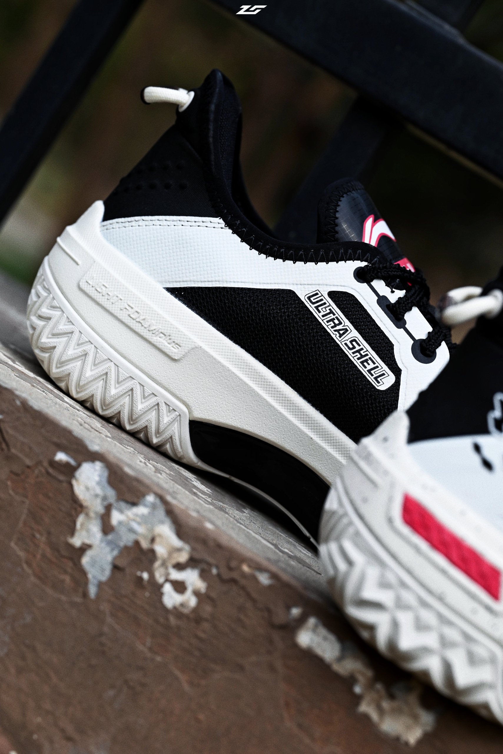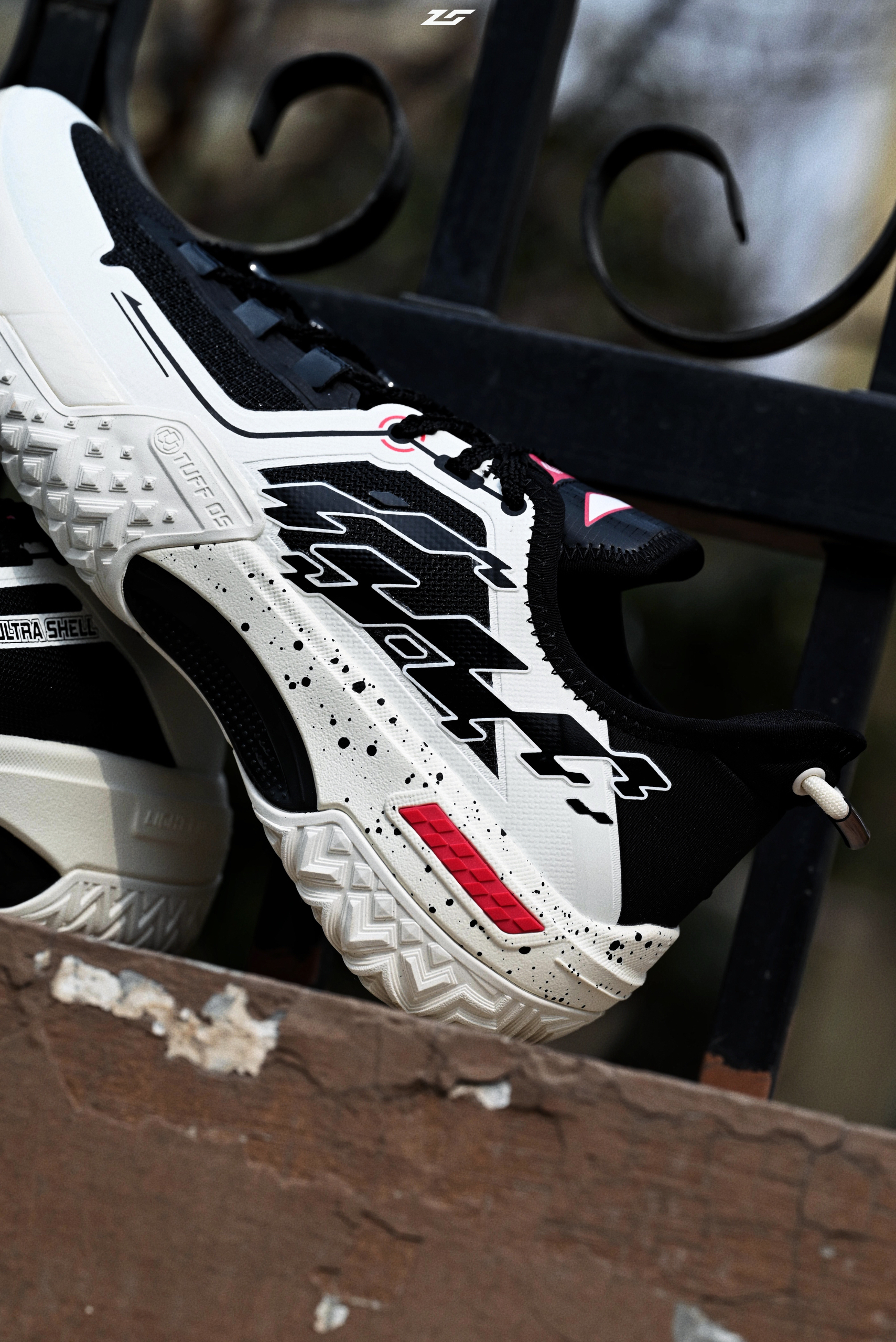 低帮现有的四个配色里,要论颜值,四双见仁见智,各有各的喜好,颜值都挺在线,但是要论配色匹配度,这个黑焱配色无疑是最符合鞋名“桀骜”的。 鞋身黑白相间,红色的点缀虽小但吸睛,侧面的李宁LOGO也是个性十足,整个外观完美符合我印象中“外场野兽”的模样。 低帮除降低了鞋帮高度以外,配置上也有小改动和升级: 鞋面ULTRA SHELL科技,搭配热熔压胶的地方稍加改动,多了一组动态绑缚鞋带孔,鞋带也换成了麦...