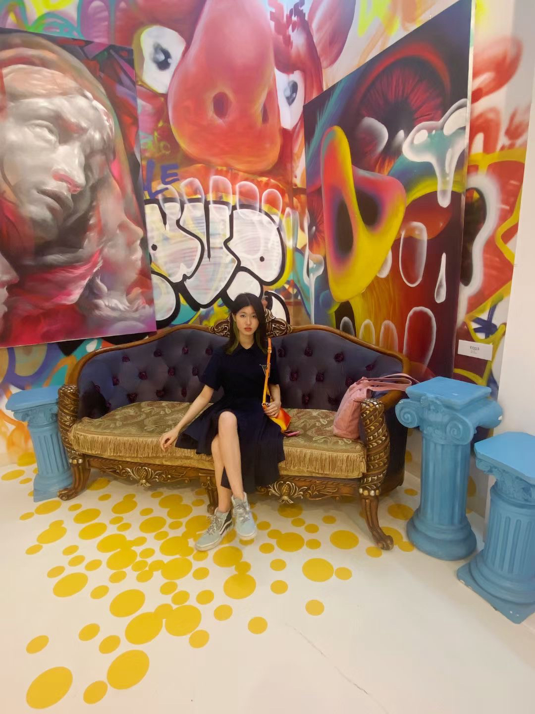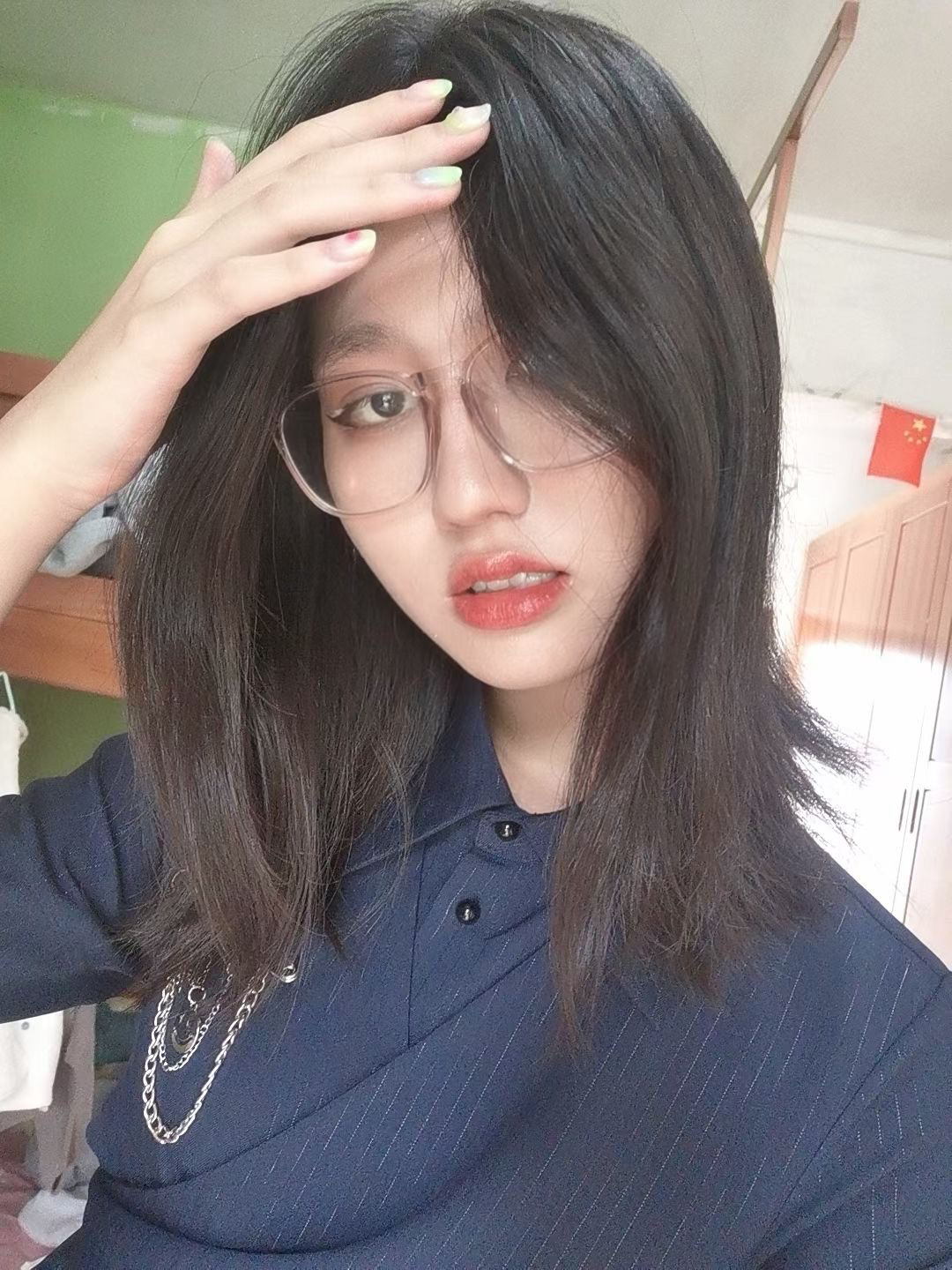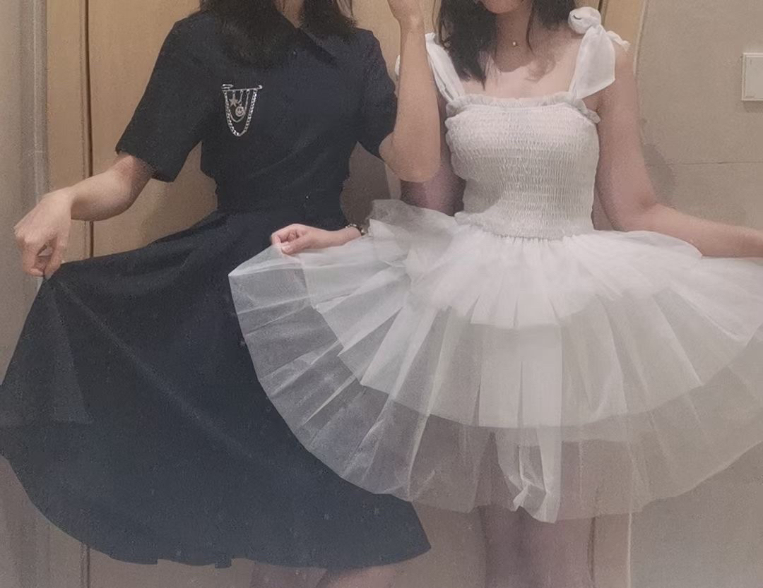 这条裙子的设计感好绝啊,裙边是不对称设计,而且后面还有露腰设计,深蓝色嘎嘎显白
