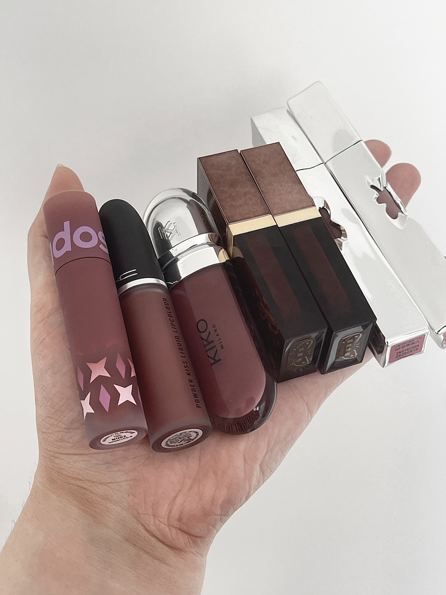灰粉脑袋快来!也太好看啦! 值得一提 灰粉色很容易受光线影响 我这里最近总是阴天光线比较差 无滤镜原相机也会和实际看到有色差 请大家见谅 1⃣️kiko 21 2⃣️Mac尤雾弹唇釉997 3⃣️万花镜 NU02 沙丘 4⃣️Girlcult G61 蕾丝炸弹 5⃣️Girlcult M50 羊皮书 6⃣️小奥汀 花心唇泥 03 7⃣️小奥汀 花心唇泥 08