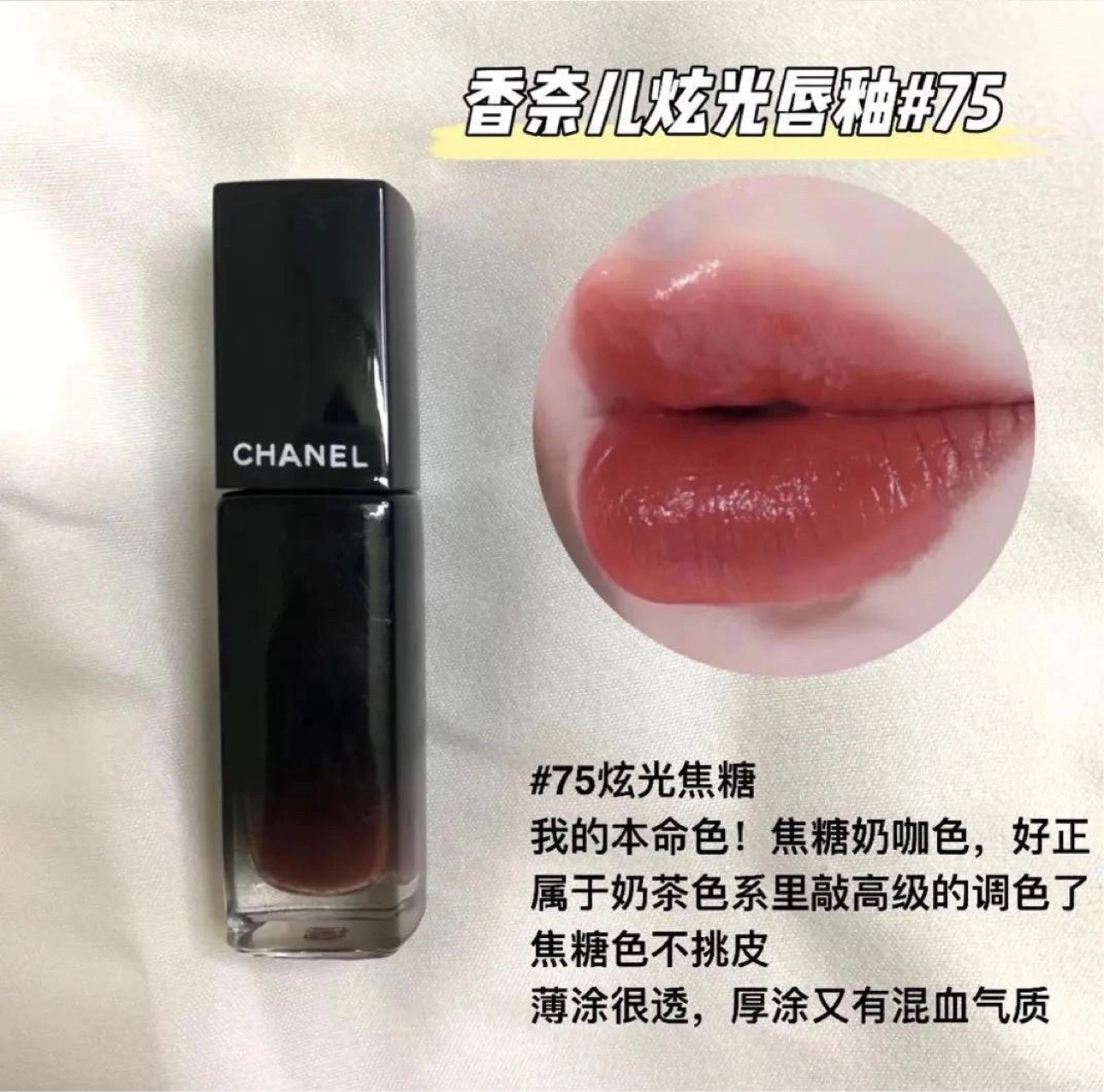 本篇笔记关联了Chanel/香奈儿 魅力炫光唇釉唇蜜 提亮显白镜面 5.5ml 75FIDÉLITÉ、Chanel/香奈儿 魅力炫光唇釉唇蜜 提亮显白镜面 5.5ml 74EXPÉRIMENTÉ、Chanel/香奈儿 魅力炫光唇釉唇蜜 提亮显白镜面 5.5ml 72ICONIQUE等商品,为用户提供真实的使用体验和购买参考。