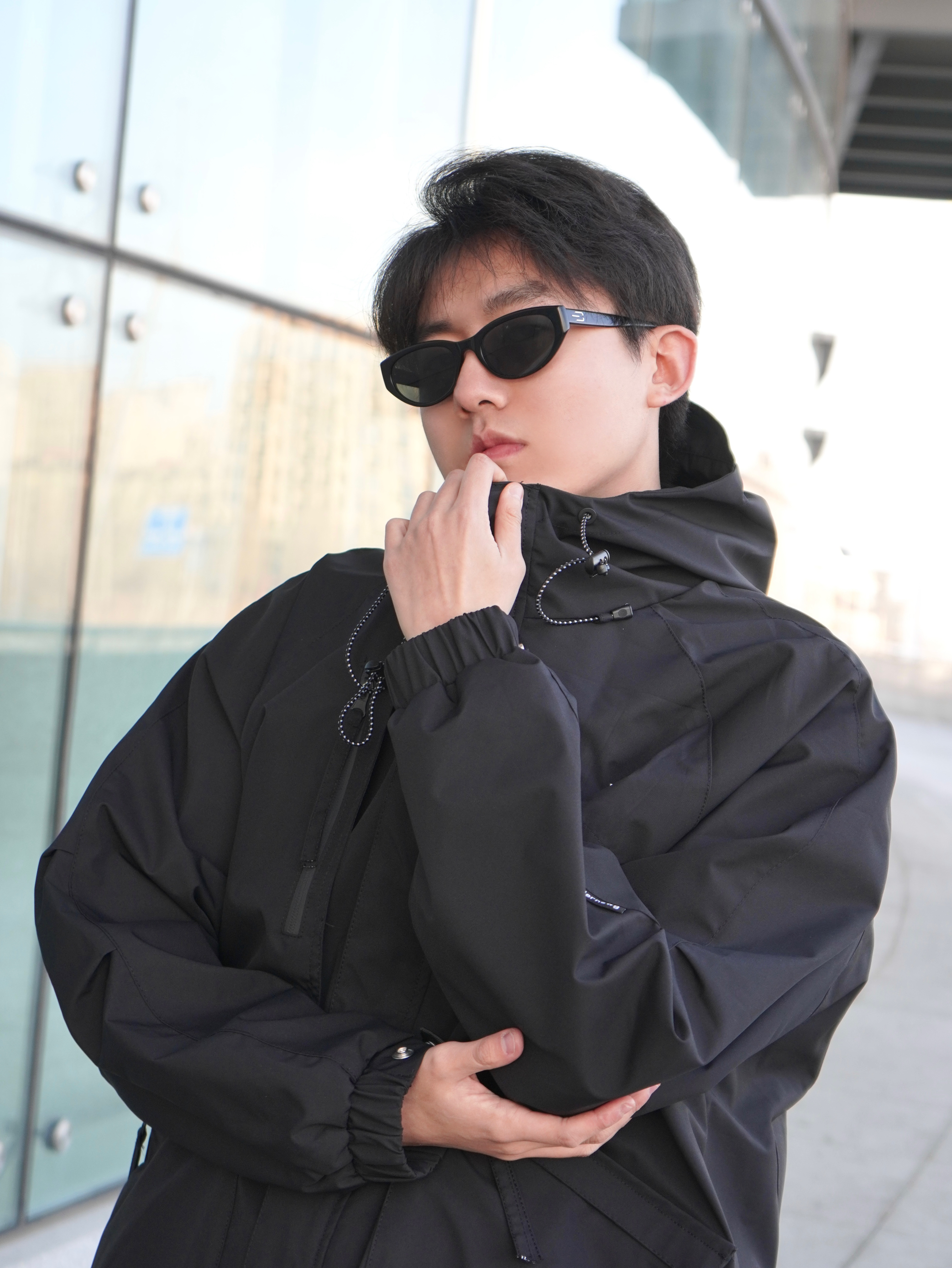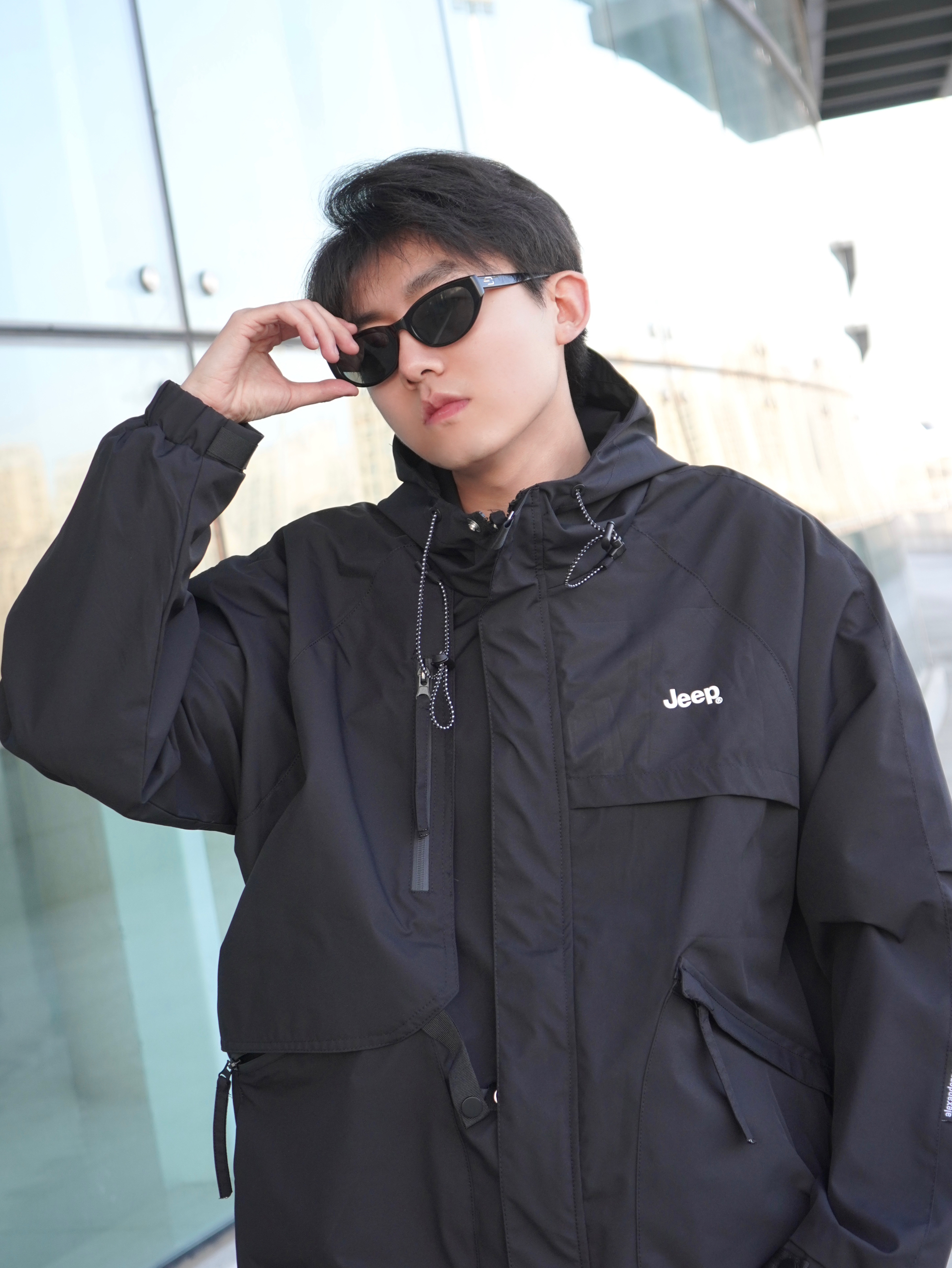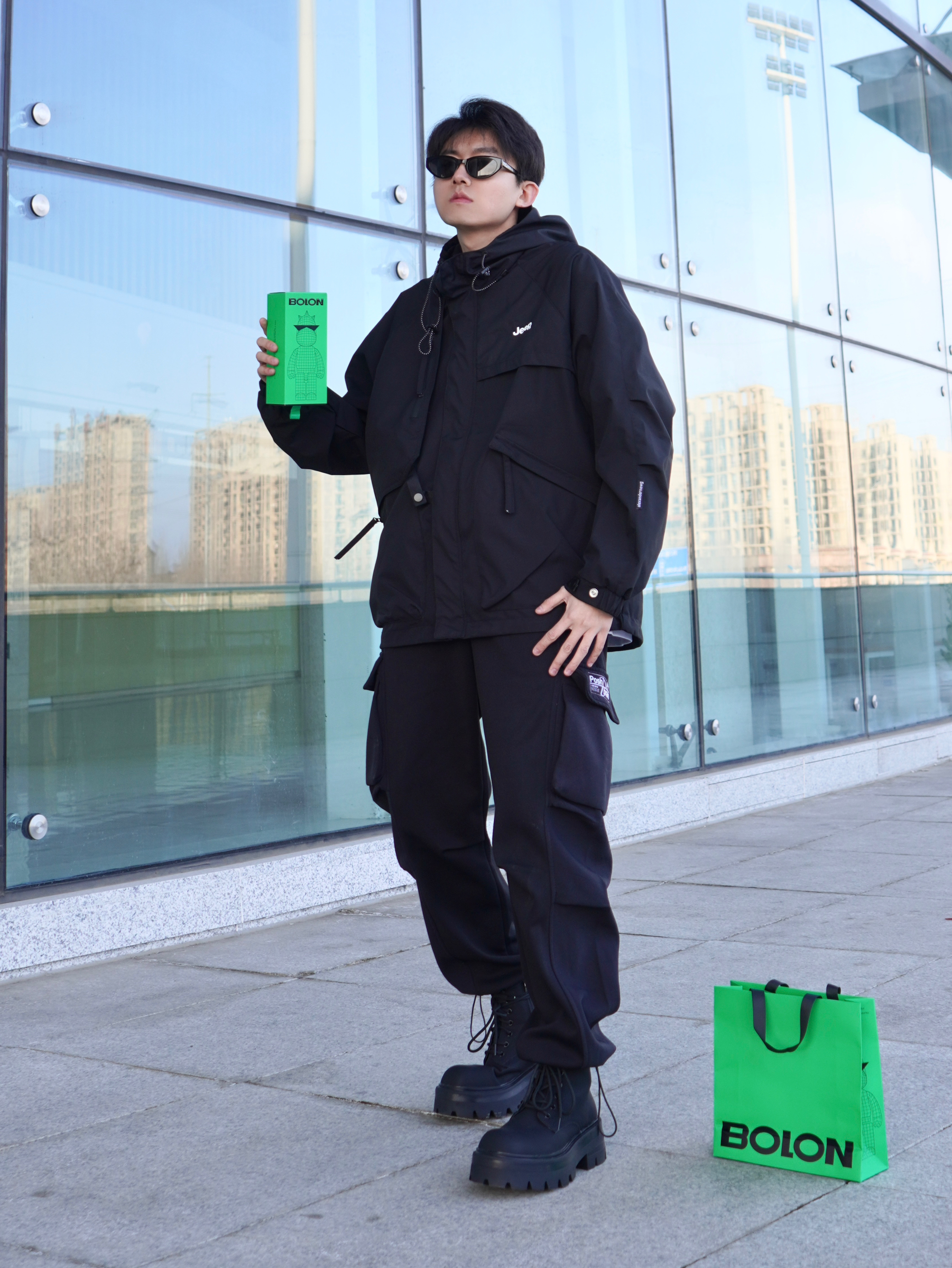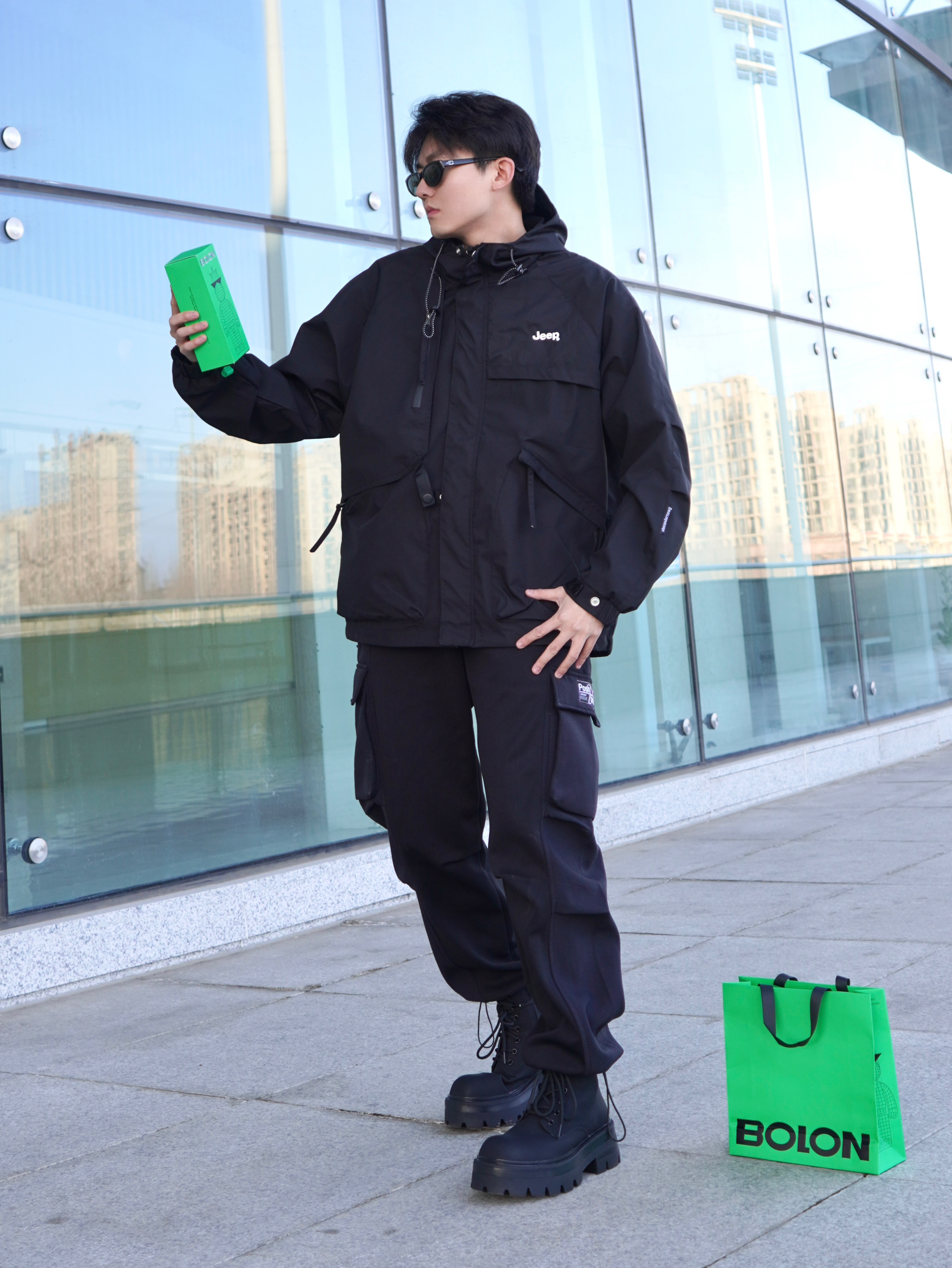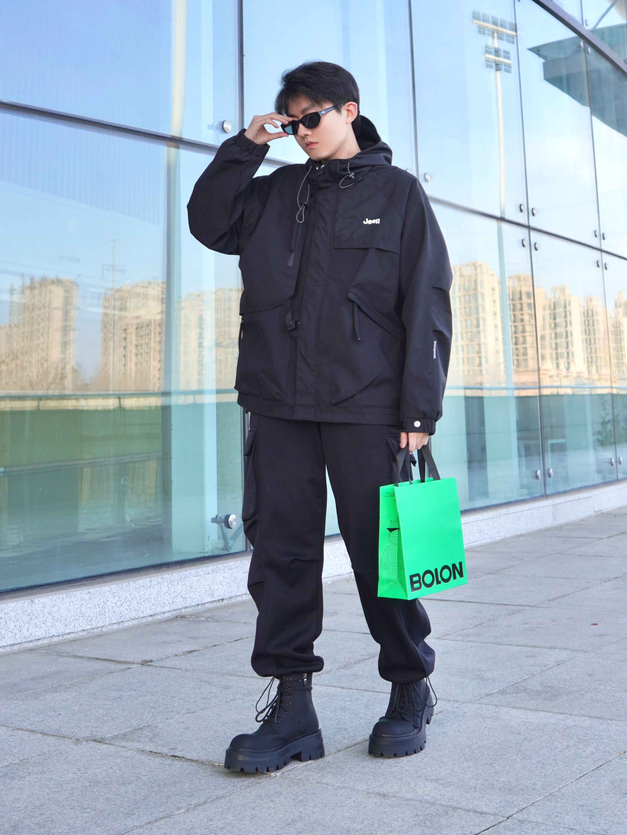 今天的造型灵感来自黑武士 上半身搭配一件黑色冲锋衣 下半身选择工装裤和马丁靴 主打一个暗黑色系穿搭 上身机能感十足~ - 墨镜是来自BOLON家的 猫眼造型设计潮流感十足 防晒偏光满足日常需求 无论拍照还是开车都很实用 镜腿还点缀了金属logo - 【参考】身高:178cm | 体重:65kg 上衣:Jeep 墨镜:BOLON暴龙