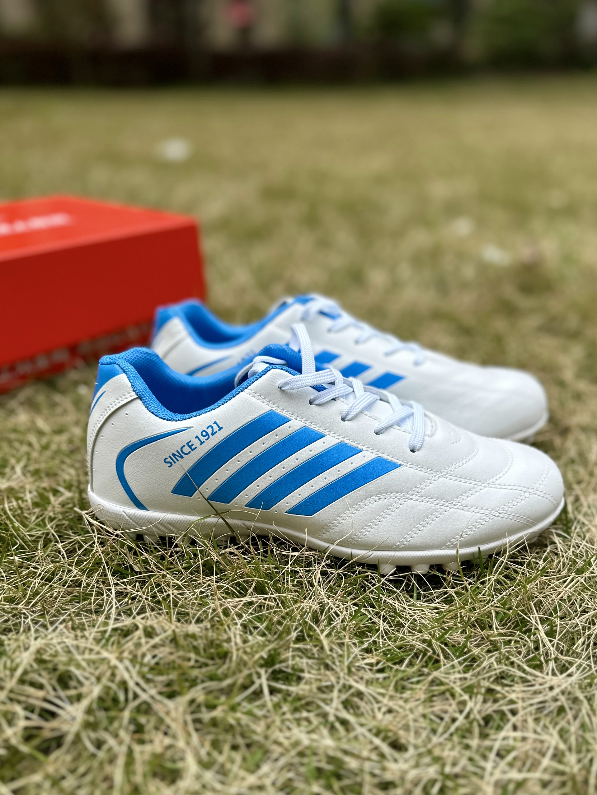 哈喽朋友们大家好呀,又是高冷同学全新一期的好物推荐!😉今天给朋友们带来的这双蓝白配色的足球鞋真的超有性价比呀! 对于我这业余的足球爱好者来说,一双舒适轻便的足球鞋真的可以好好享受一场足球比赛呀!😝这双足球鞋就很适合我,蓝白色的配色真的很好看,我觉得也可以当作休闲鞋去穿搭~🤩 鞋子的外形设计也是主流的球鞋语言,鞋子轻便,脚踝处也很灵活!😎鞋子给到的支撑还是很不错的~鞋底的鞋钉也是防滑耐磨,在足球...