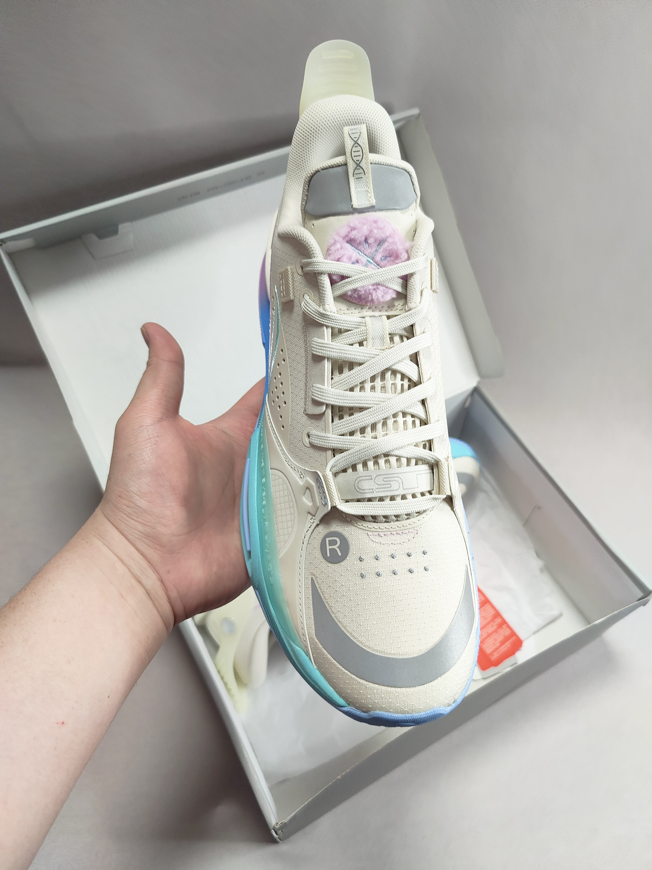 一直觉得全城10的颜值很能打,虽然出了那么多配色,李宁的棉花糖配色一直是我的爱! 整体脚感均匀!前掌启动反馈很好,鞋面支撑性,足弓支撑都还可以,不过后跟有轻微掉跟情况