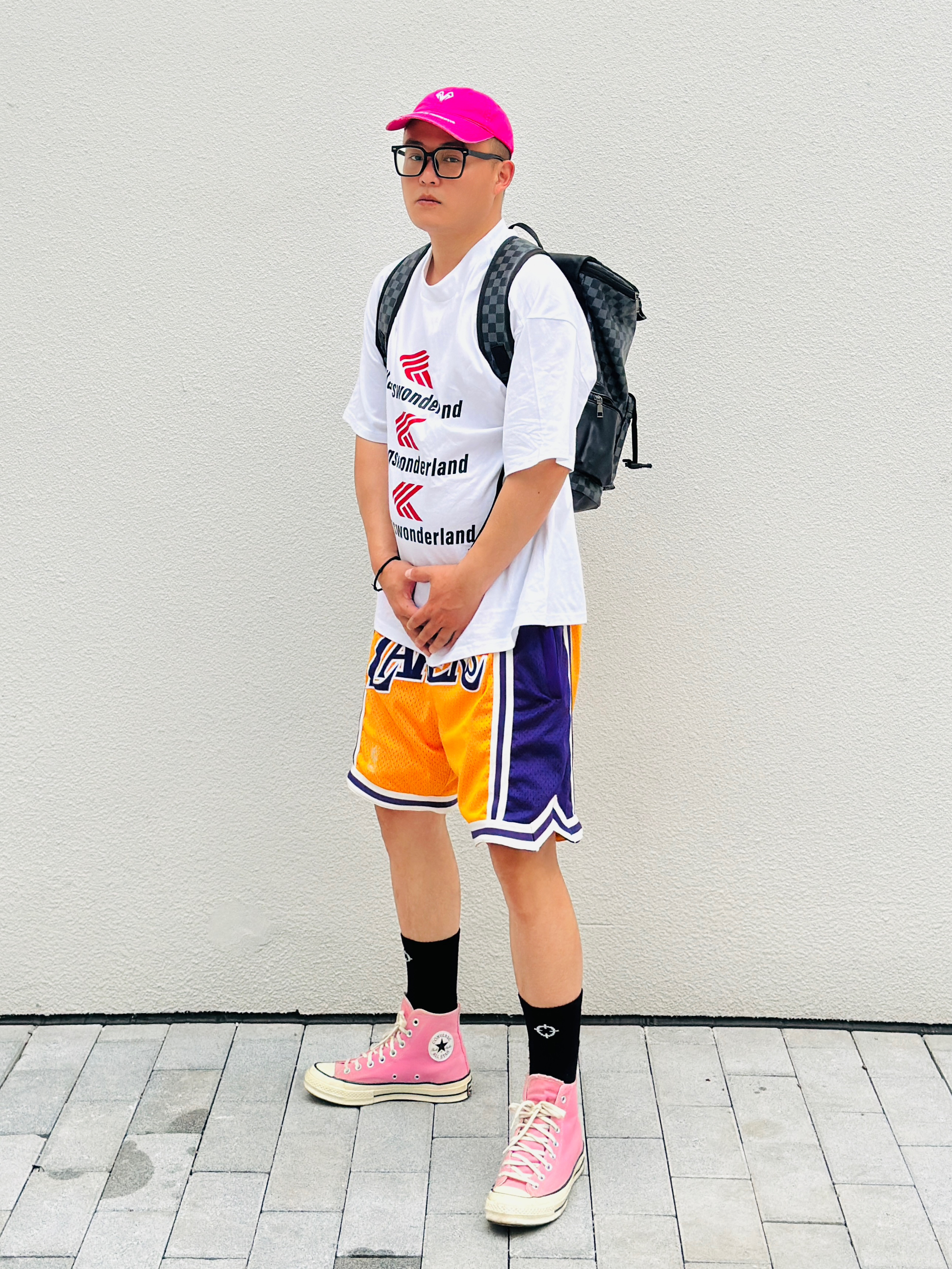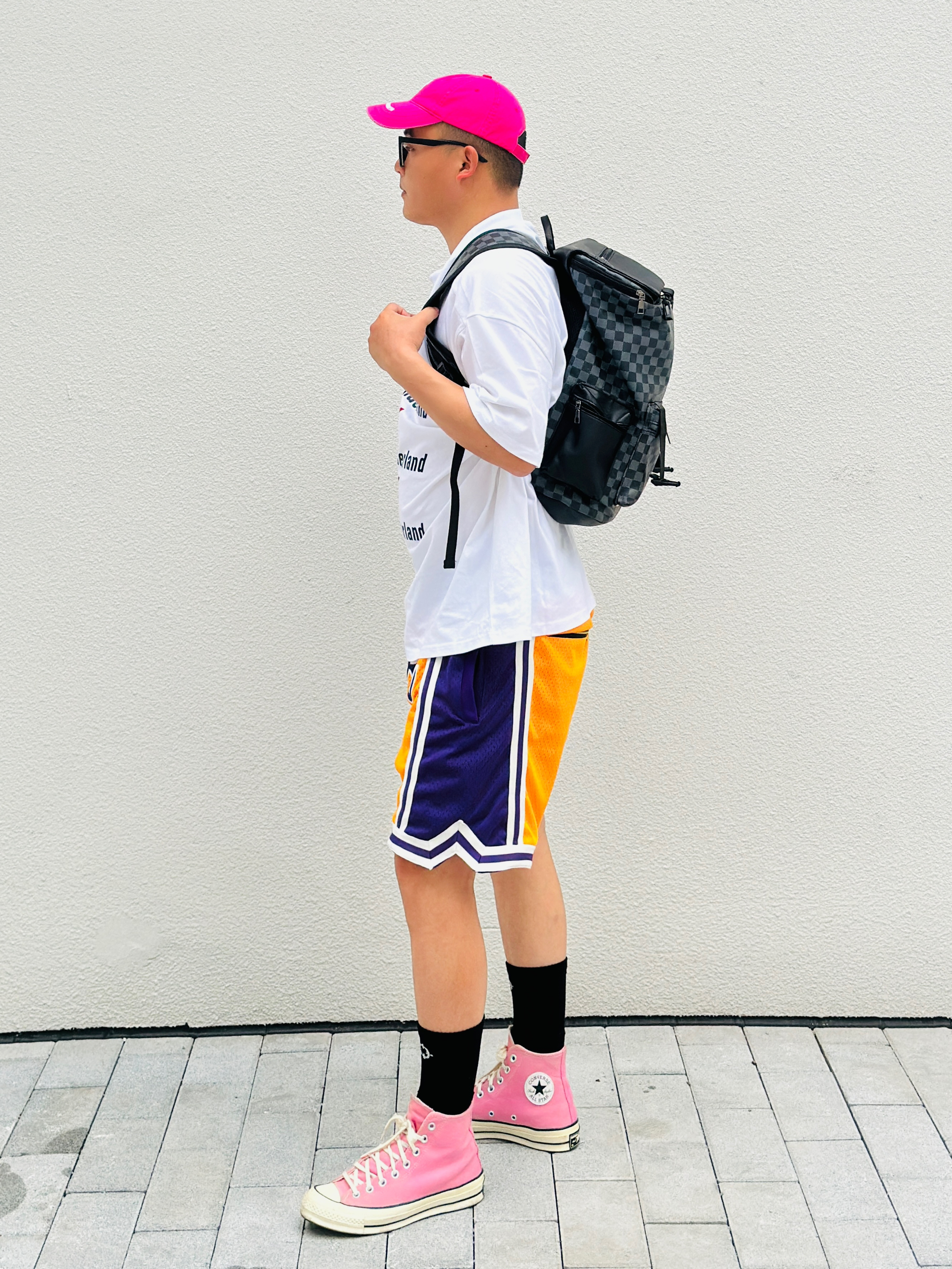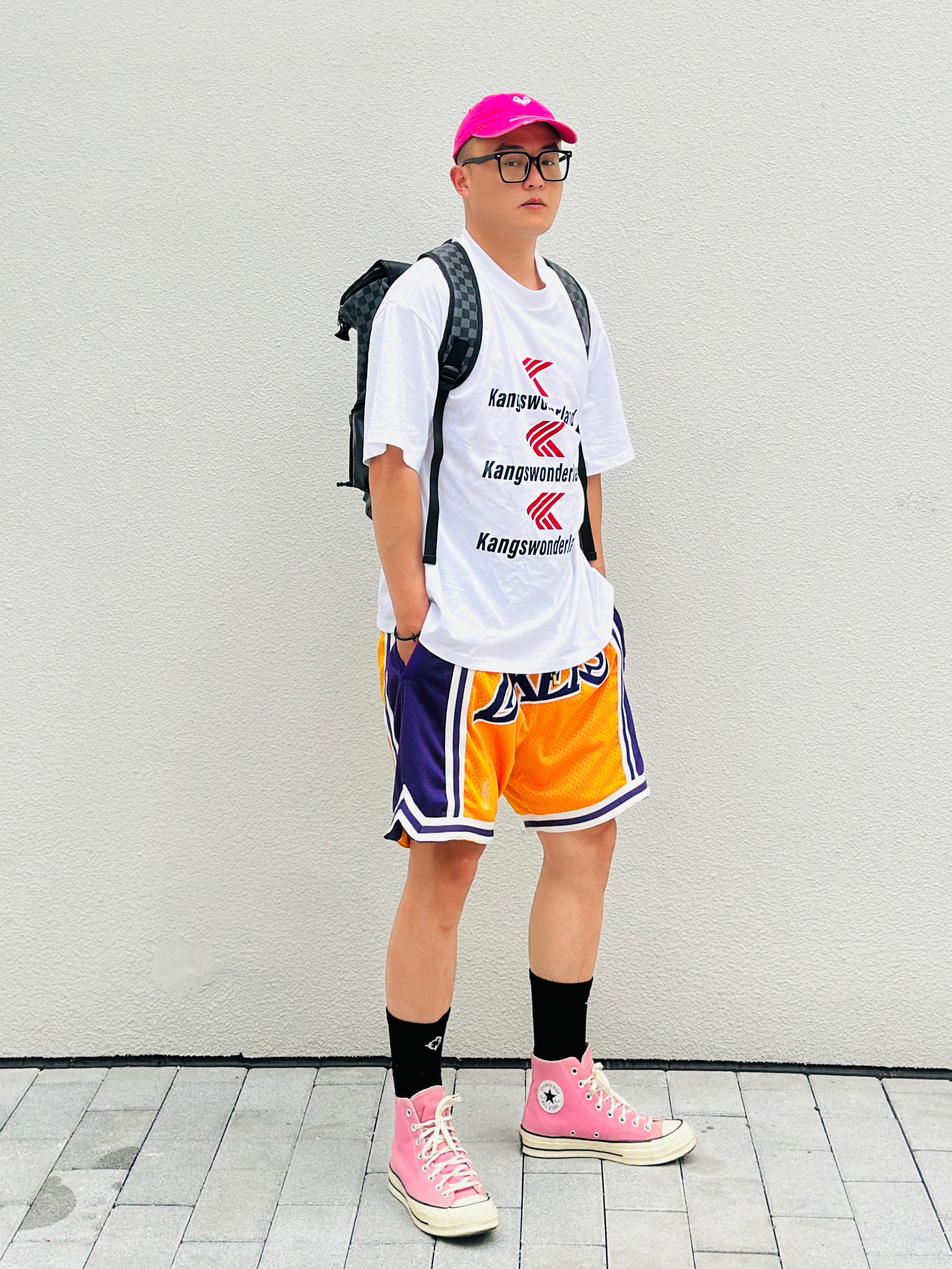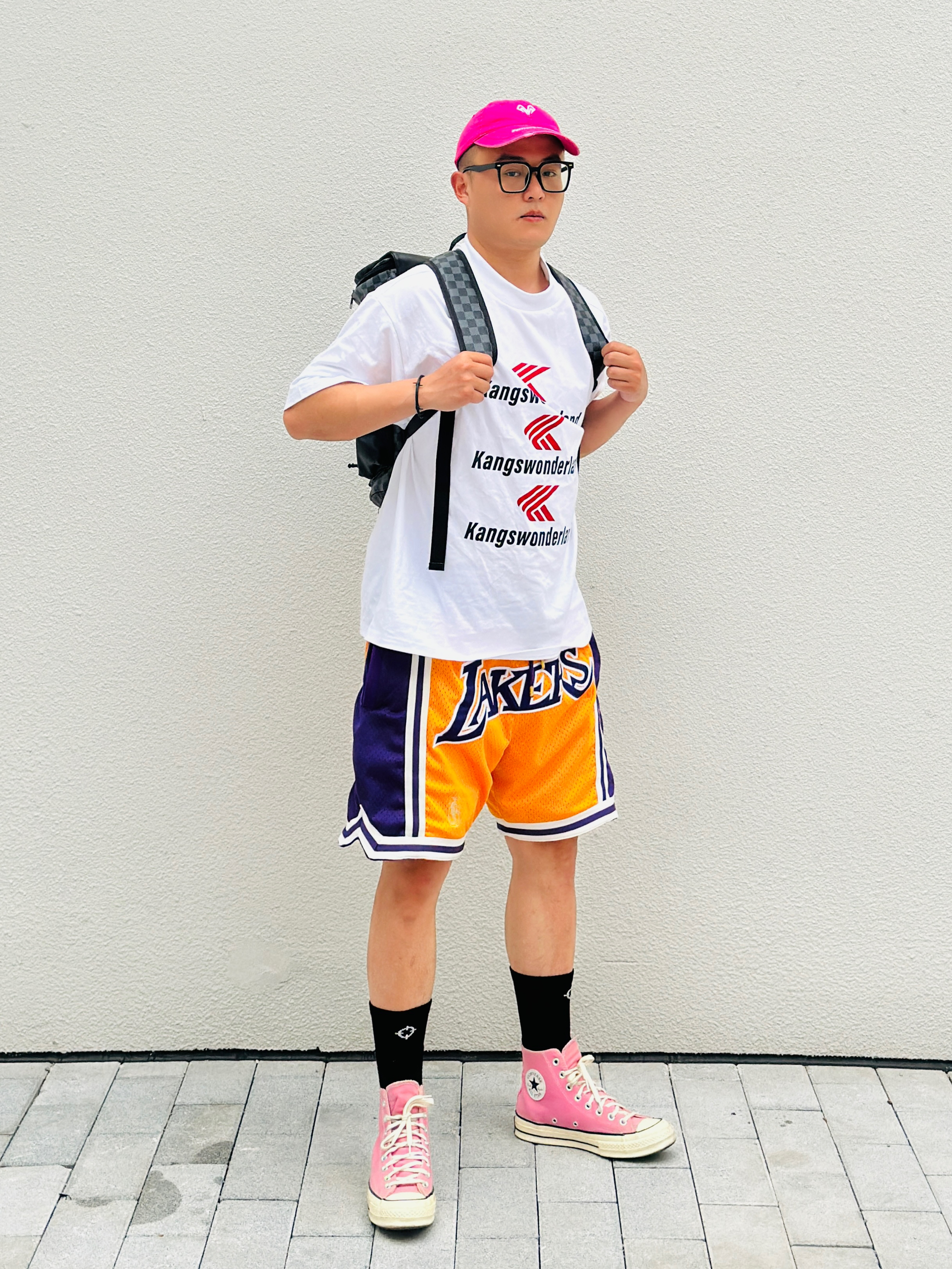 天生黑黄皮还没到夏天就已经晒的黢黑 变白之路既然如此困难那就努力暴瘦‼️ - 👕:Kang’s Wonderland 👖:Just Don 湖人 👟:Converse 1970s 湖人 保持热爱🫶🏻