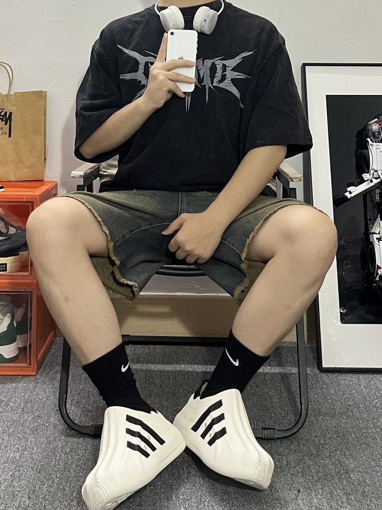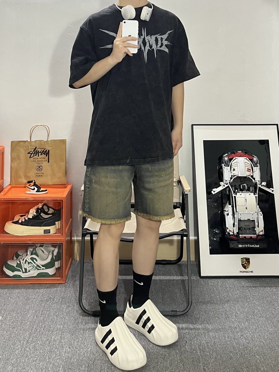 哈喽这里是pupu同鞋🏄🏻♂️ ——————————— . 👔:水洗印花T恤 · 👖:23R+水洗牛仔 自然的水洗做旧感恰到好处👌🏻 猫须纹理和毛边设计复古气息拿捏❗ 上身真的有潮酷的感觉期待夏天了! · 👟:adidas fom ——————————— 💁🏻♂️:170/115 以上都是个人观点🍟欢迎讨论