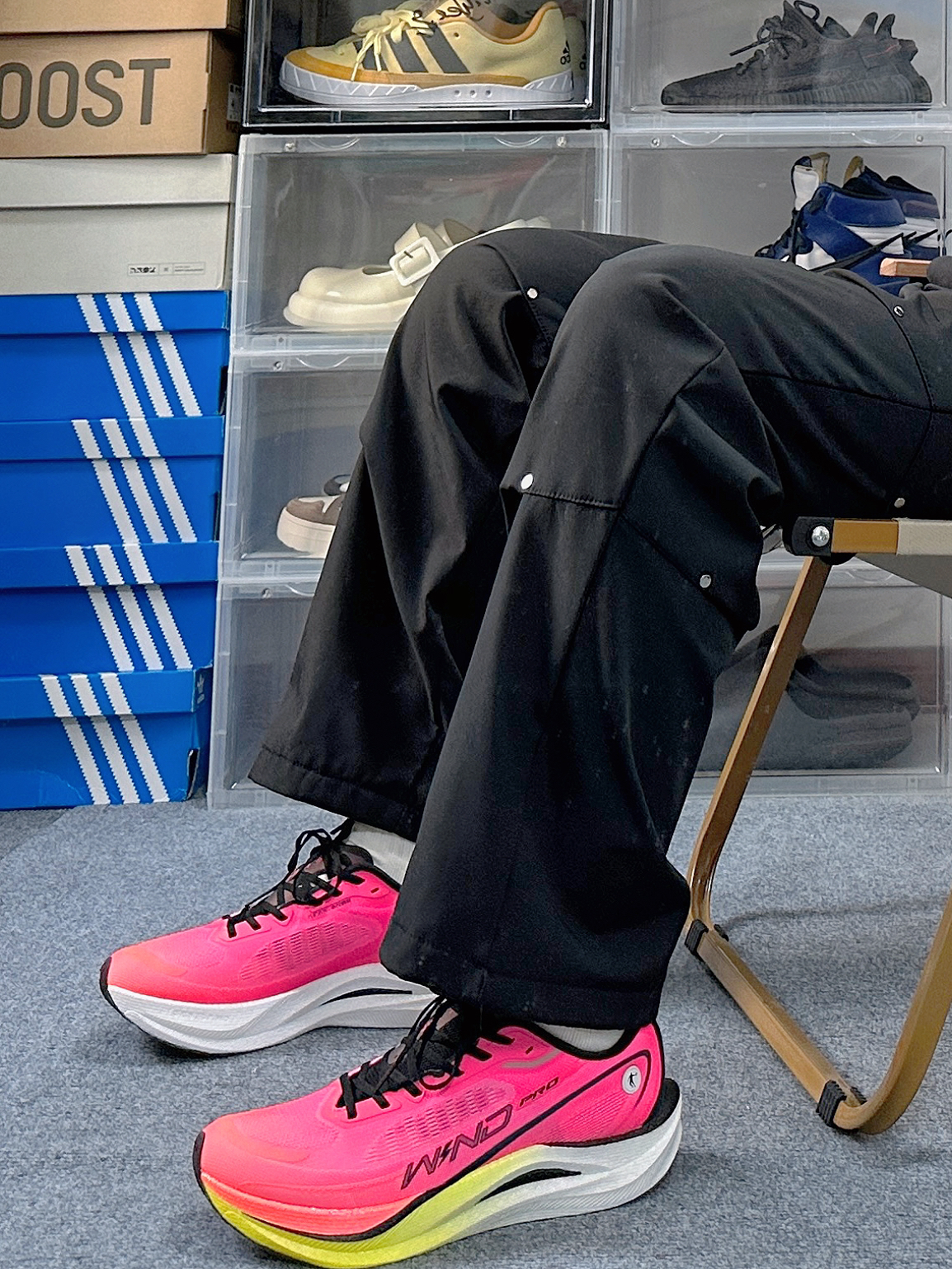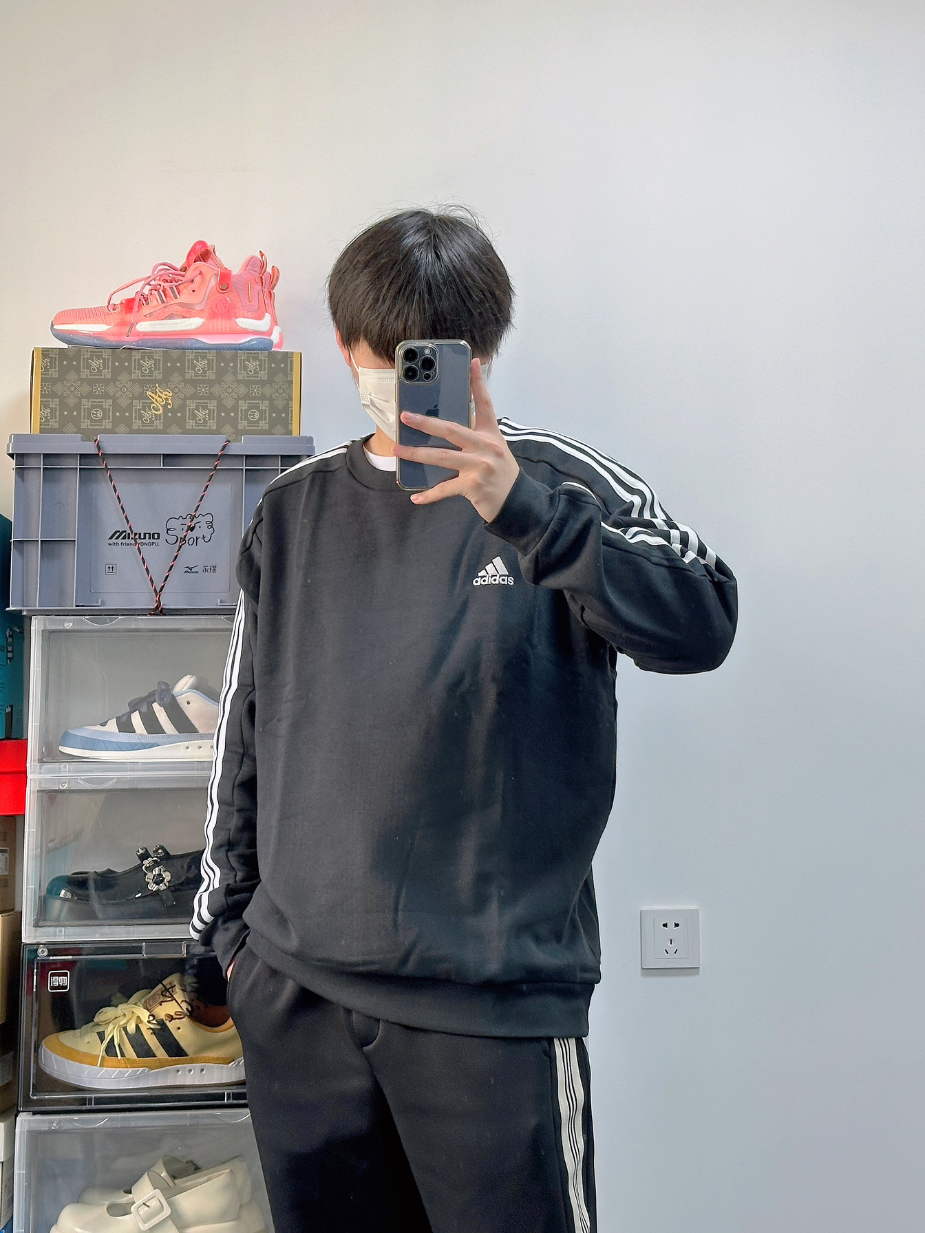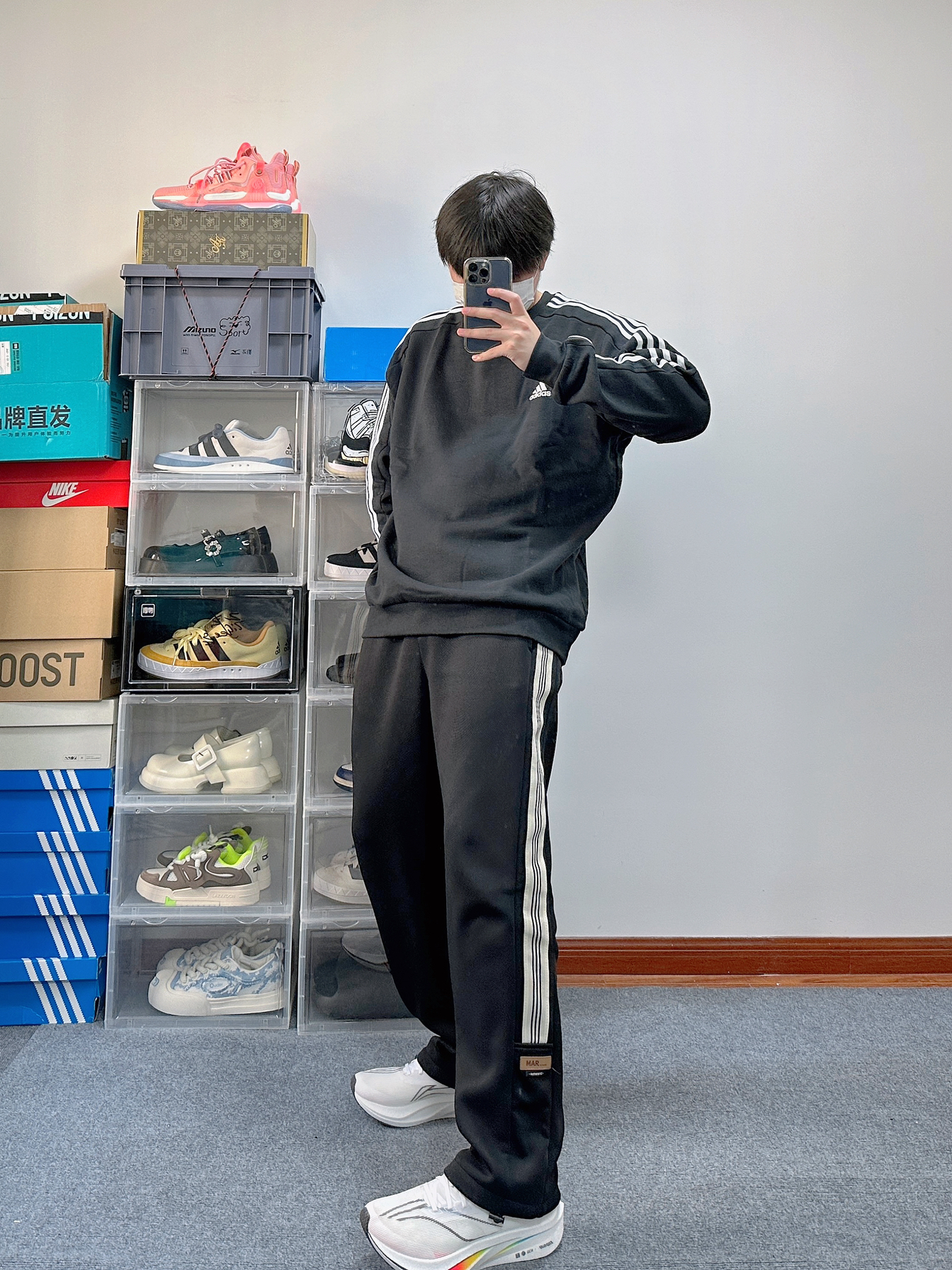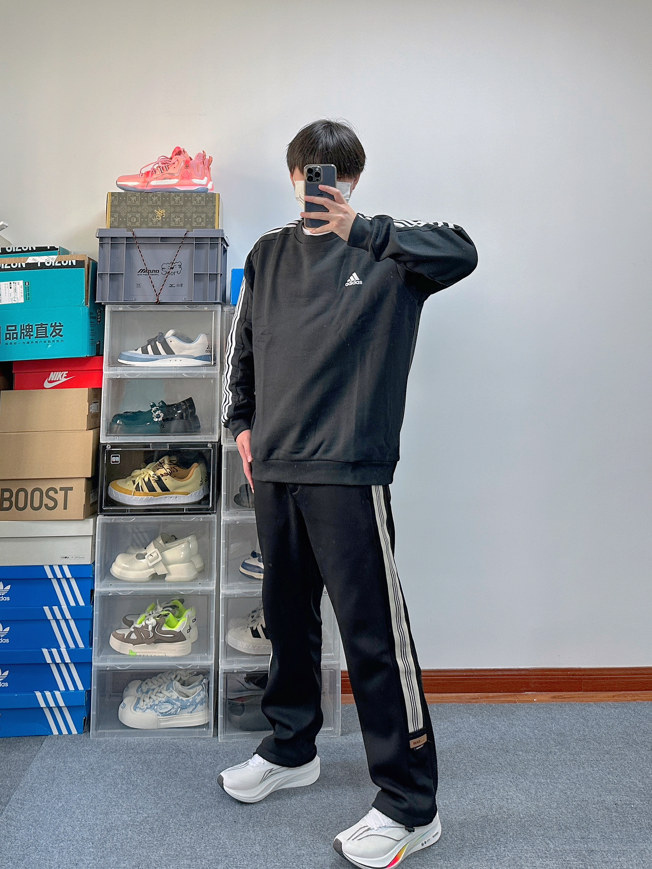 开学季这么搭 走在校园里面太有青春活力感了 简单干净而且还很低调 上衣来自Adiads的卫衣 面料还不错挺亲肤的 衣服克重挺轻盈 穿在身上不会有什么负担 裤子就是普通的运动阔腿裤 有体育课不会限制我们的腿部 鞋子是来自李宁的飞电4c 脚感很Nice很软弹 而且标准白的配色搭配这一身很吸睛