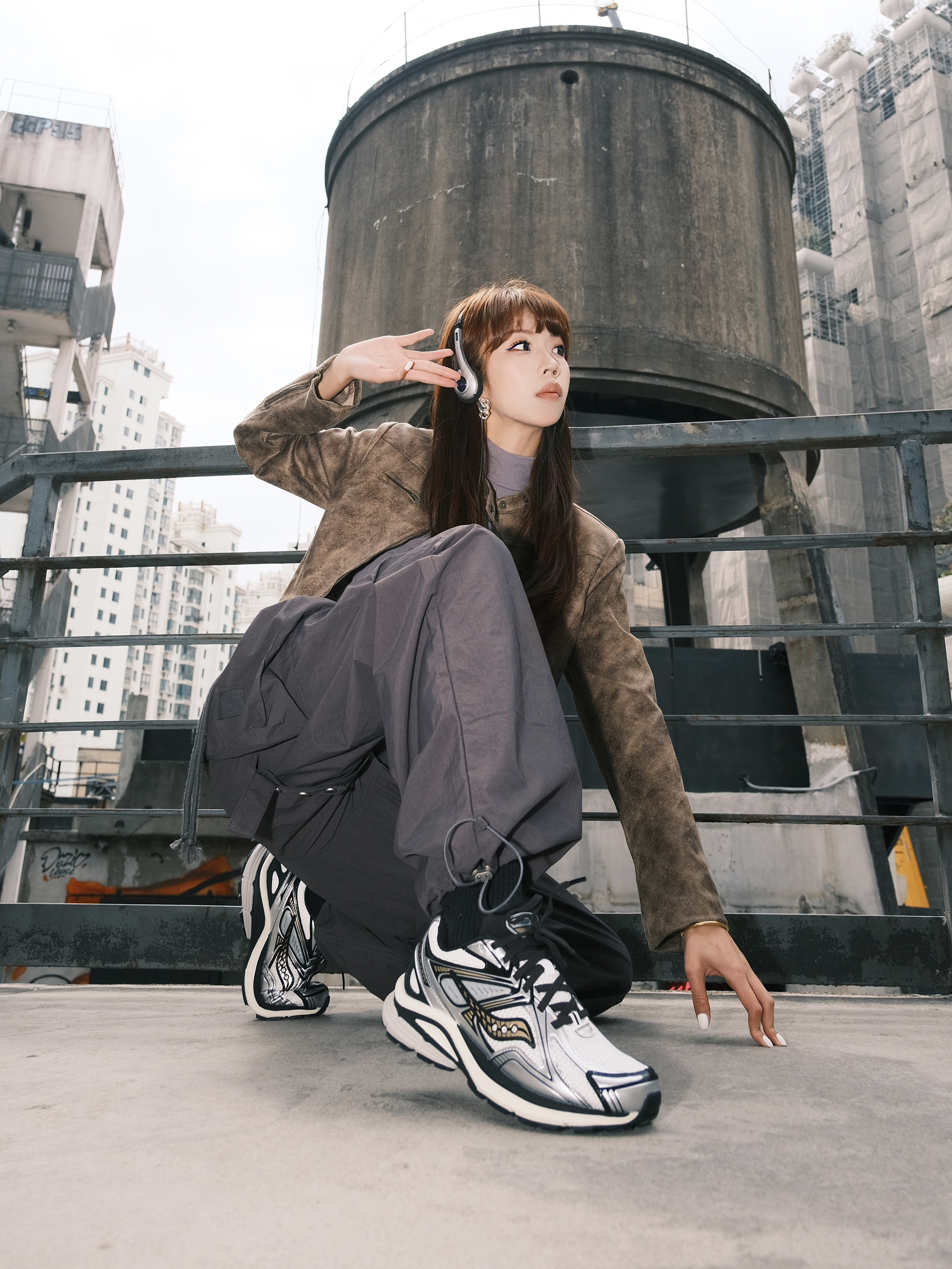 工装裤配复古球鞋 是我的菜 Y2K的千禧酷妹 你别太爱🖐🏻 简单随意的低饱和穿搭 灰色工字背心叠穿卡其色皮衣 下身舒适的束腿裤+运动鞋 整体色系风格都有在小小呼应~ 👟新入的脚上这双 Saucony KINVARA 4 RE OG 银黑白棕配色不要太酷! 把复古元素和未来感结合在一起 慢跑鞋型 上脚轻便不压脚背 也很百搭最近春天出街都有穿它 今天就做一日份的拽拽女兵吧