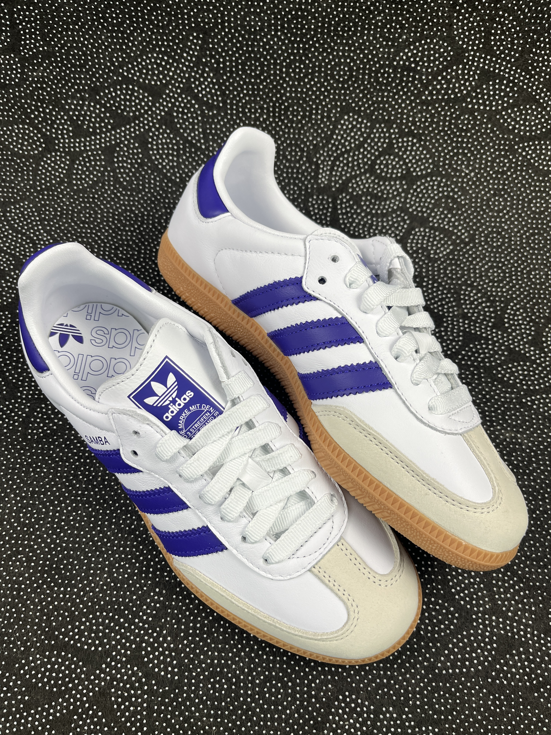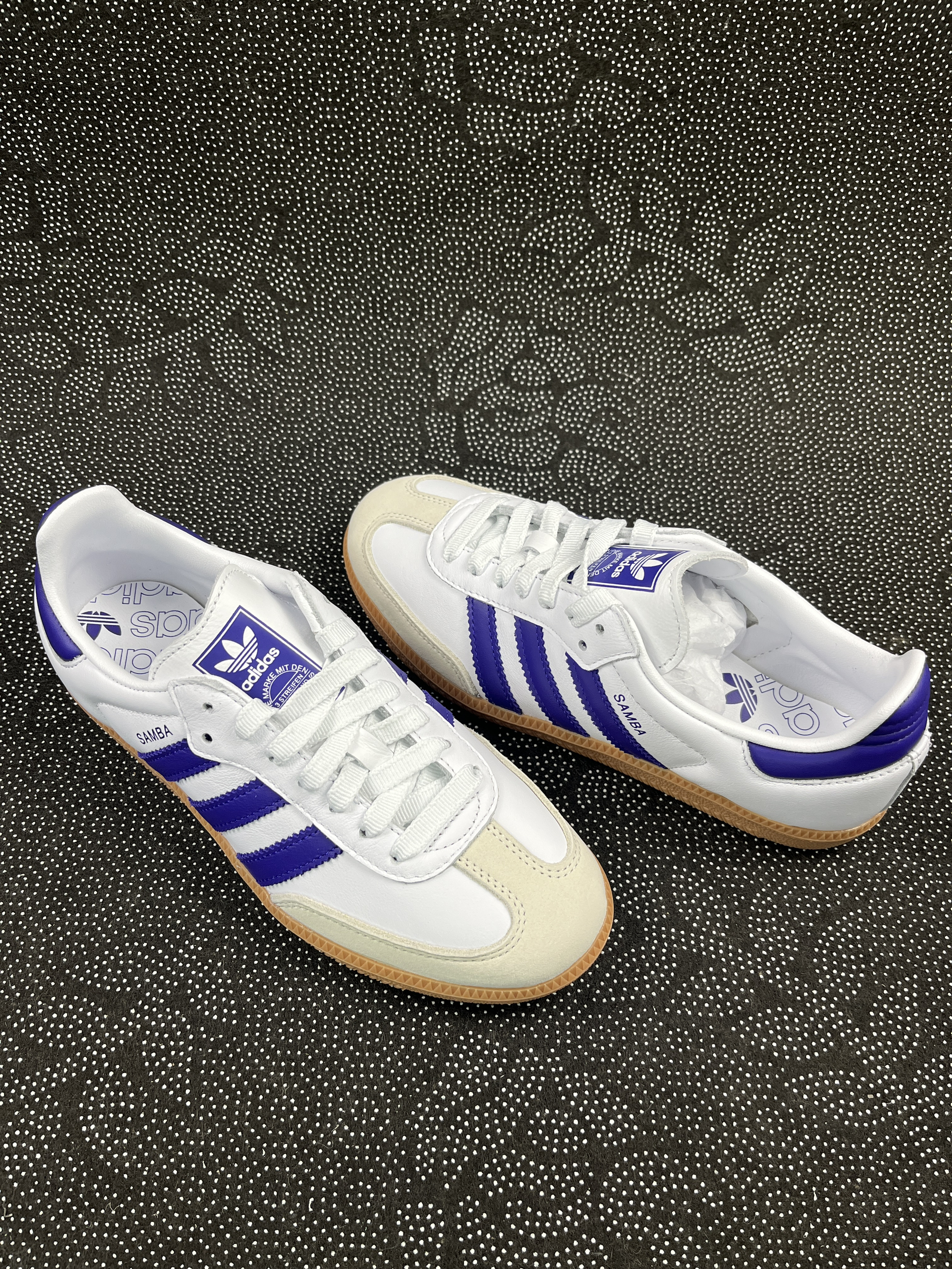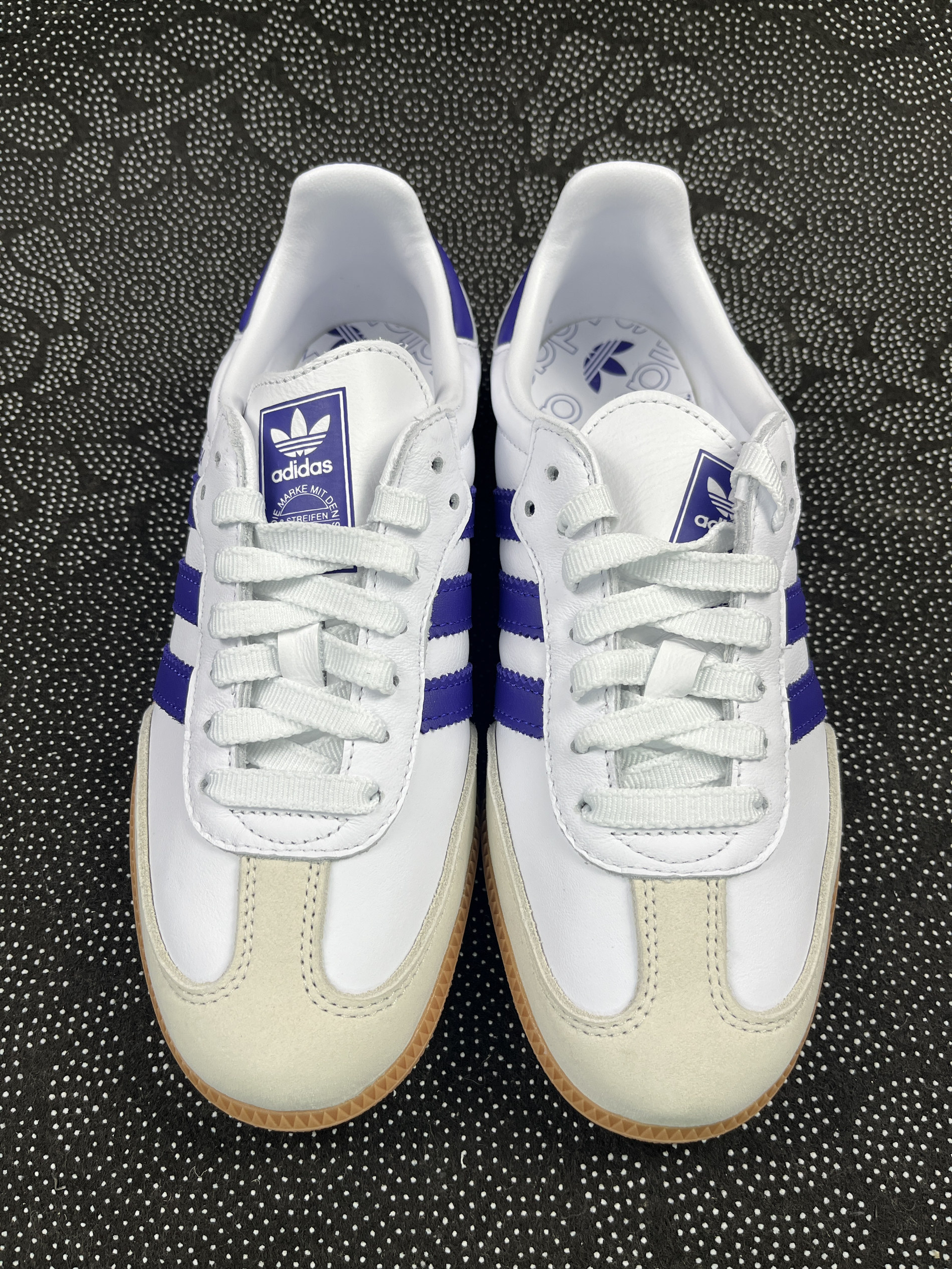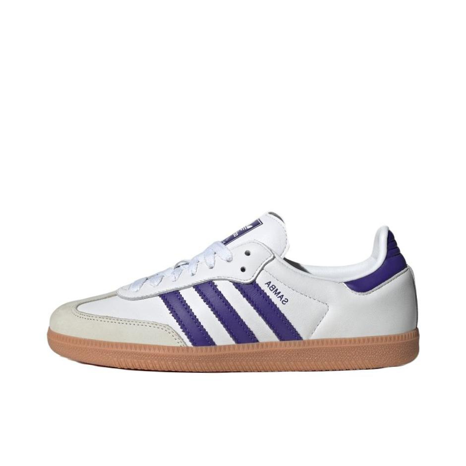 👟球鞋名称: adidas Originals Samba OG 🔍分享理由: 这双鞋的颜值还是不错的,奶白搭配紫色,干净中又带了一点艳丽,这种反差的感觉还是有的。鞋面是牛皮革的,比较好打理。而且这种材质的触感比较柔软,不会硌脚 🤔整体感受: 适合休闲穿着,搭配牛仔裤👖就足够了