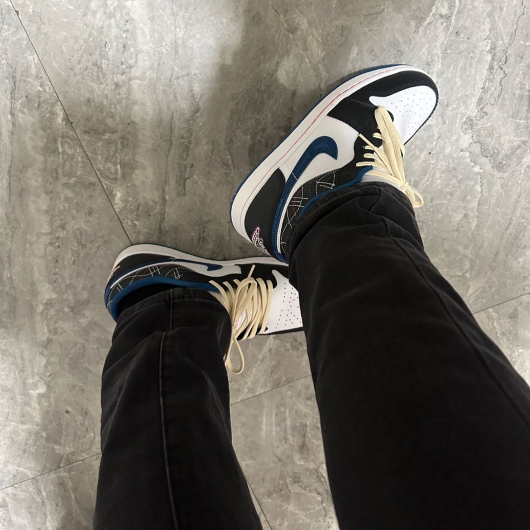 👟球鞋名称:Air Jordan 1 潮流复古 耐磨防滑 缓震透气 时尚休闲 板鞋 白色/黑色/深蓝色 🔍分享理由:细观鞋面,你会发现其中融入了丰富的刺绣线条工艺,这些精致细腻的走线整齐有序地交织在一起,既显出高级定制般的质感,又展现了品牌对细节的极致追求。每一针每一线都恰到好处,充满了艺术美感。 特别是在鞋后跟部位的设计上,灵感来源于生命密码——DNA螺旋结构,这种独特的创意令人印家深刻,无疑...