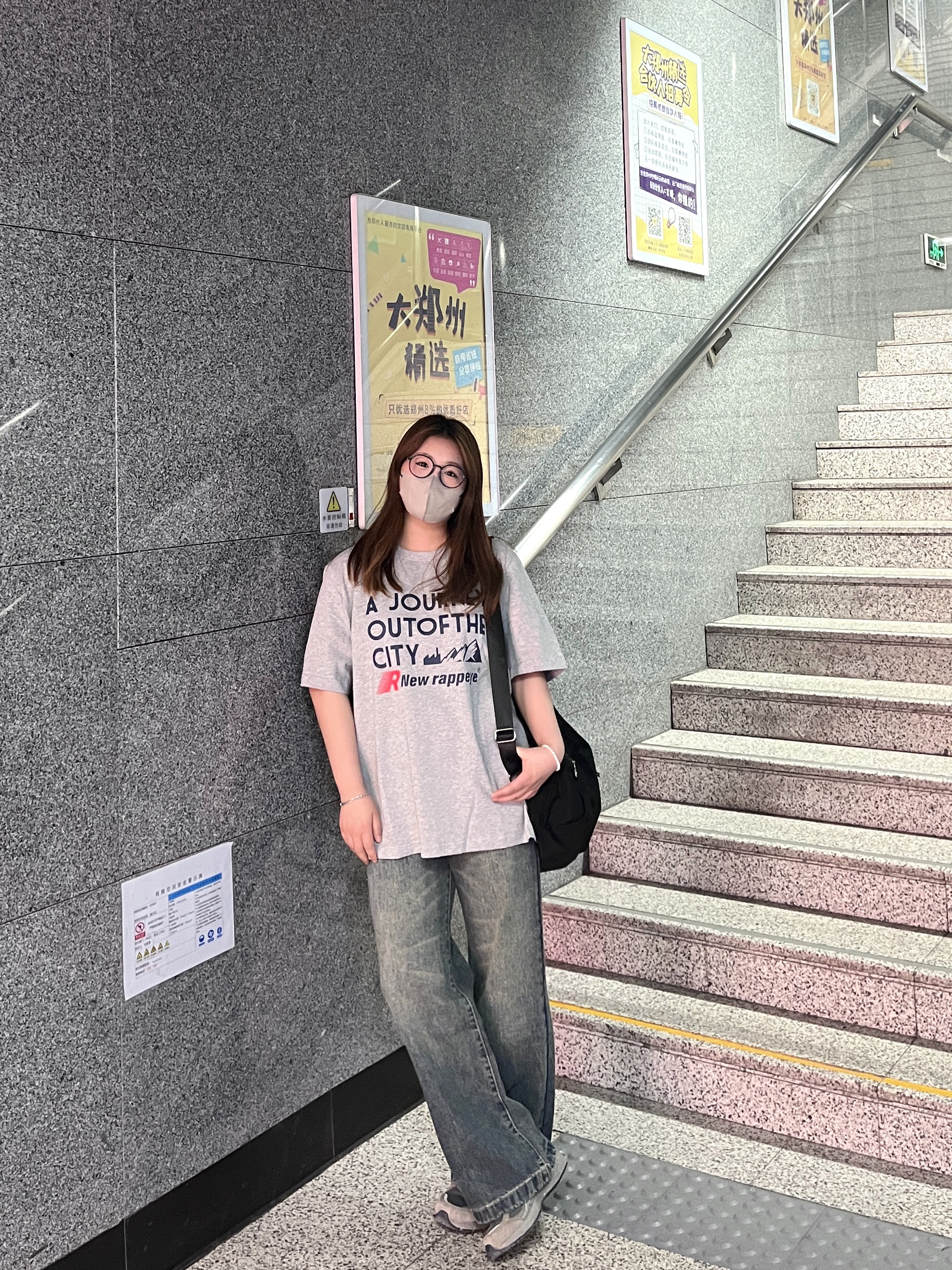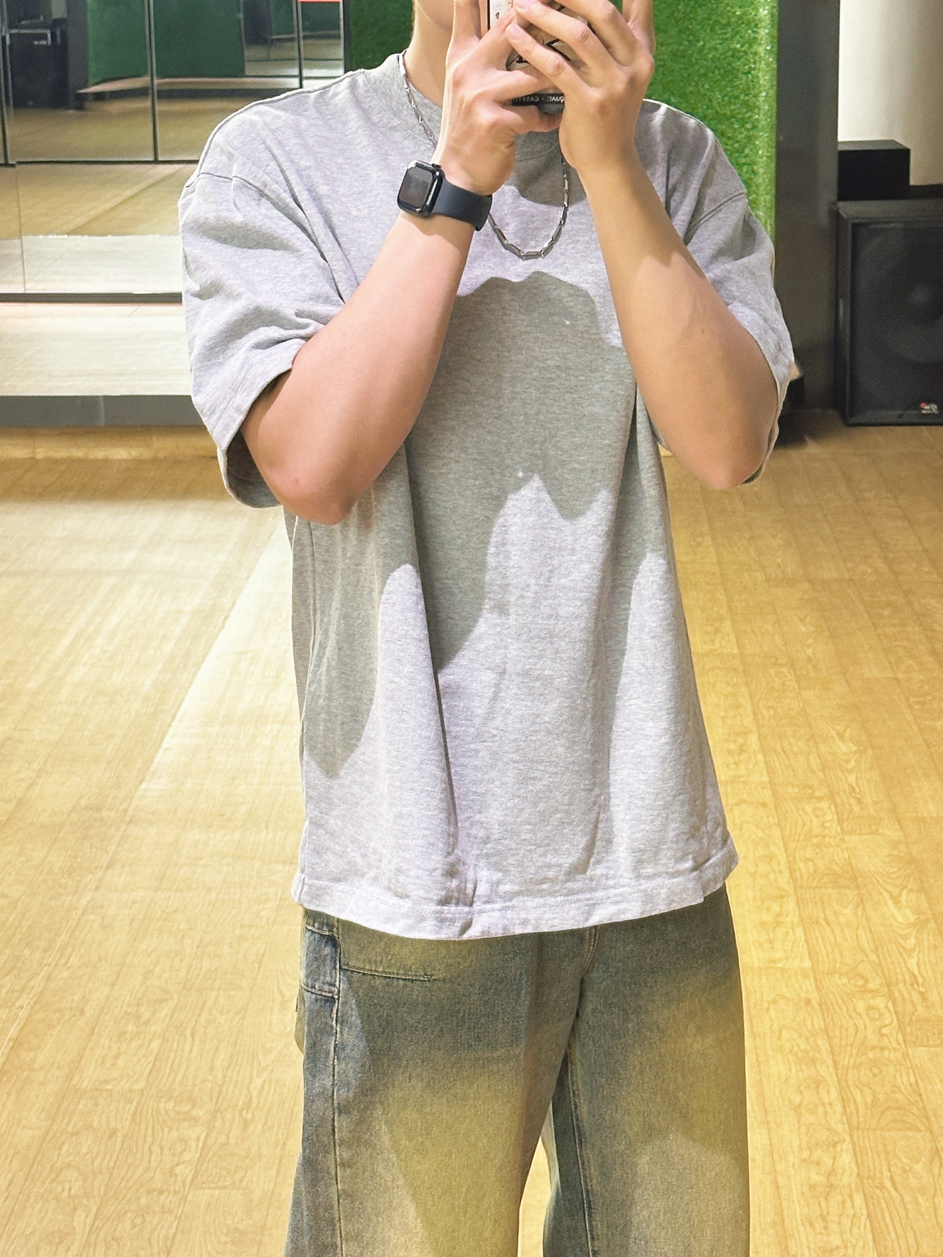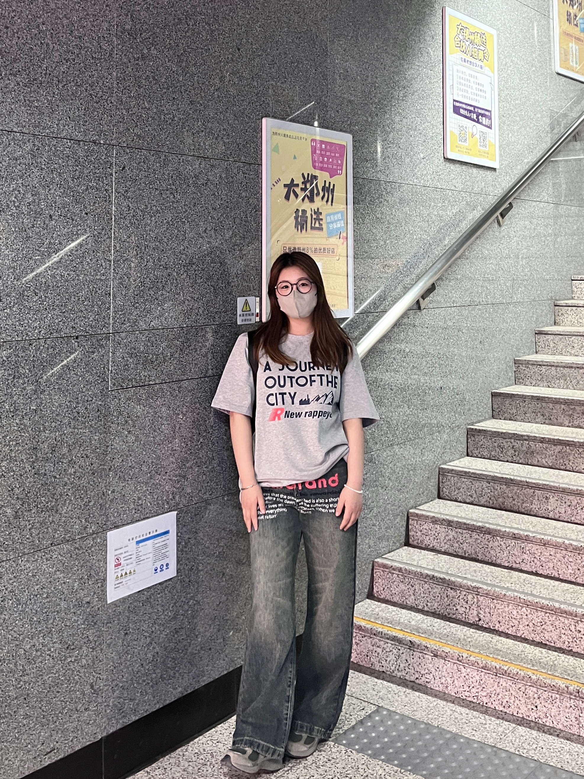 灰色短袖搭配复古牛仔裤嘎嘎好看!