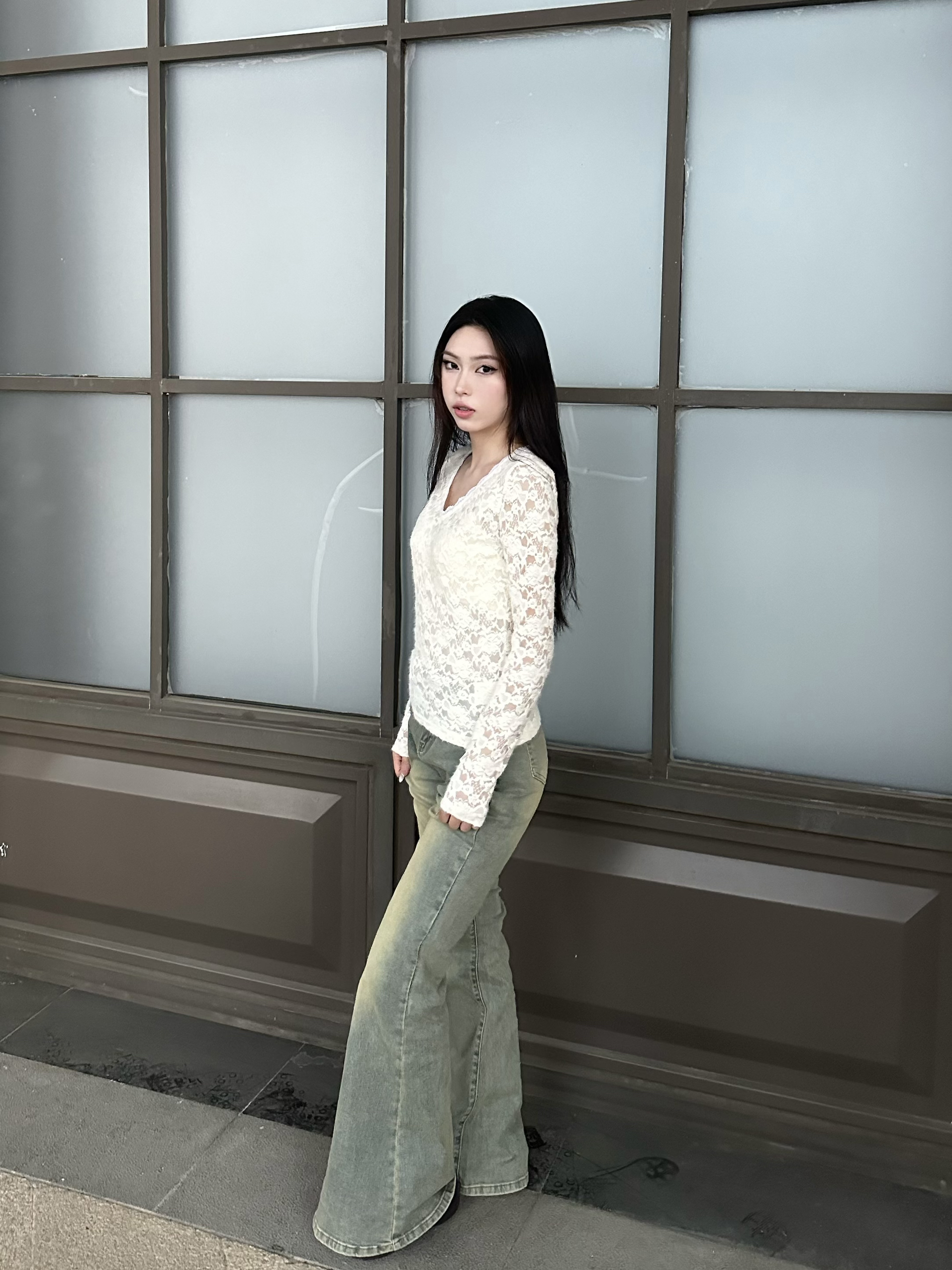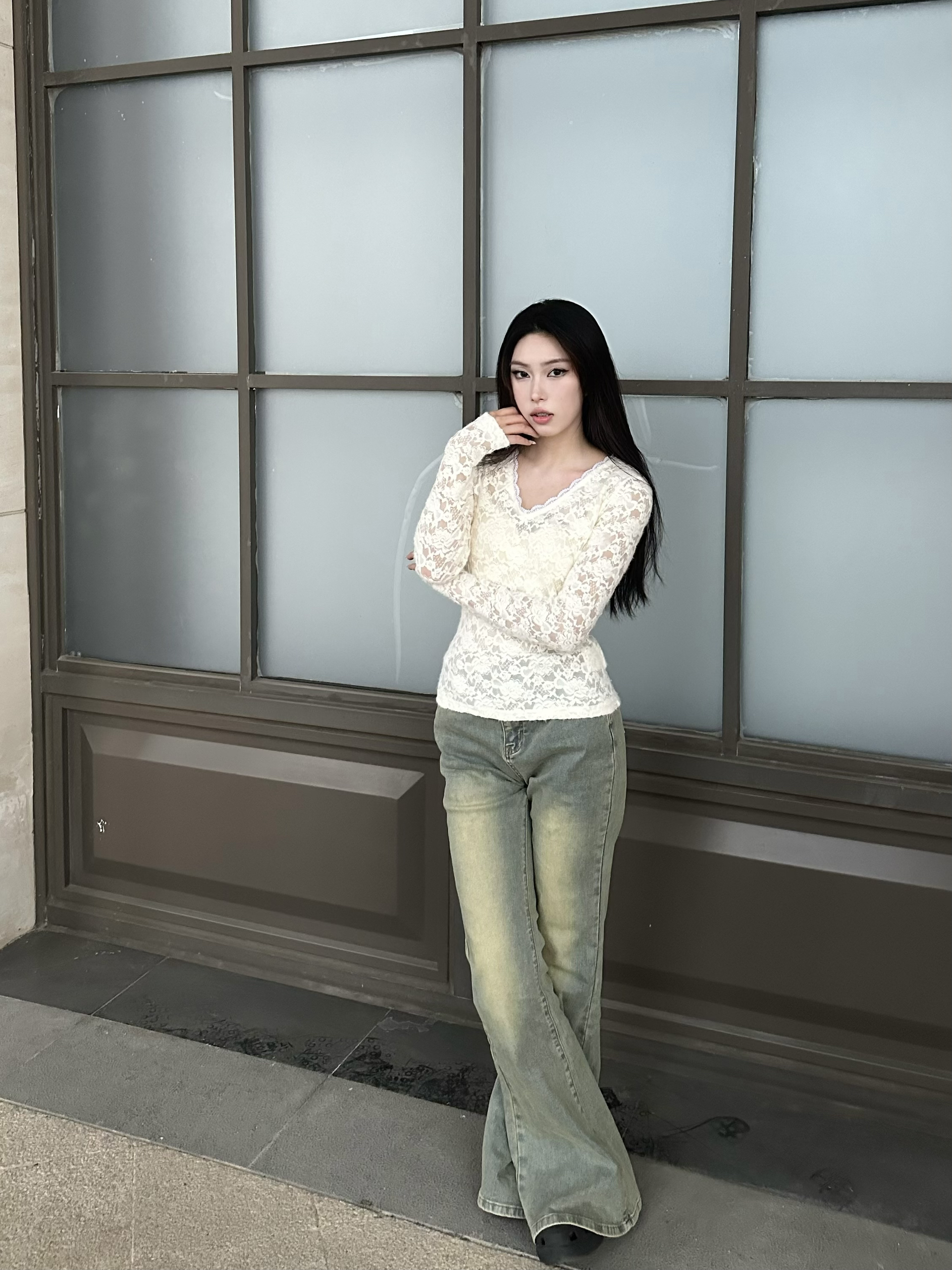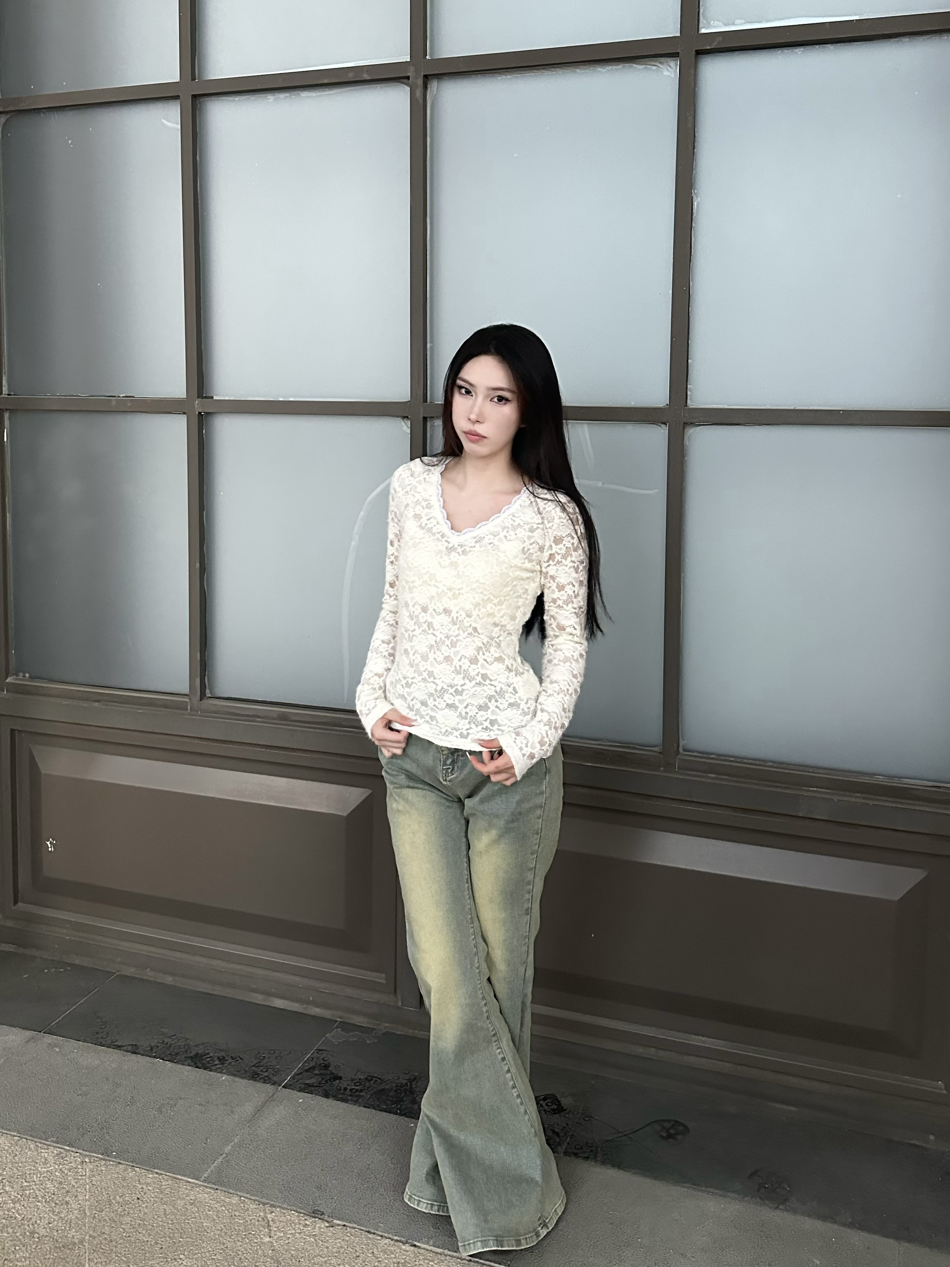 今年很流行蕾丝上衣 一直不敢尝试 直到我试了 APEA 这套 才发现蕾丝上衣还可以这么搭配! v领显得脖子很纤细 衣服又是修身的很显身材 搭配下半身黄泥色牛仔裤 风格大碰撞 所有辣妹都要这么尝试下!