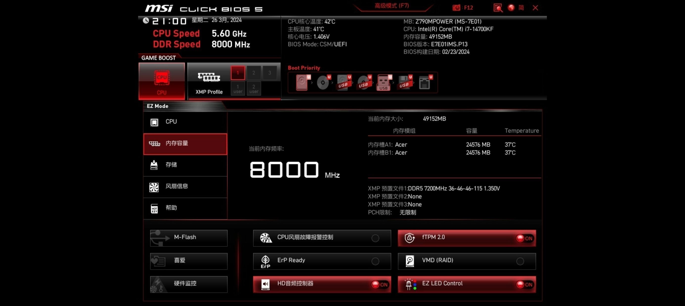 本篇笔记关联了Acer/宏碁 Hermes冰刃系列 DDR5 黑色台式机内存条 超低时序 电竞 套条24GB*2等商品,为用户提供真实的使用体验和购买参考。