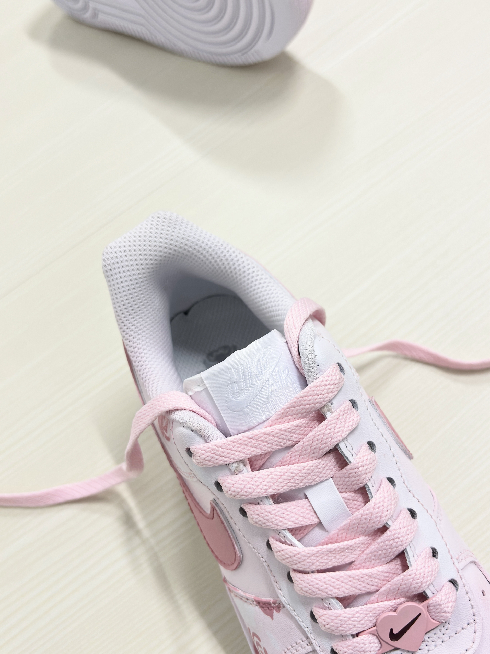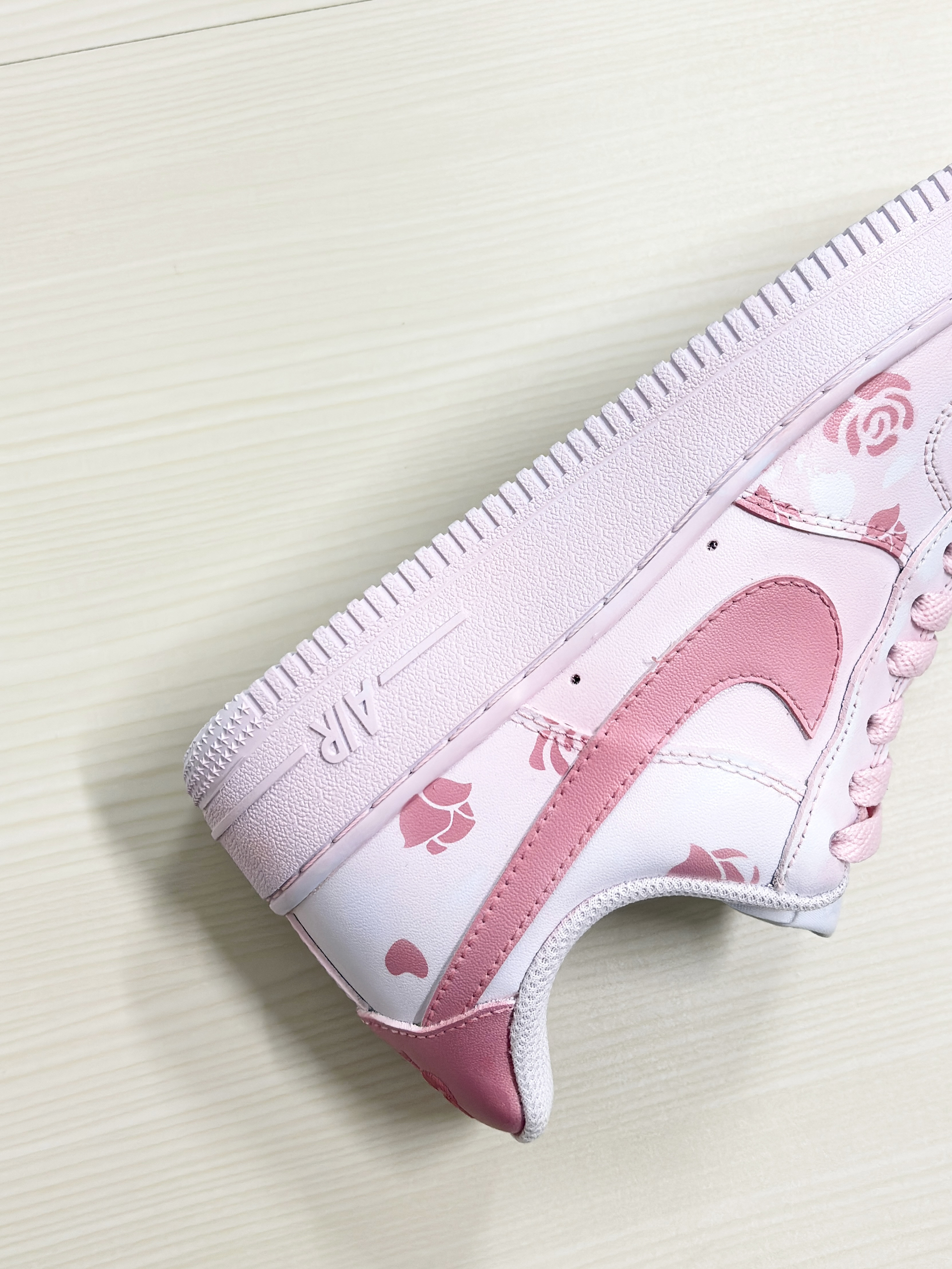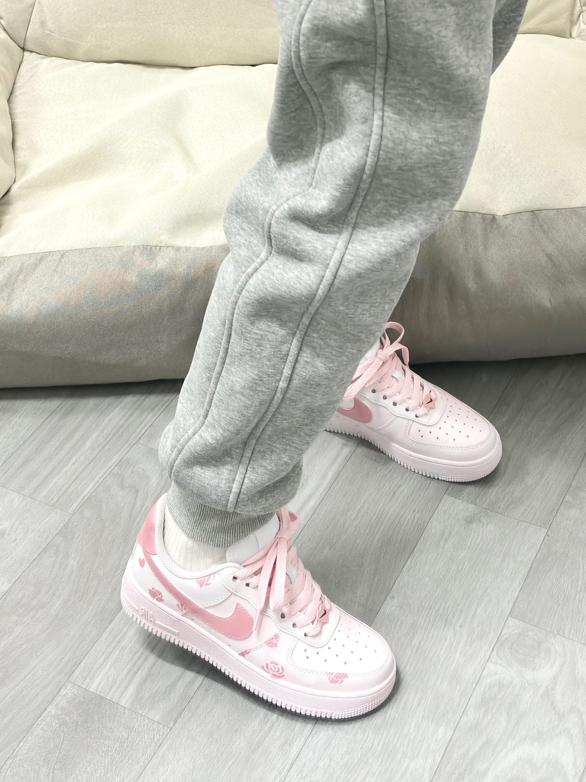💁♂️:Hi~ 这里是大大纳mi~ 👟:Nike 春季限定粉玫瑰AF1板鞋 采用的经典纯白af1进行定制 鞋身用粉色玫瑰图案点缀! 鞋舌白色标识,粉色swoosh延伸后跟 清新甜美少女心,实物是真好看 厚底还能有不错的增高效果 日常穿休闲裤,长短裙都百搭 可以说夏天出门穿这双不会错! 尺码不偏码✅正常选择就可以~