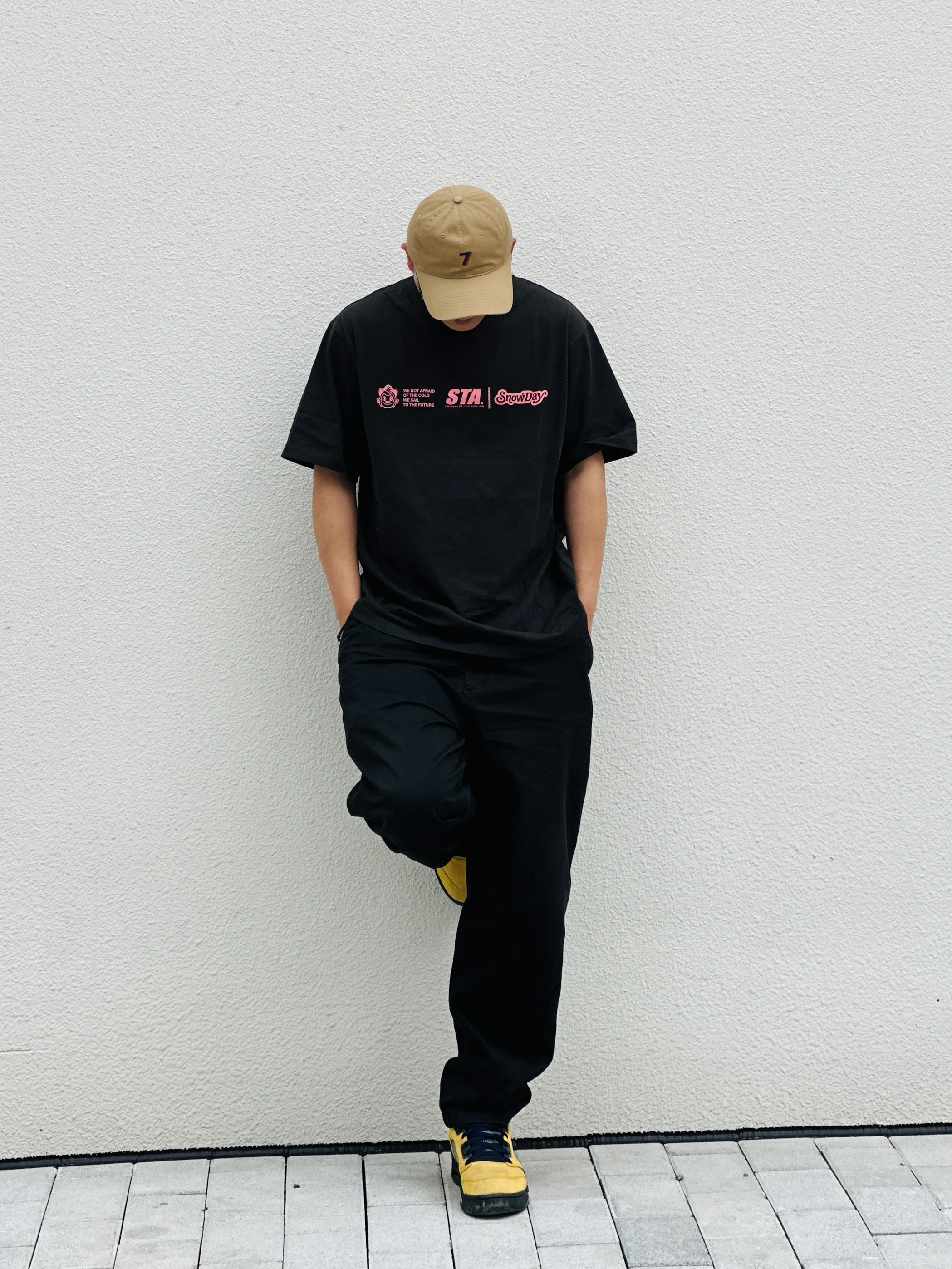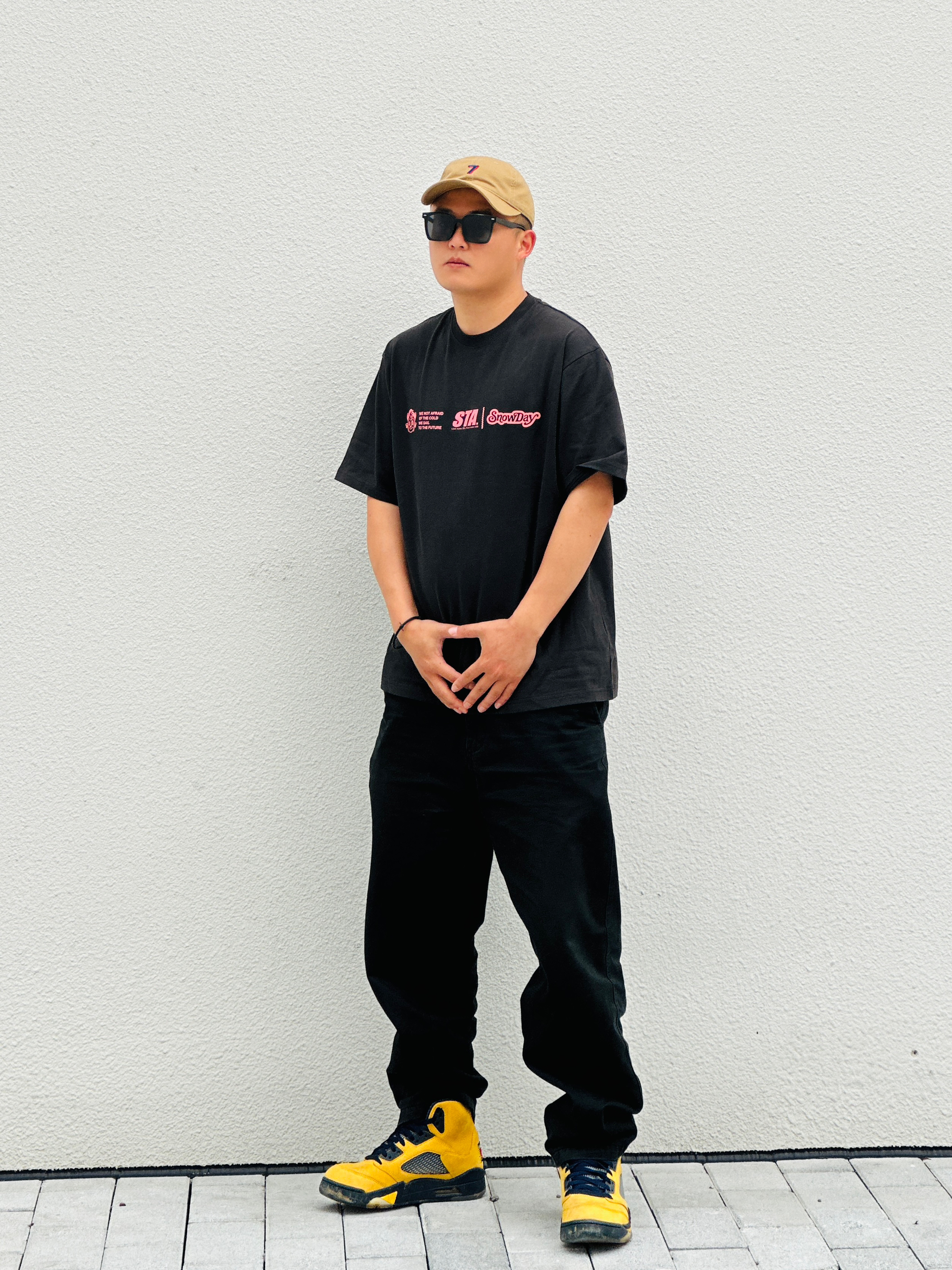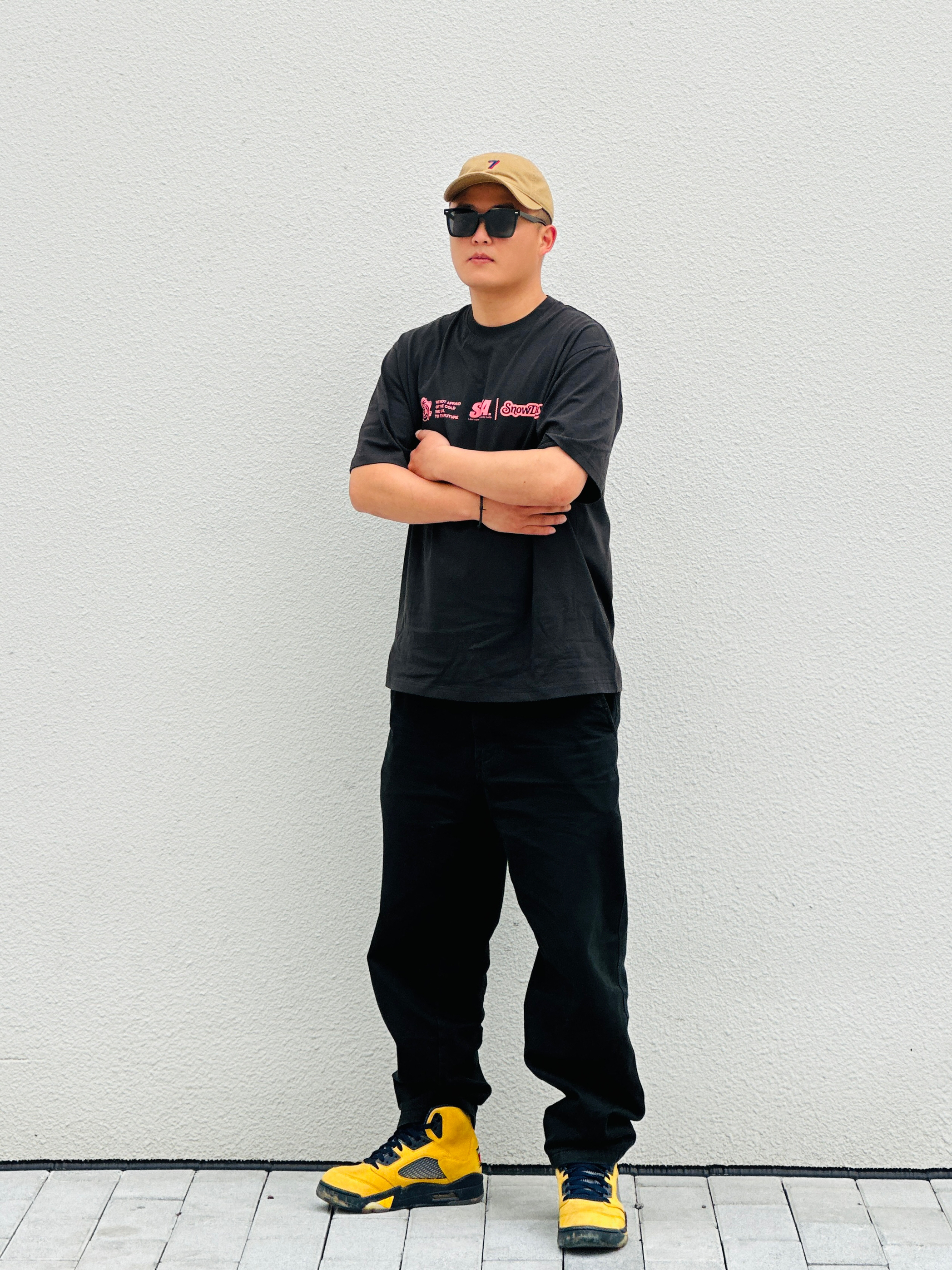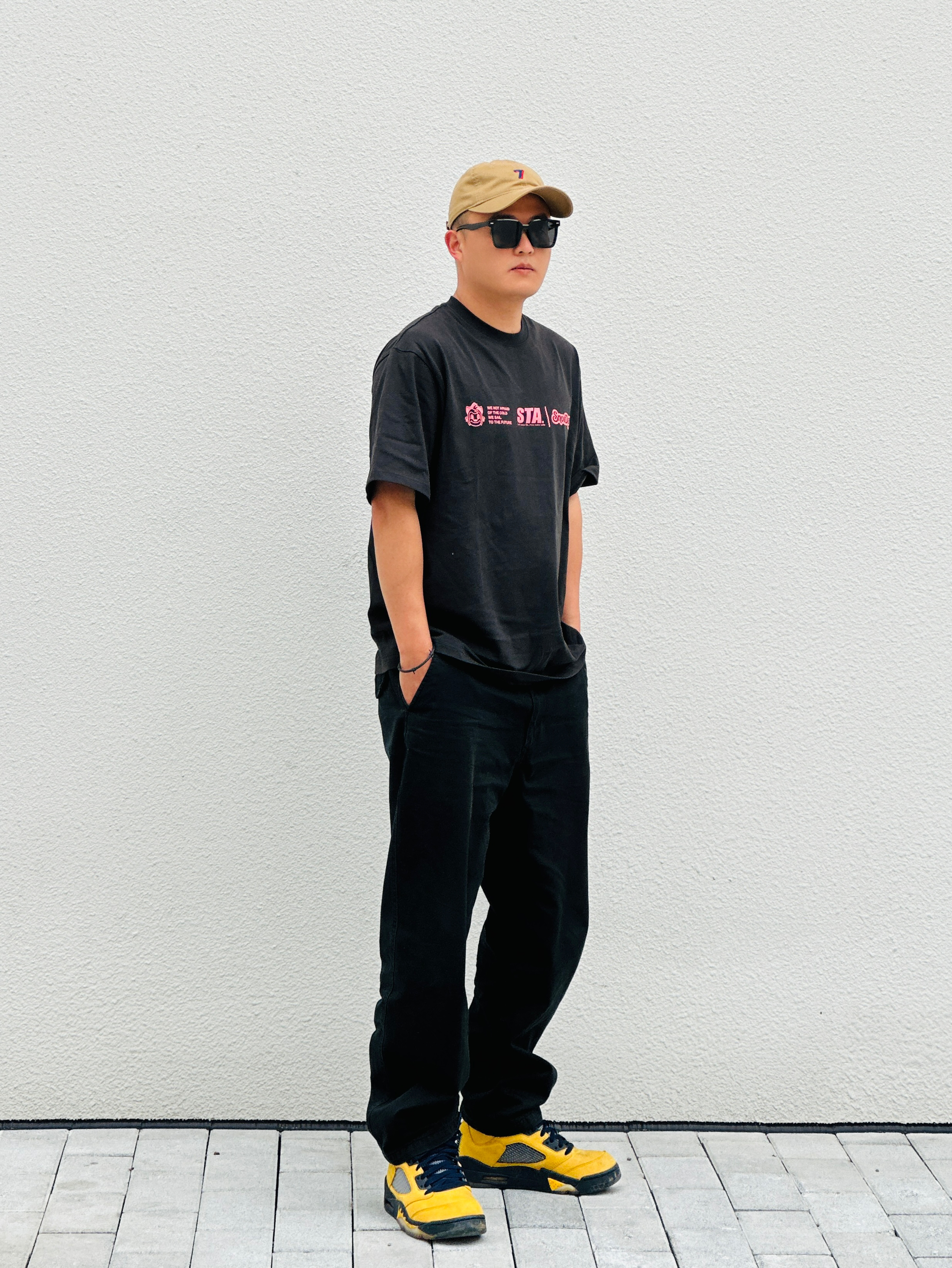 虽然夏天还没有真正到来 但想穿短袖的心已经按捺不住了~ - 👕:Snowday x STA 👖:Nothomme黑色工装 👟:Air Jordan 5 密歇根 - 保持热爱🫶🏻