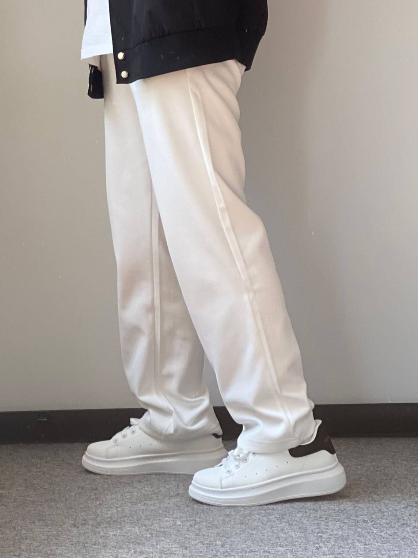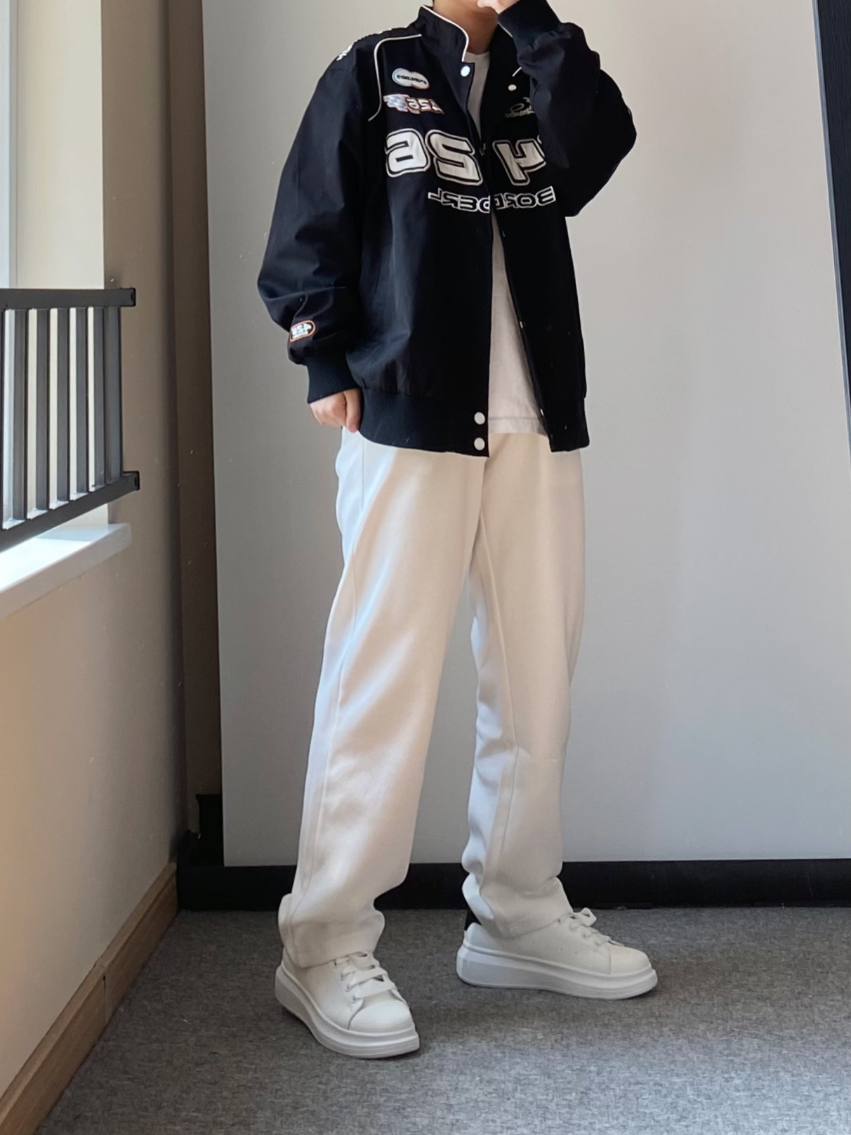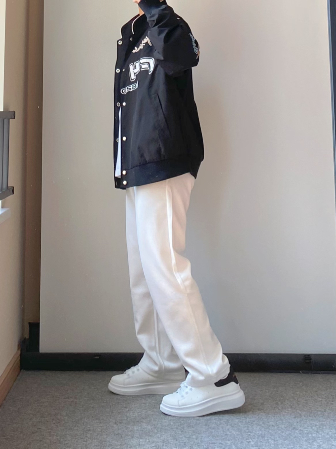 之前一直担心白裤子会显腿胖😅 这条上身竟然没有这个问题 我经常健身的肌肉腿都遮住了🥹春夏黑白搭配真的太干净了吧! 要说起白色 春天应该没有人不喜欢小白鞋吧⁉️ 经典的黑尾增高板鞋竟然2️⃣位数 皮质还软软的不磨脚 学生党的兄弟们放心🐛