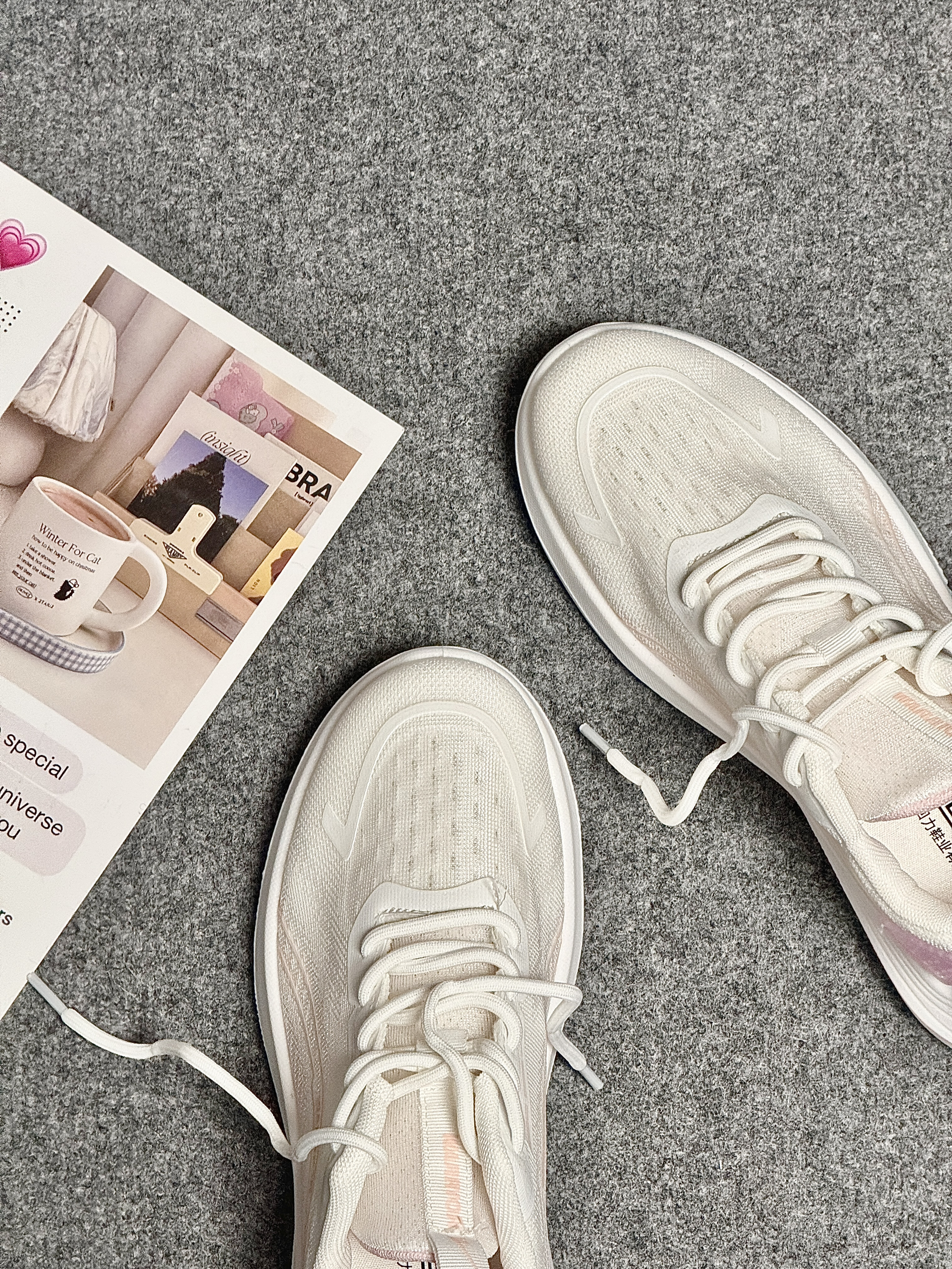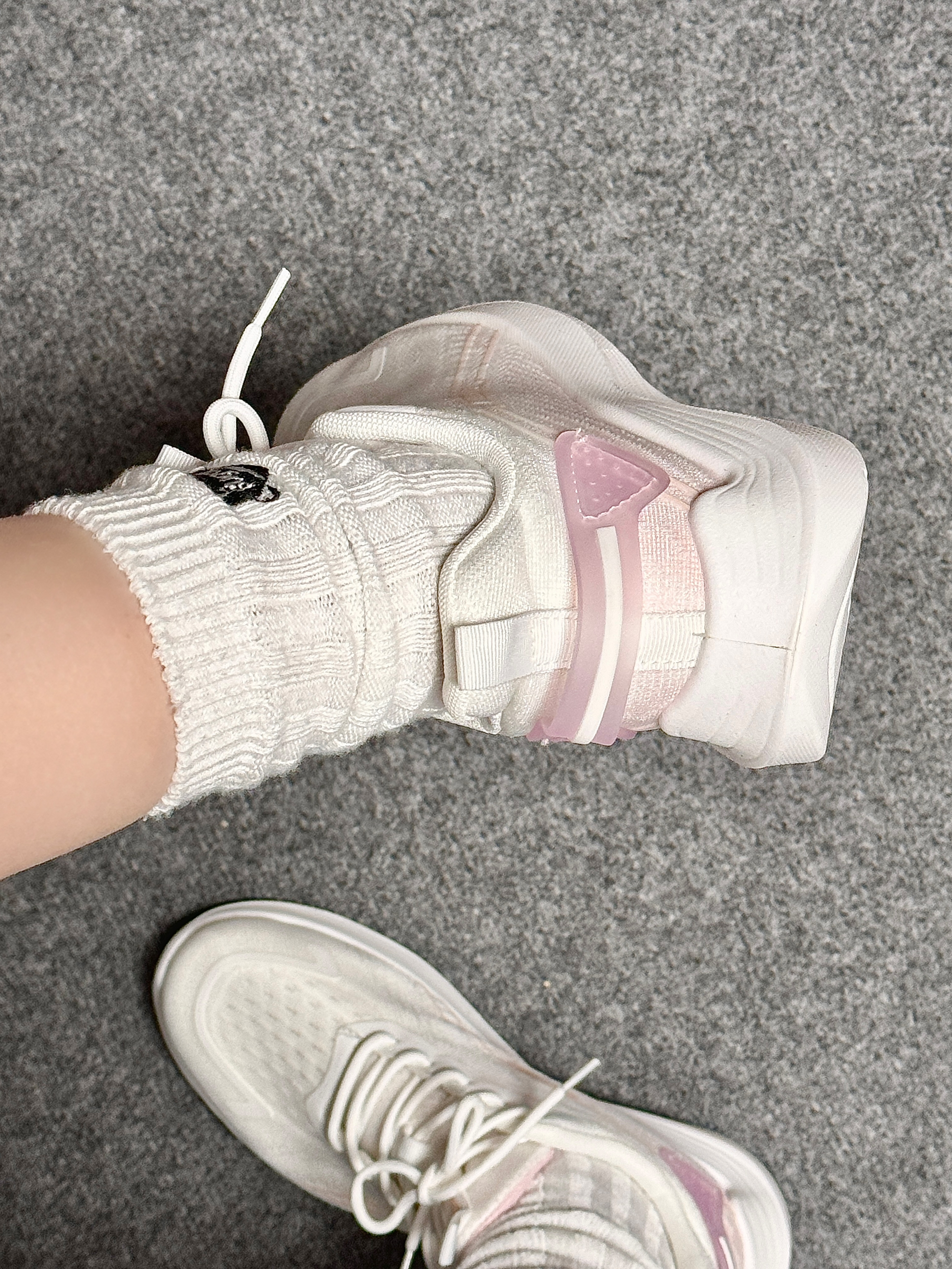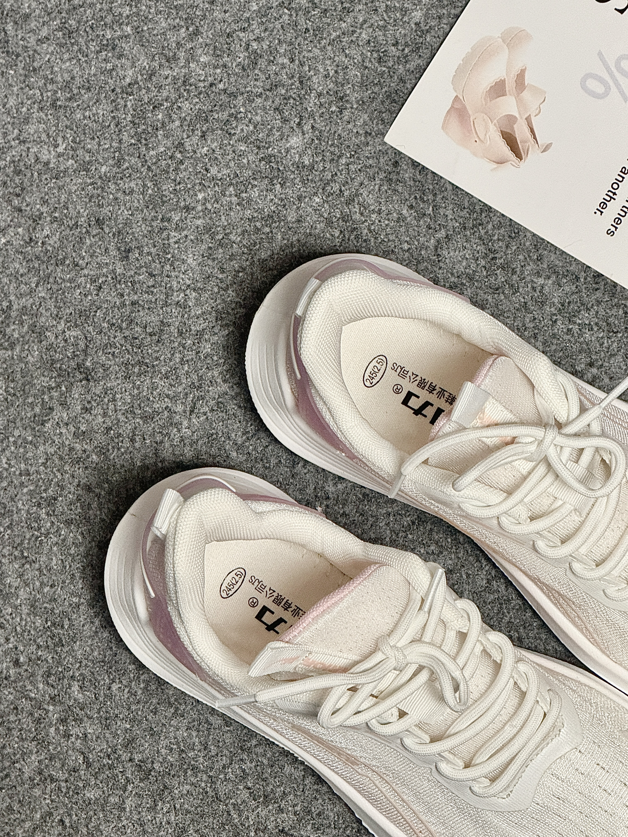 淡淡的蜜桃粉配色也泰适合春天啦 清新又百搭 而且鞋底也超软的 网纱鞋面透气 不会闷脚哦 上脚尊嘟好温柔啊 回弹力也不错 平时搭小裙子裤子都好看哦~