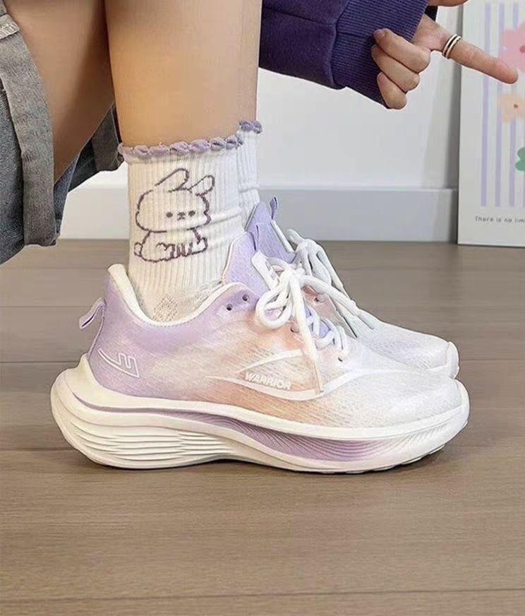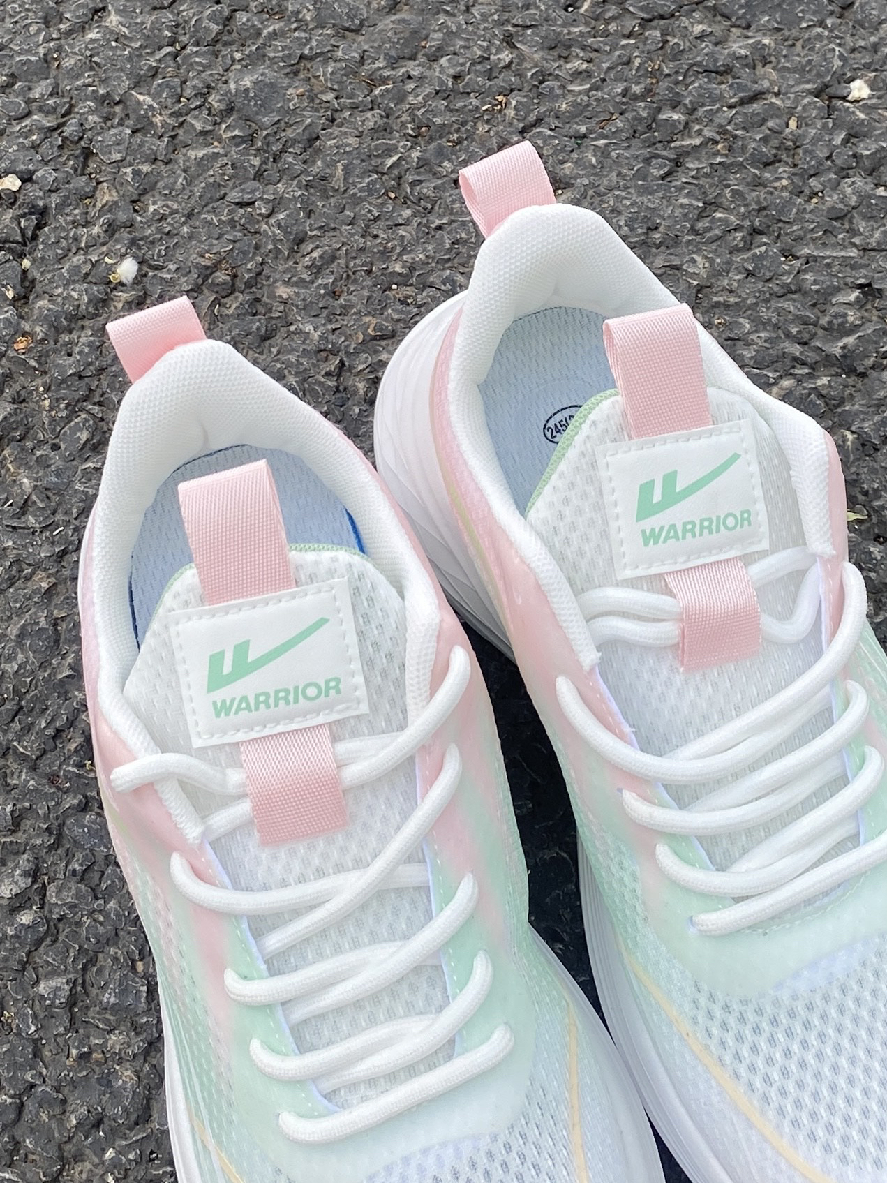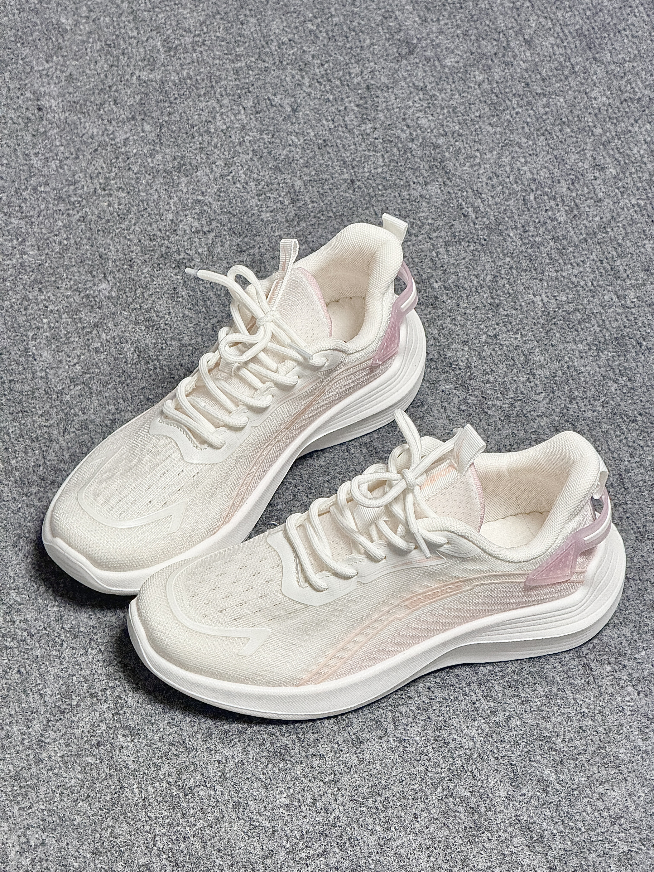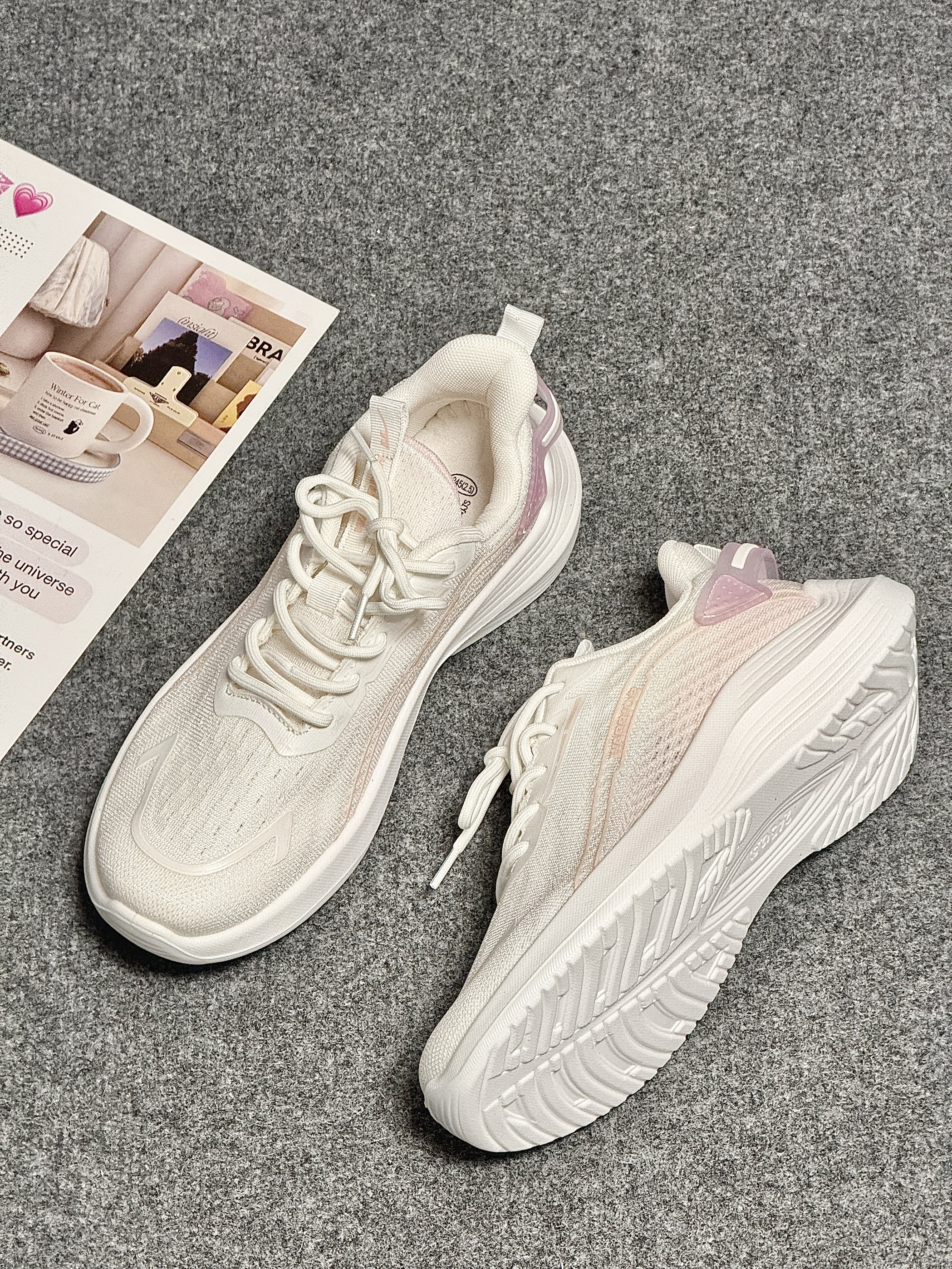 淡淡的蜜桃粉配色也泰适合春天啦 清新又百搭 而且鞋底也超软的 网纱鞋面透气 不会闷脚哦 上脚尊嘟好温柔啊 回弹力也不错 平时搭小裙子裤子都好看哦~