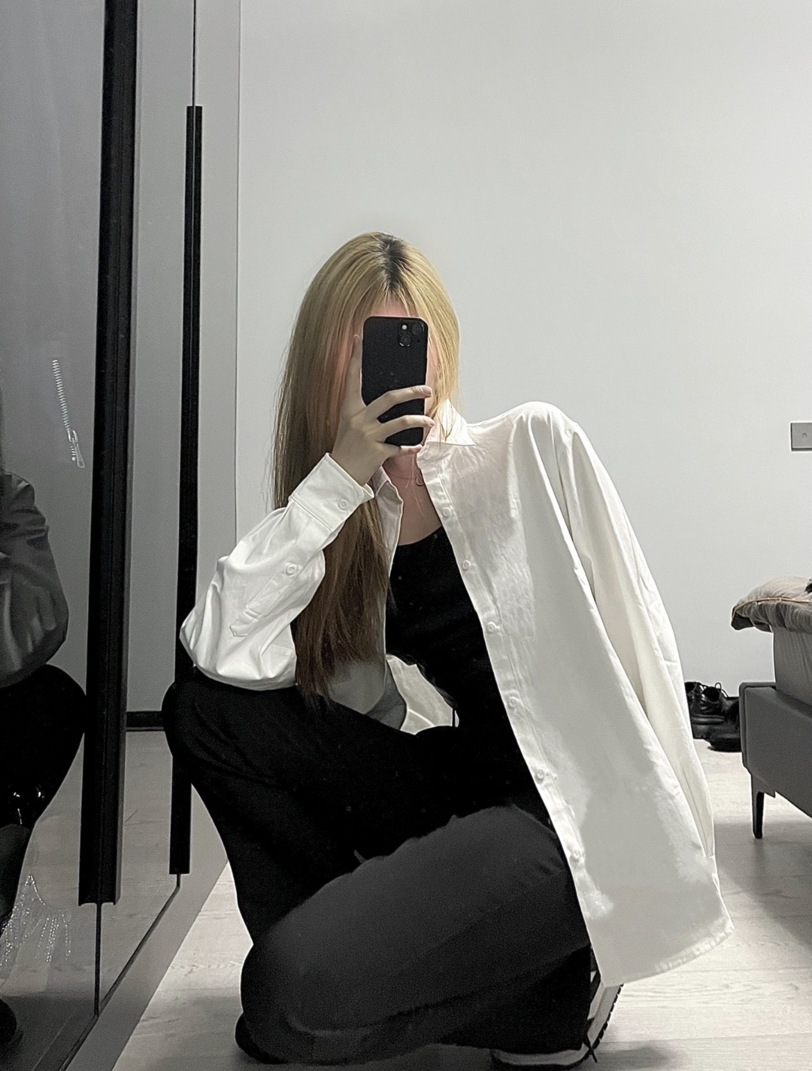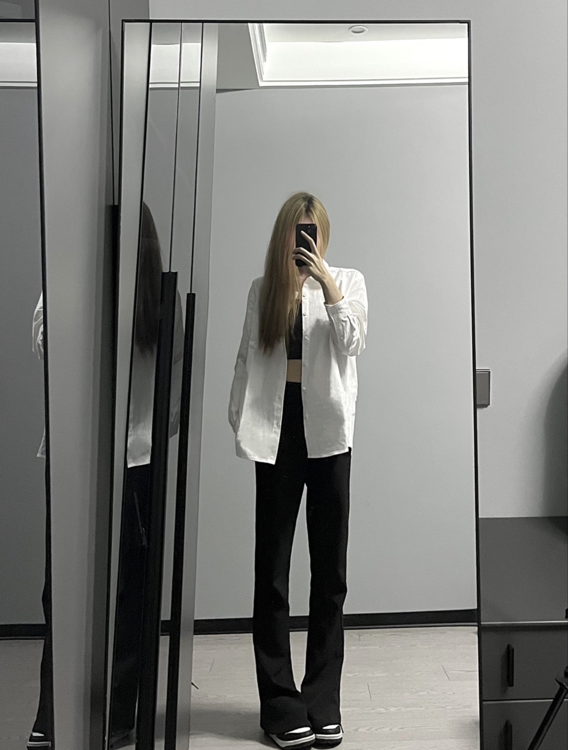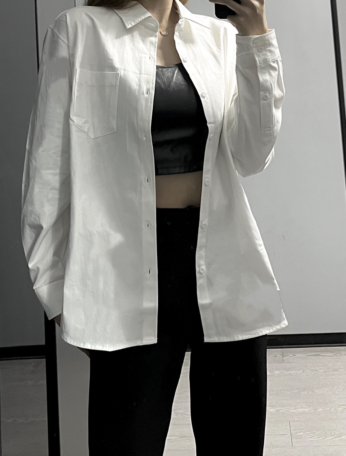 男女都可以穿的一件衬衫,宽松的版型很显瘦,黑白配真的太高级啦!