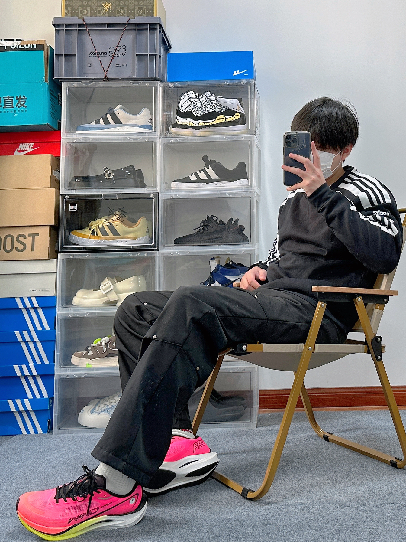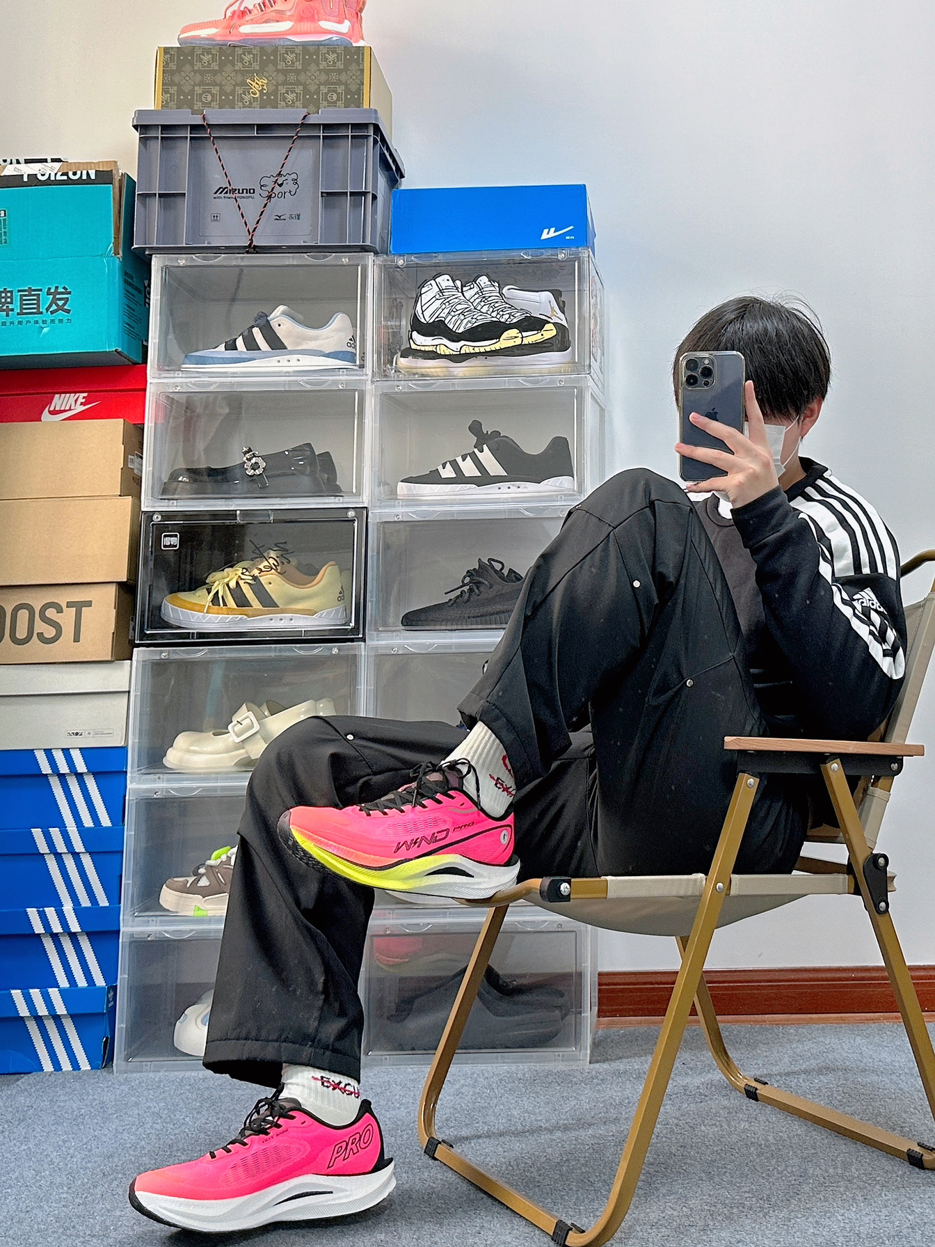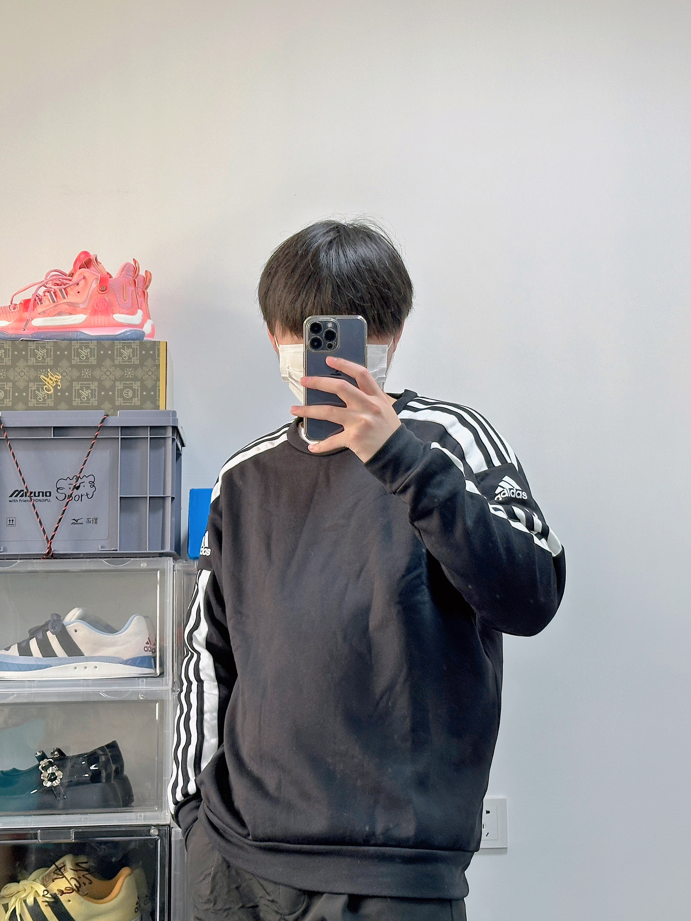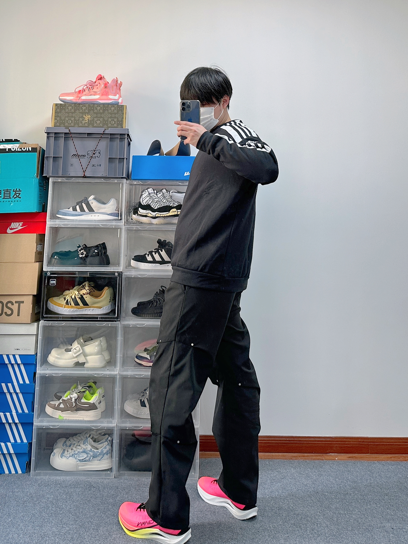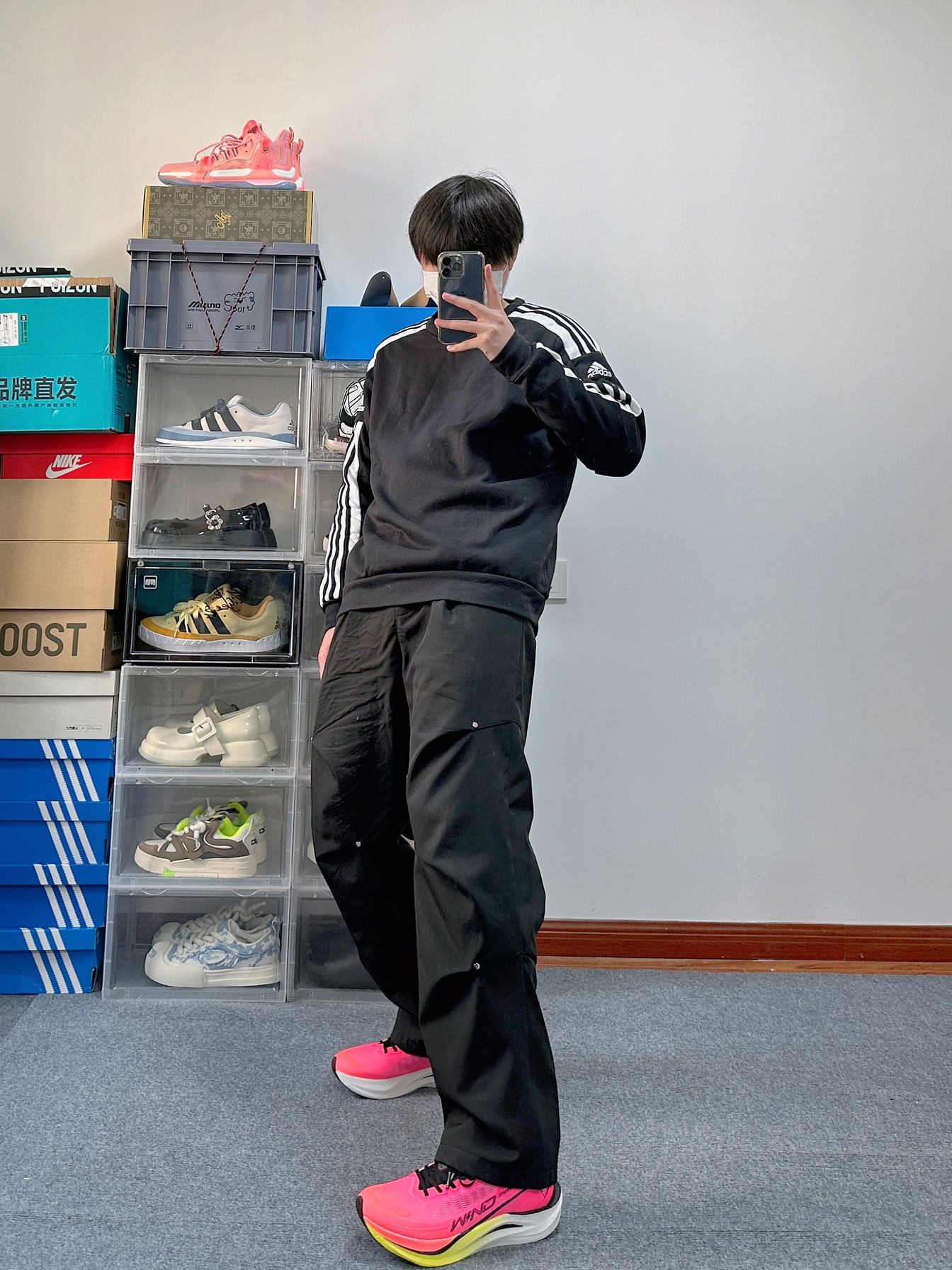 这一套略微有点显眼包 但是这么搭配确实有点帅 整体浅色系的穿搭风格也很nice 主打休闲风但同时也偏运动系的感觉 上衣来自Nike 很简单版型的一件卫衣 灰色的上衣配色很通透简单 版型有点略微的抛 身材比较瘦的朋友穿可以增加轮廓感 略胖点的朋友穿也可以遮肉 裤子就是普通的休闲运动裤 很简单的版型 和上衣搭配看起来也很简约 上衣和裤子这么简约着实有点过于低调 所以选了一双火龙果配色的中乔跑鞋飞...
