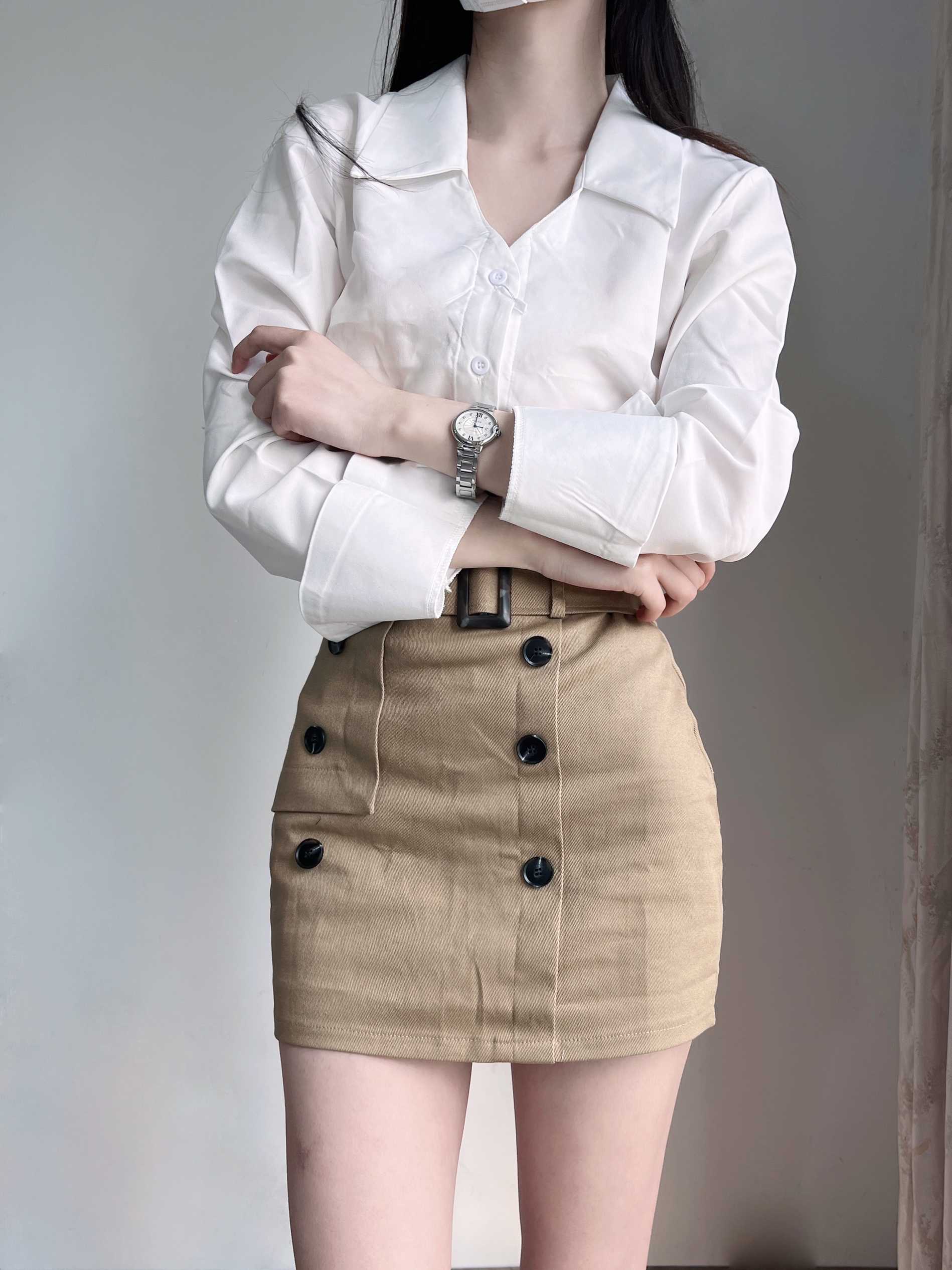 哈喽今日穿搭分享来啦 白色衬衫➕卡其色包臀裙 最近很喜欢这种气质姐姐类型的穿搭 有时候一个简单的饰品 真的会让穿搭有质的飞跃! 今天是用银色手表点缀 圆圆的表盘十闪钻 精致耐看的款式 简约而不简单 日常通勤佩戴很是有气质