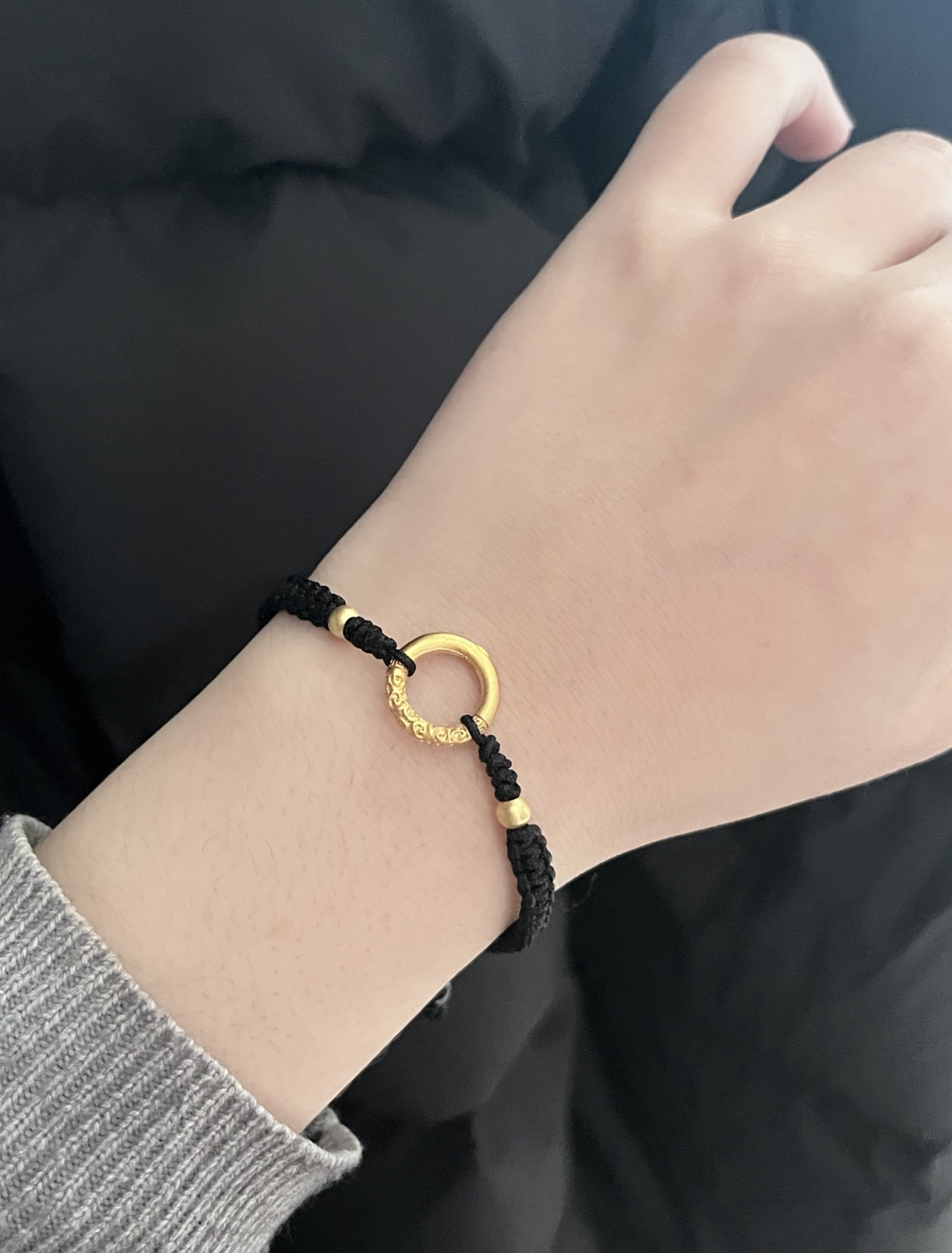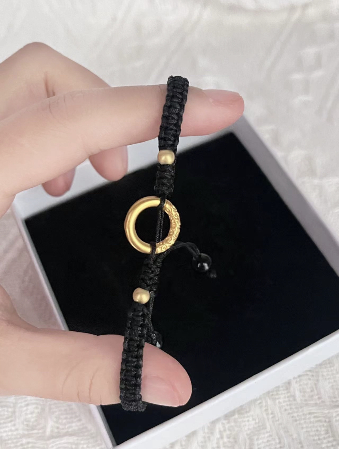 新中式国潮风手链 乾坤圈平安扣搭配黑色手绳 黑金配色搭配足金平安扣 简约好看又百搭的款式 男女都可以戴 百搭不挑人 送男朋友 闺蜜也很合适 而且寓意满满~ 带上平安扣 健健康康 平平安安