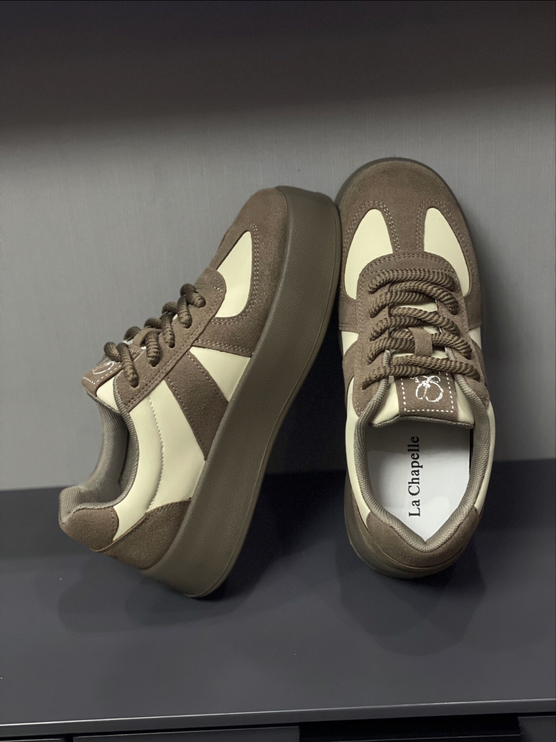 本篇笔记关联了La Chapelle/拉夏贝尔 舒适轻便 软底 百搭 增高厚底 德训鞋 LA-PM6633 米色/棕色等商品,为用户提供真实的使用体验和购买参考。