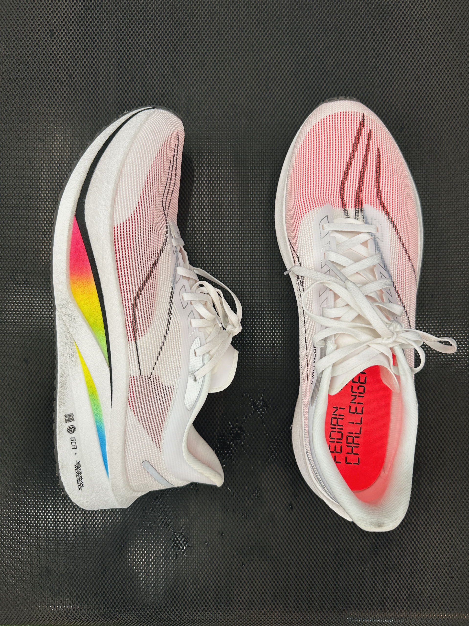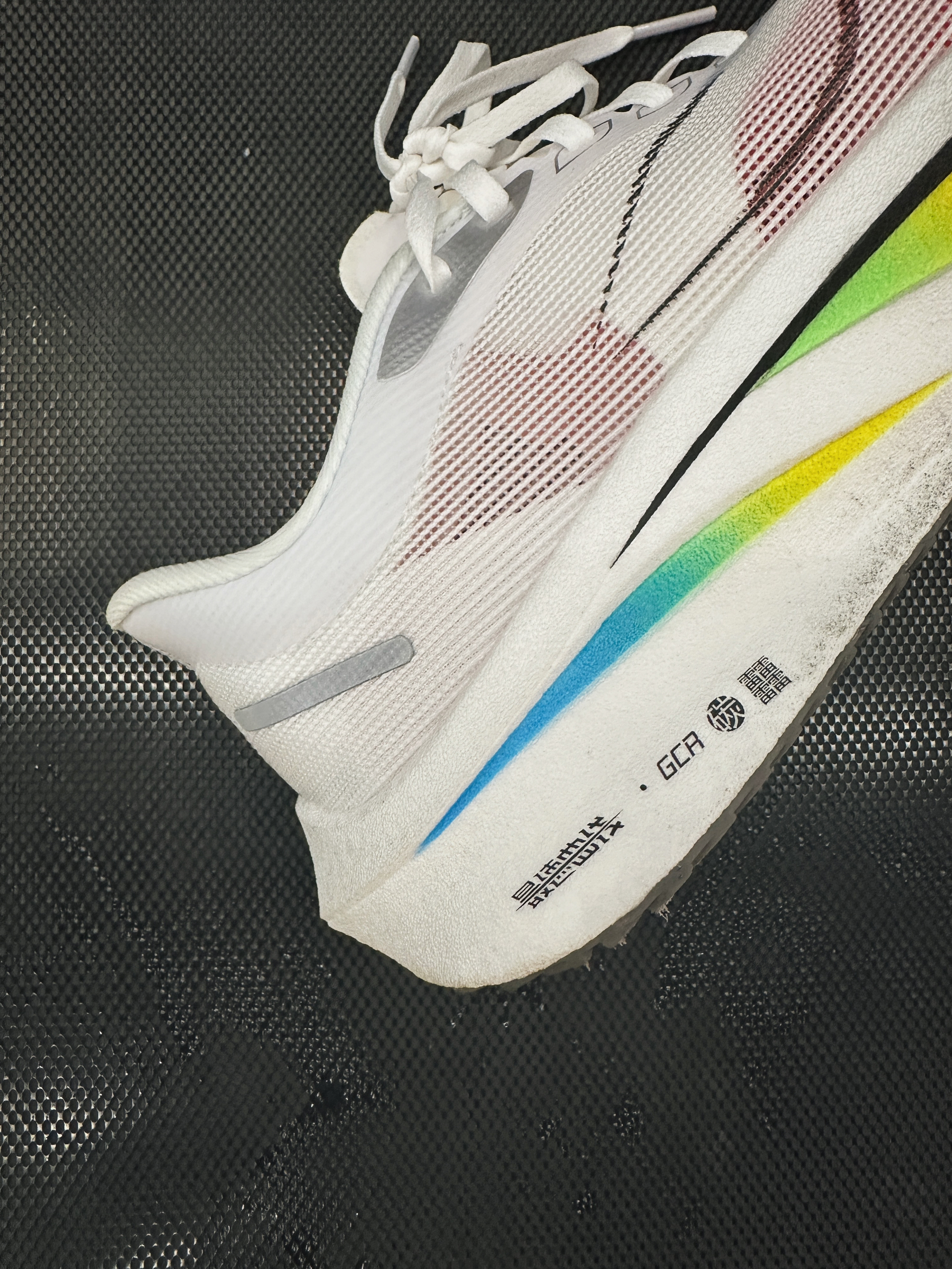 老实说, 之前穿【飞电4U】跑了两次, 除了能直接感受到凶猛的回弹以外, 并不能特别体验到, 今年主推的「最速曲线」的优势所在, 可能还是太菜的原因! - 但今晚上脚【飞电4C】之后, 感觉马上就来了! …… 4C的足弓支撑非常充分, 平足朋友已经会感受特别明显, 而且整个足弓弧度的设计, 特别容易带动到向前滚动/过渡, 而这种向前趋势的加速, 也不需要太快的配速驱动, 从540一直跑到430, ...