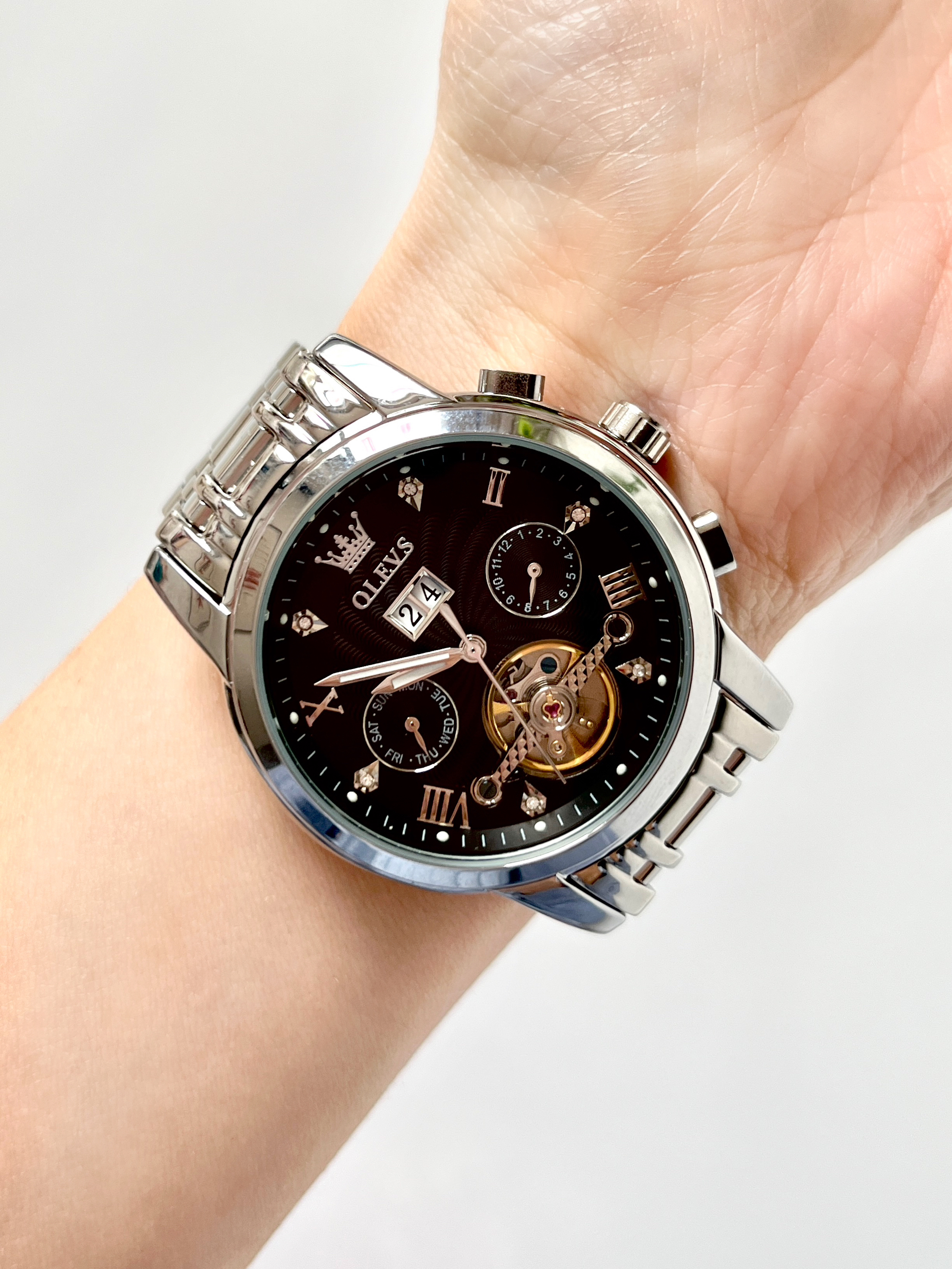 本篇笔记关联了OLEVS/欧利时 瑞士认证品牌双日历黑科技高档钢带霸气多功能夜光防水运动镂空机械男士手表 本色黑面、OLEVS/欧利时 钢带潮流镂空时尚防水式夜光高档次大表盘多功能全自动款机械男表 钢带本黑等商品,为用户提供真实的使用体验和购买参考。