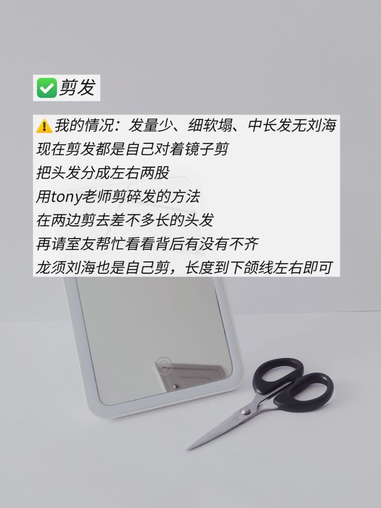 我上一次在理发店烫头已经是21年 剪发则是在22年,已经两年没去过理发店 除了因为做造型却很伤发 还因为💈实在是太贵 . 现在我洗/剪/护/烫发都是自己在家里弄 硬是把以前的干枯打结、根根分叉的稻草发 养成了抖抖有光泽的绸缎发 分享我的一些精简理发经验⬇️ 不过个人情况不同,仅供大家参考⚠️ . ▪️剪发 ⚠️我的情况:发量少、细软塌、中长发无刘海 现在剪发都是自己对着镜子剪 把头发分成左右两股 ...