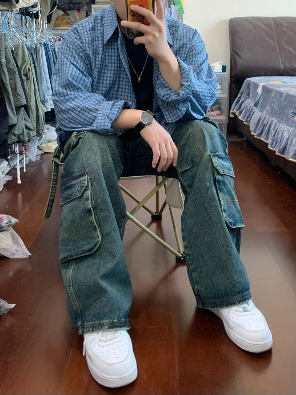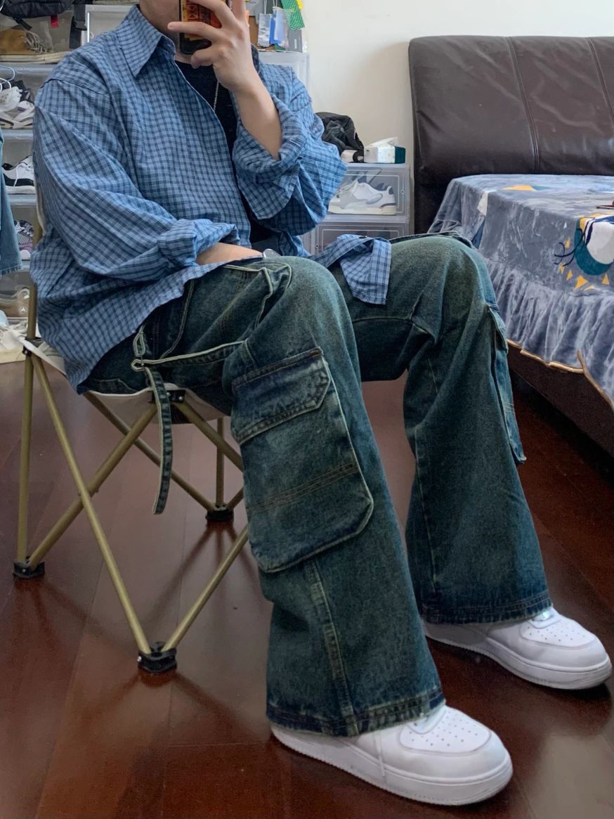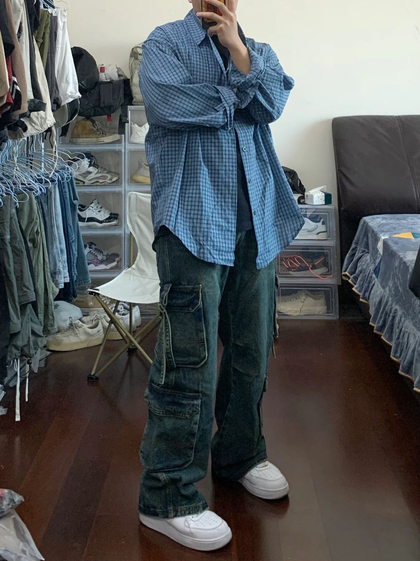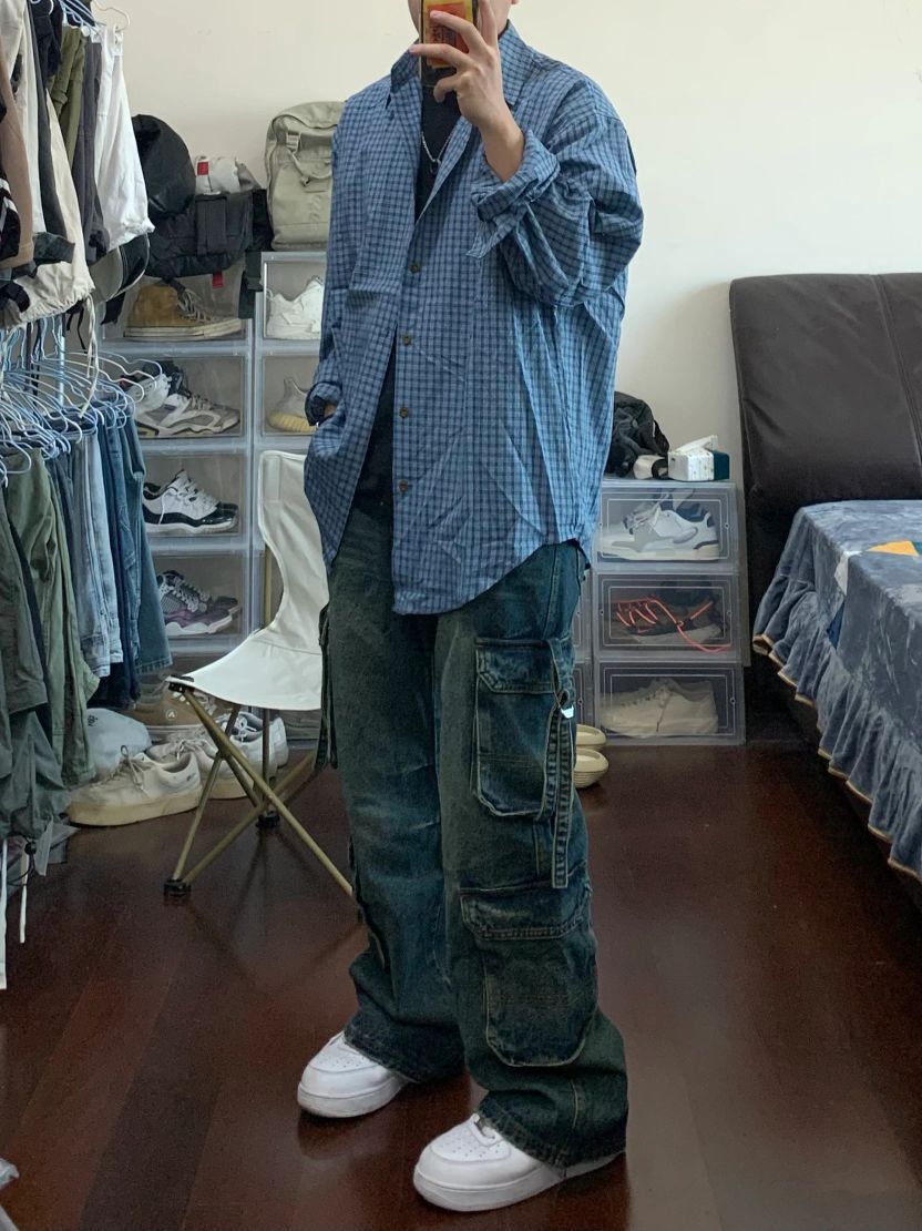 同色系搭配不会错! 蓝色格子衬衫➕复古牛仔裤