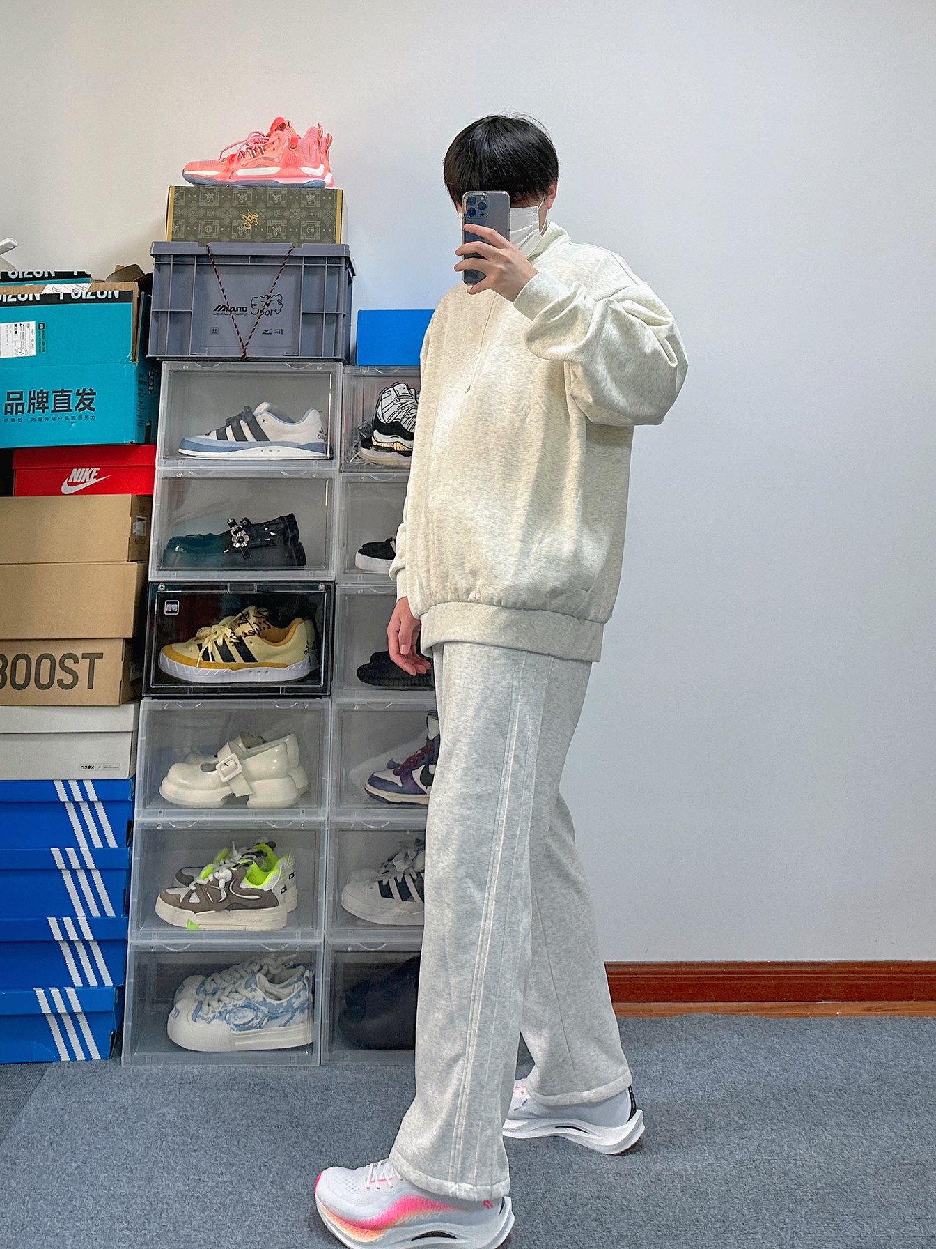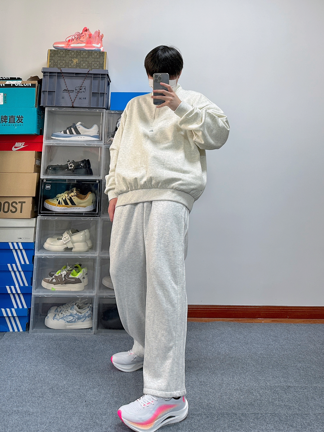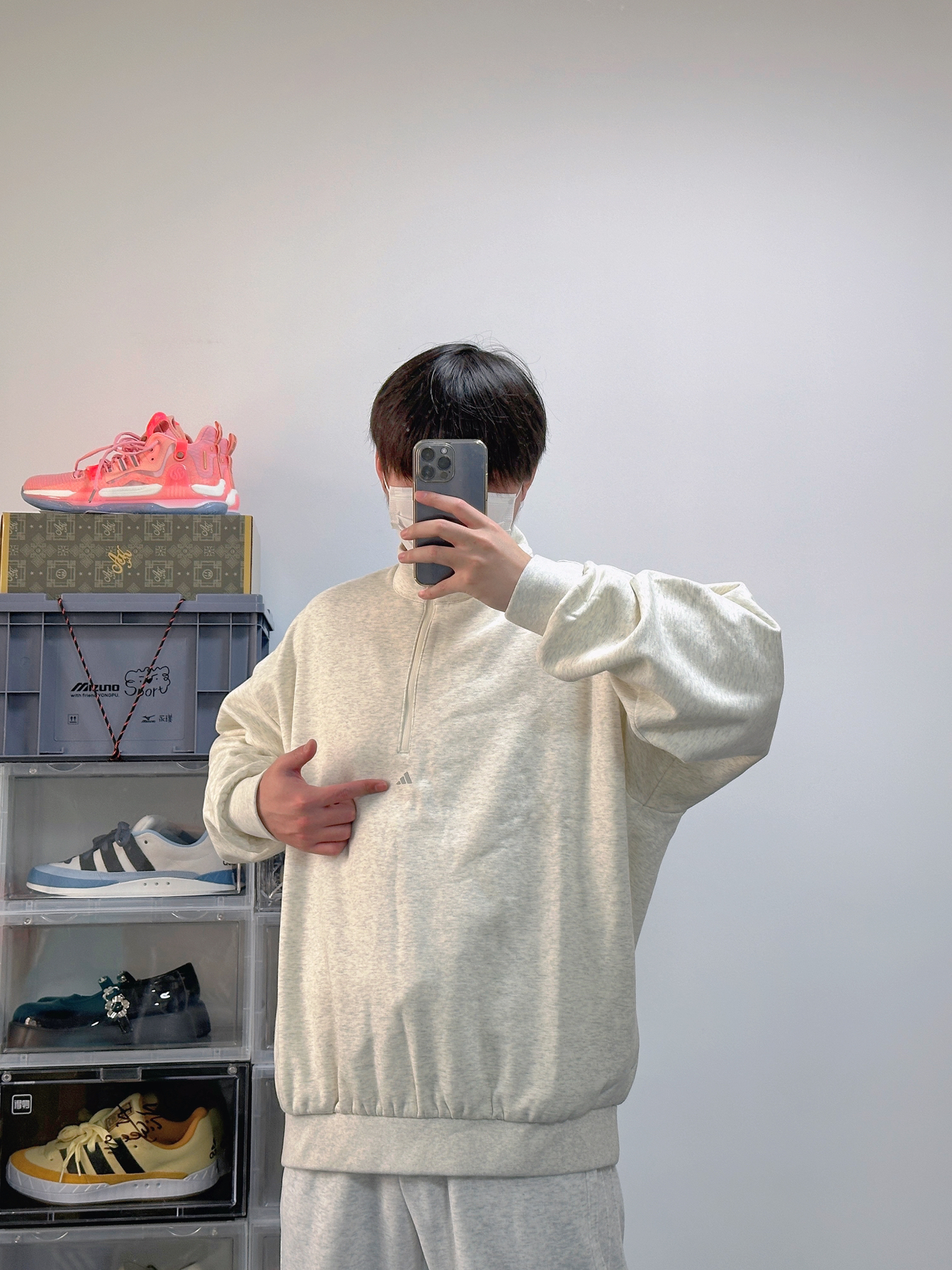 运动系的boy穿搭也太加分了 尤其还是浅色系的搭配还特别凸显简单干净 上衣是Adiads的高领卫衣 浅色配色上身很显白 面料属于略微厚实 正好早晚温差大可以应对 裤子就是普通的运动阔腿裤 宽松的版型对略微胖的朋友也很友好 鞋子是中乔的强风2 稳定性很不错还可以兼顾到体育课