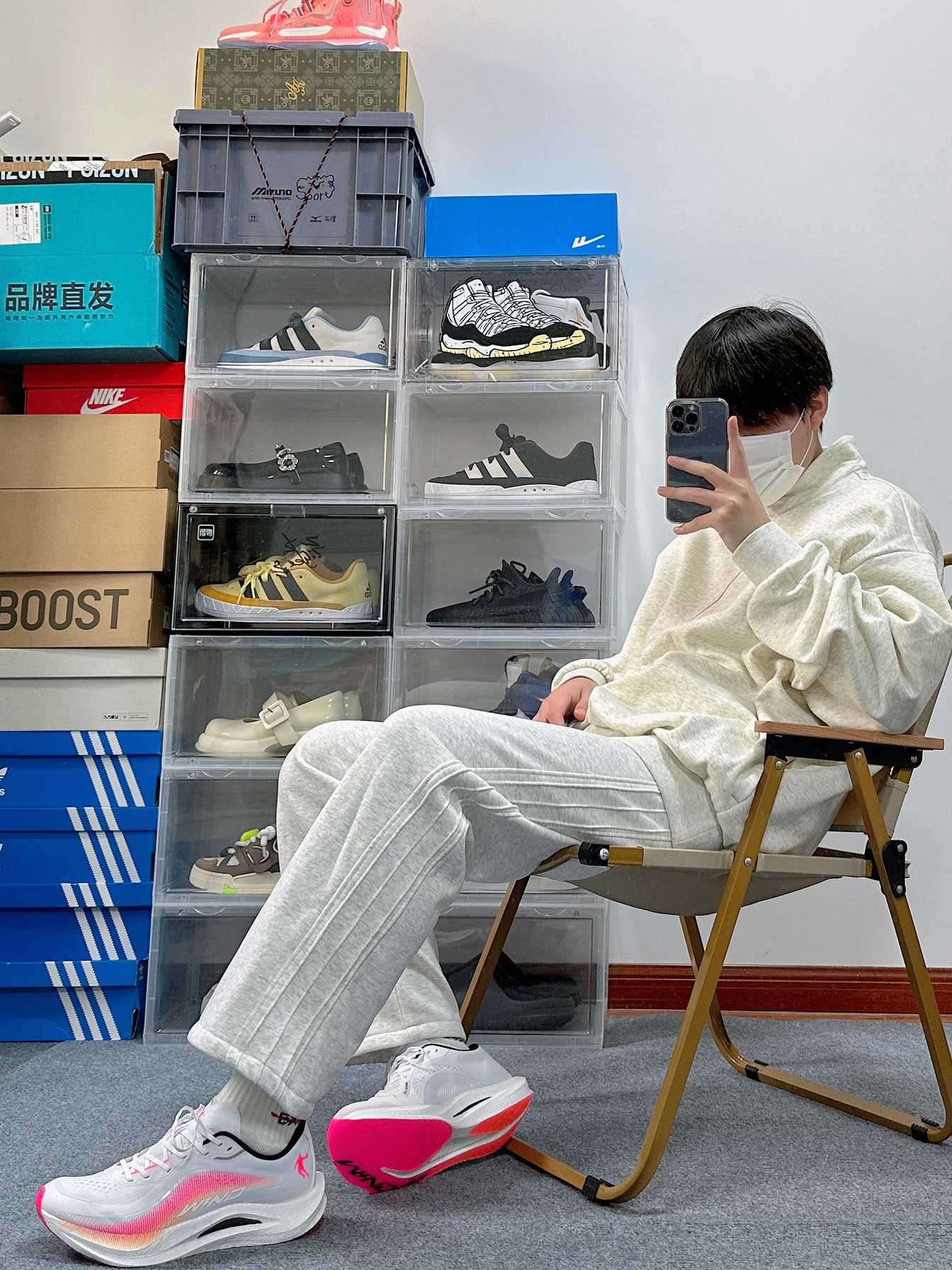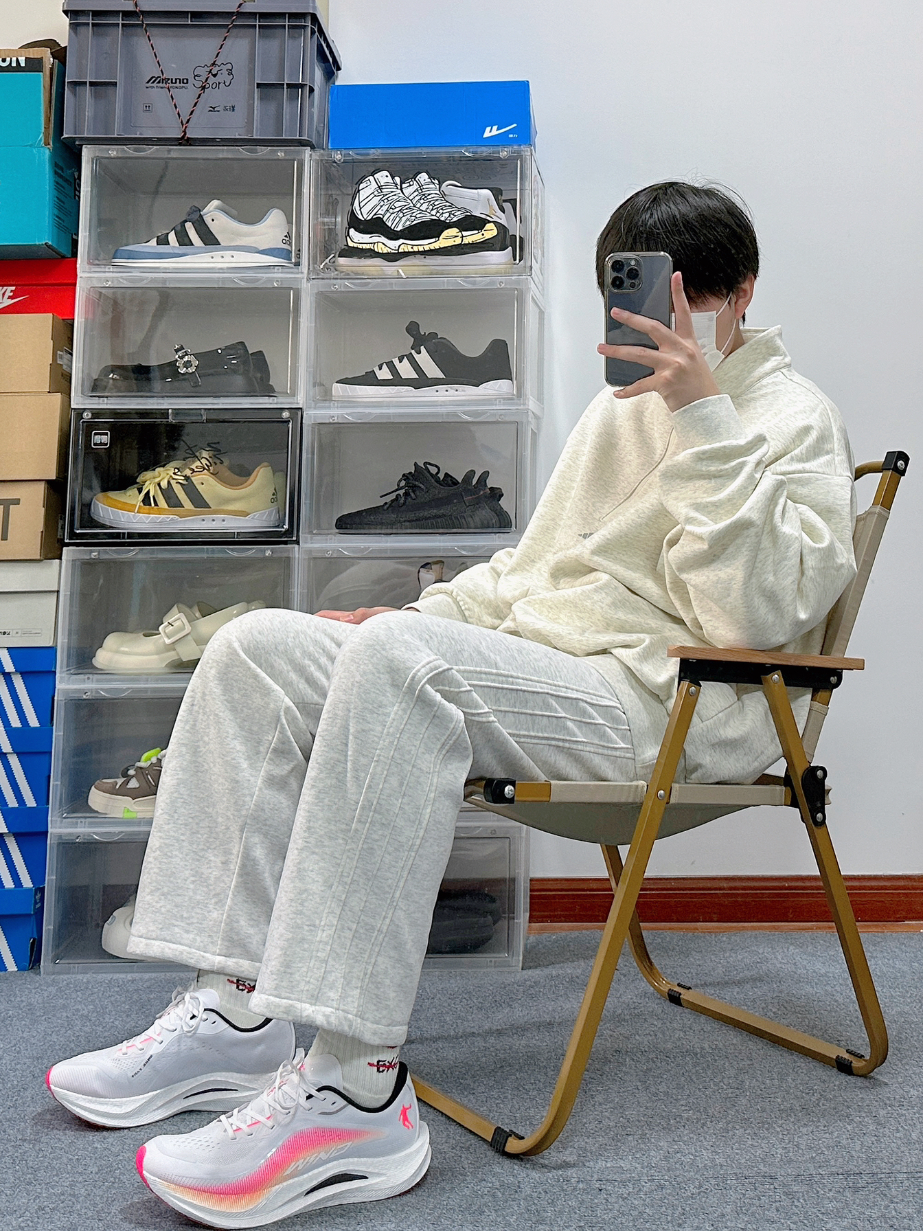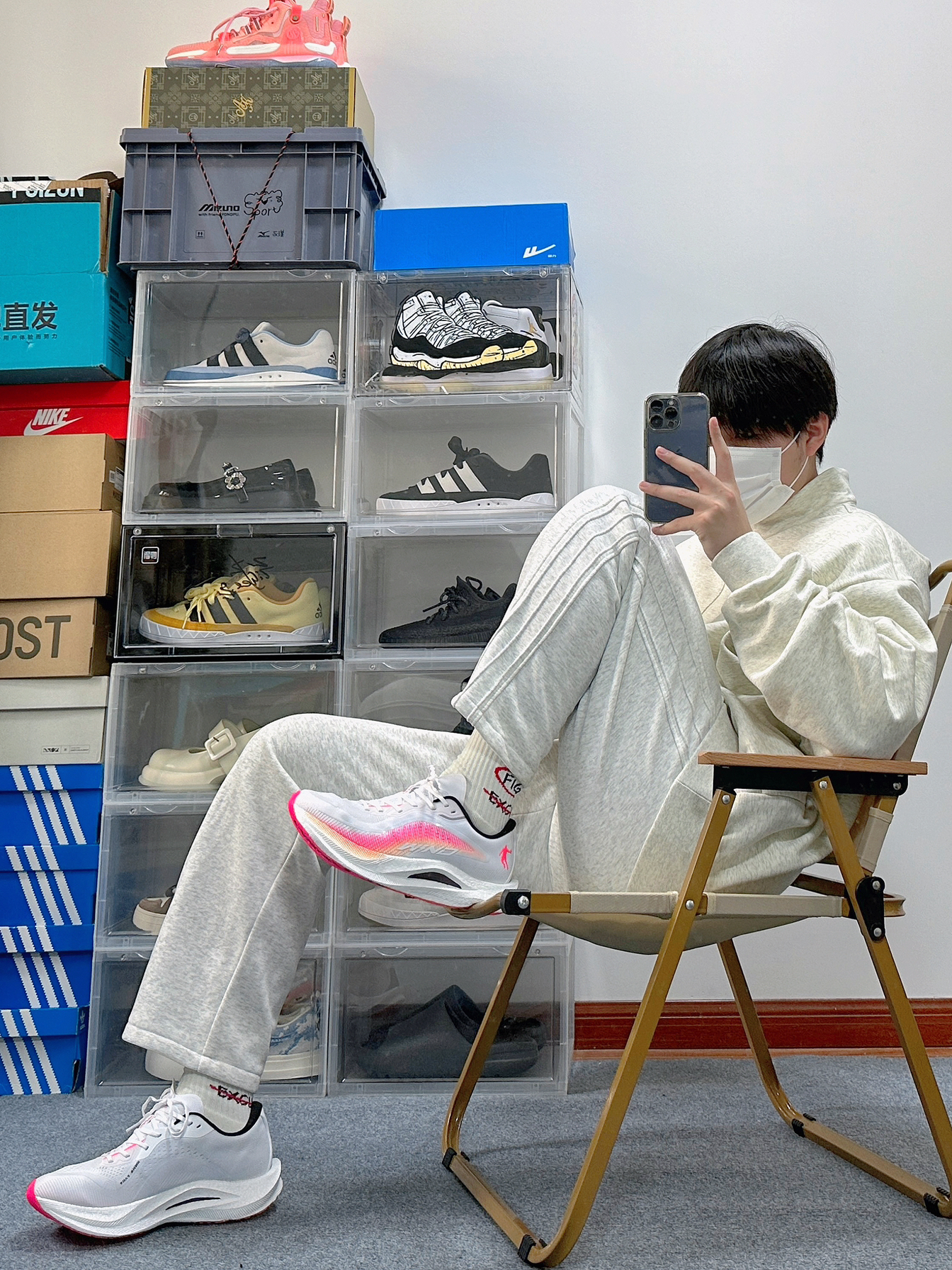 运动系的boy穿搭也太加分了 尤其还是浅色系的搭配还特别凸显简单干净 上衣是Adiads的高领卫衣 浅色配色上身很显白 面料属于略微厚实 正好早晚温差大可以应对 裤子就是普通的运动阔腿裤 宽松的版型对略微胖的朋友也很友好 鞋子是中乔的强风2 稳定性很不错还可以兼顾到体育课