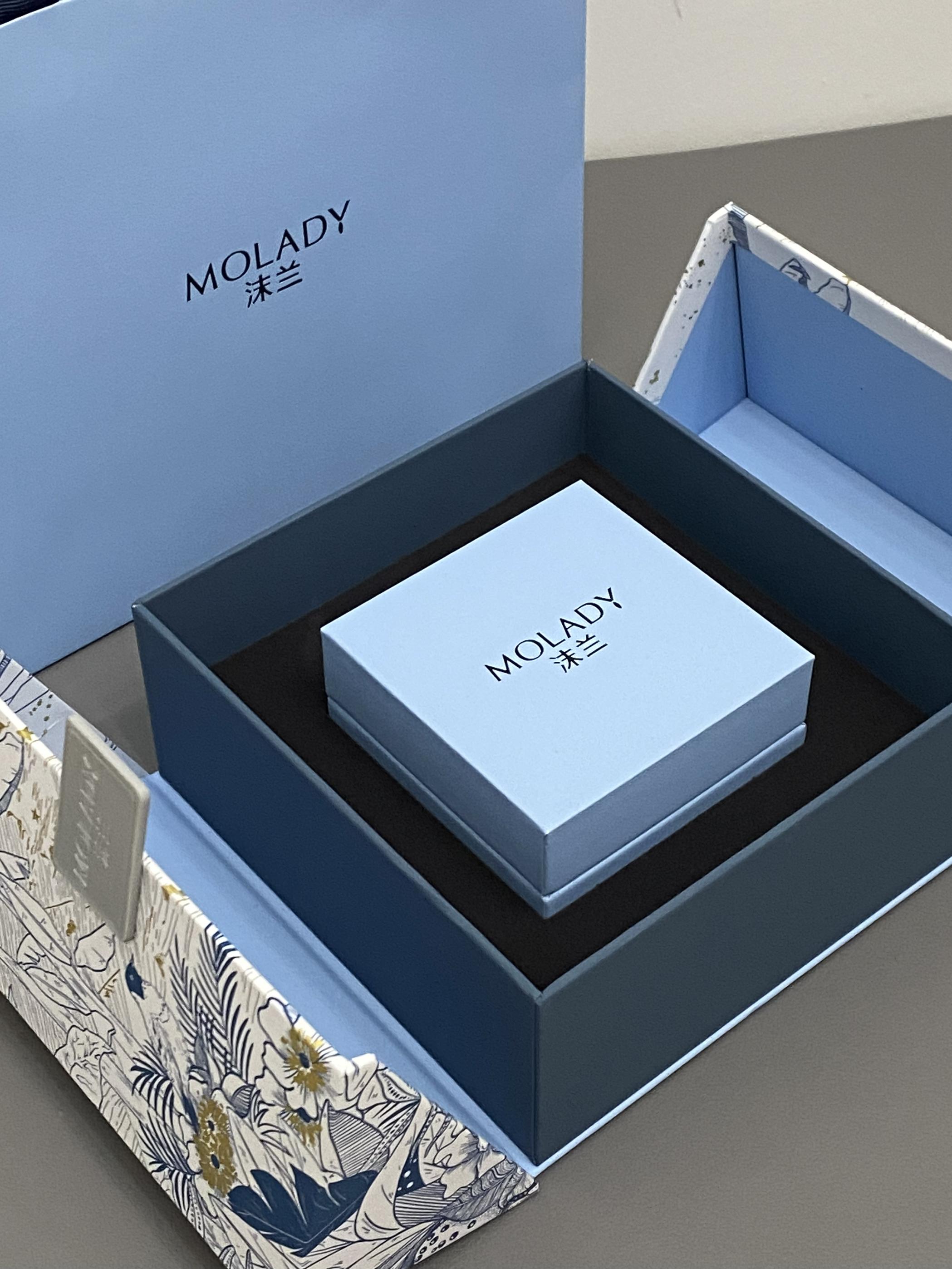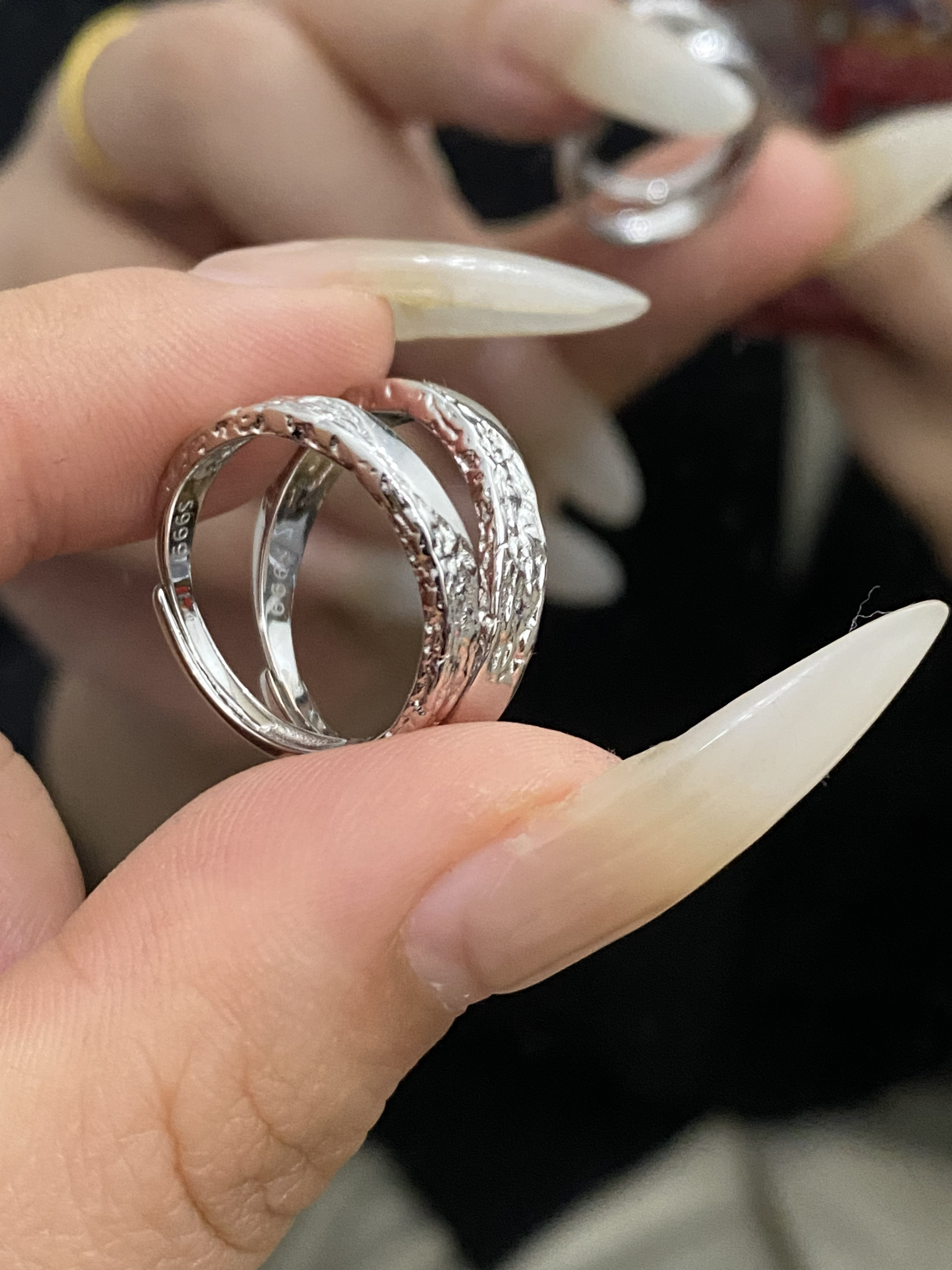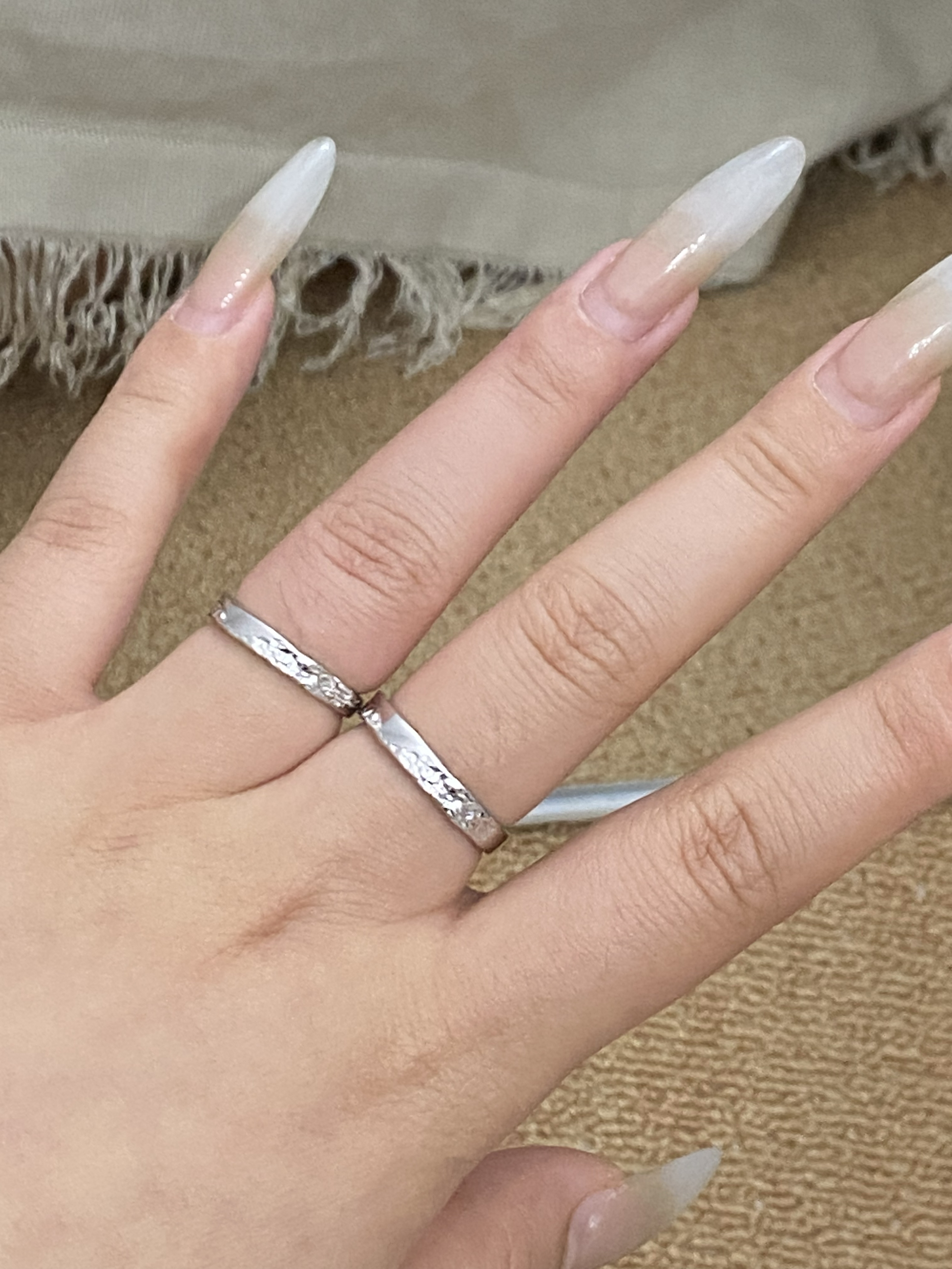 还是礼盒装的呢 看起来非常的高贵 而且还有手提袋! 刚刚好兼职第一份工资 给我们两个买了对戒 还可以刻名字 满足了大学生谈恋爱的幸福感