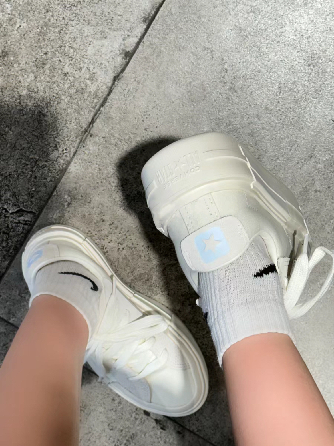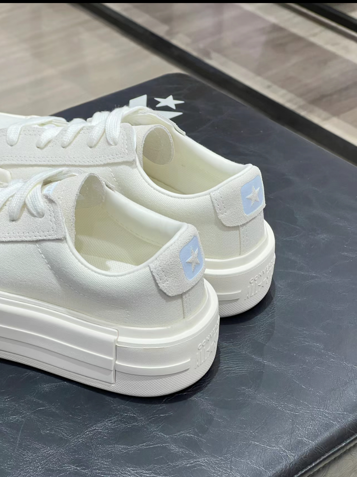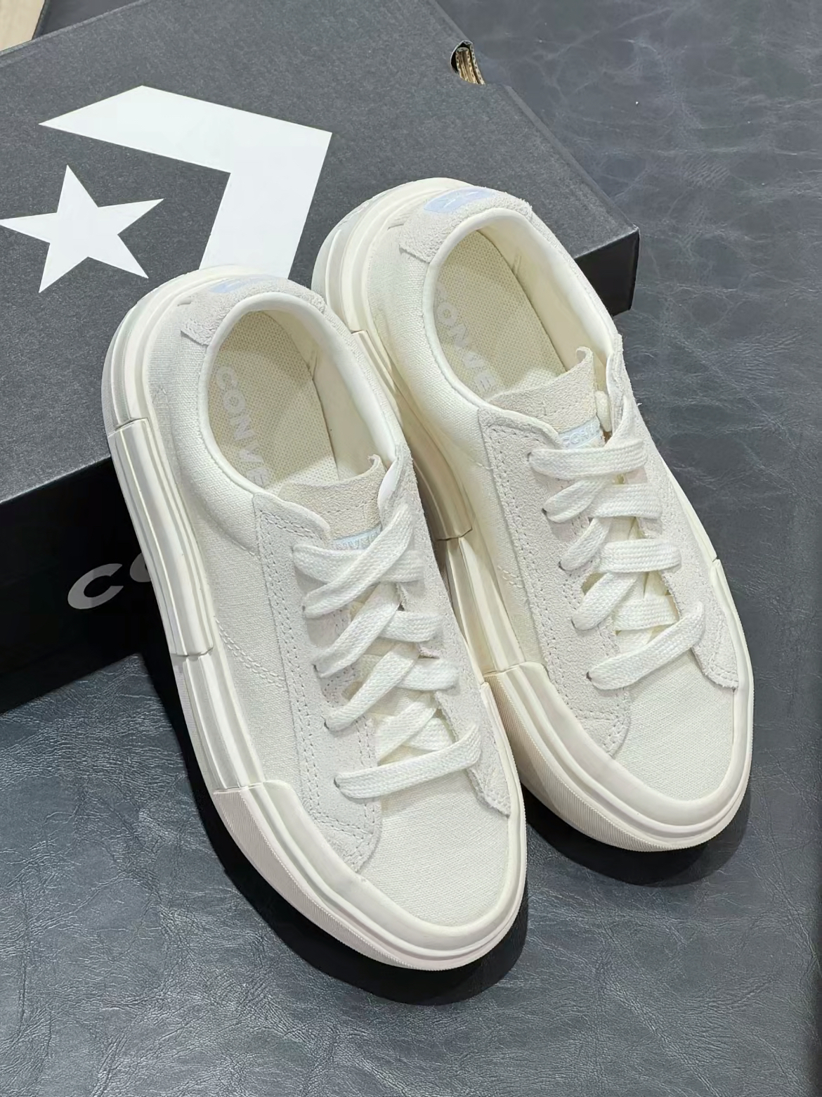 好喜欢这双匡威UU! 新出的低帮款我要穿一个夏天!! 第一眼就喜欢这个后标的奶蓝色 感觉比1970s要轻 增高4cm!不磨脚! 颜色真的很春夏 不敢想象搭配小裙子就会多仙🧚🏻♀️ 干干净净的白色尊的很百搭🥹🥹