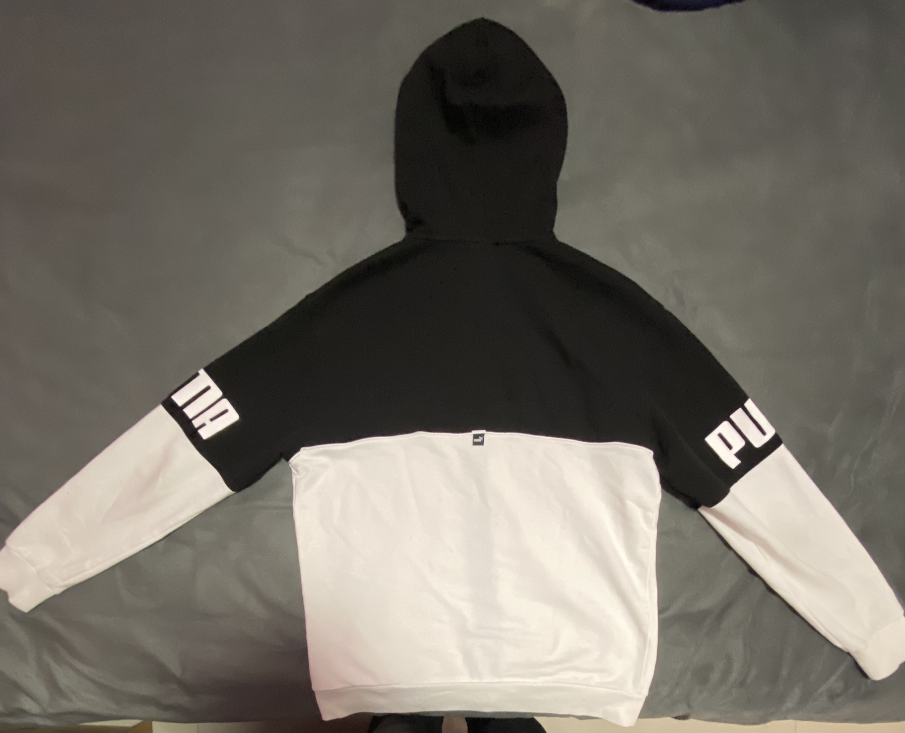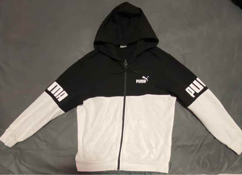 衣服质感很好,上身舒适,黑白配色经典百搭,袖子puma logo简约大气。