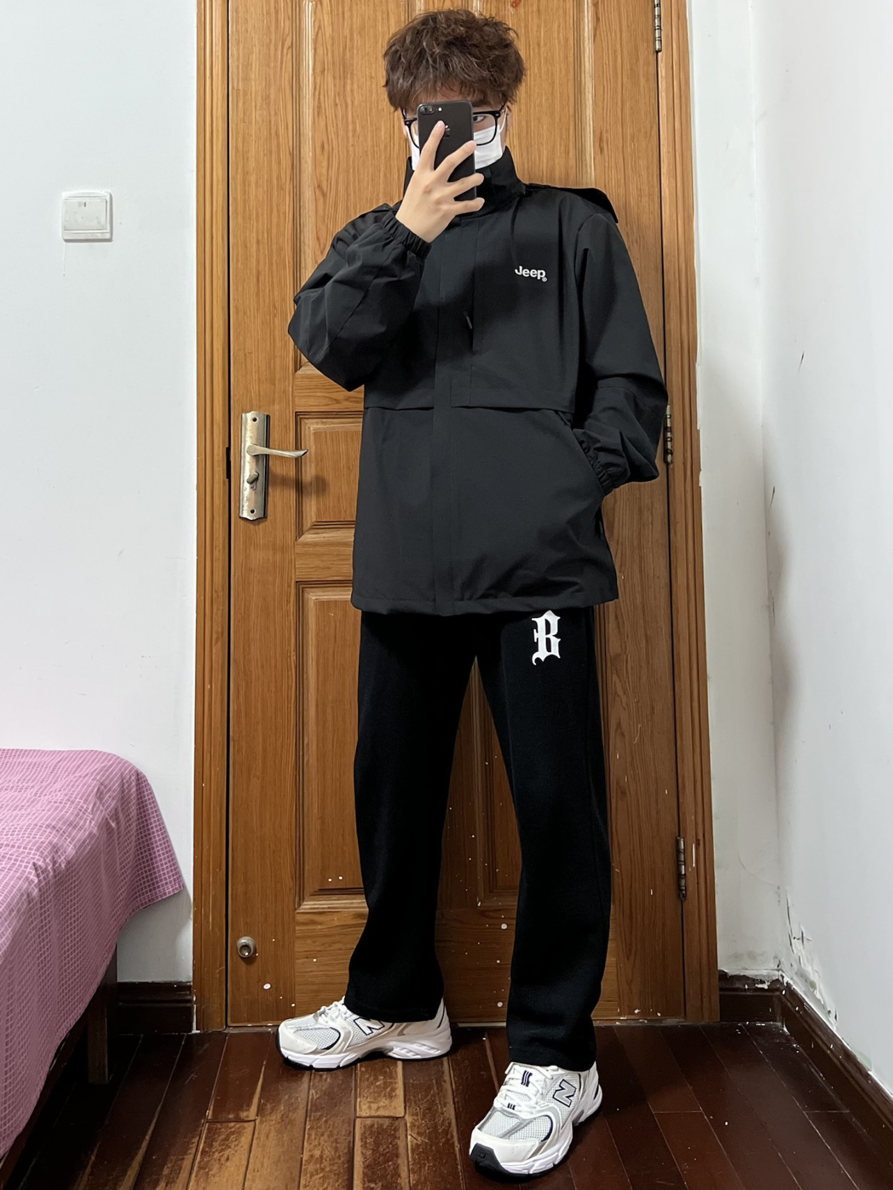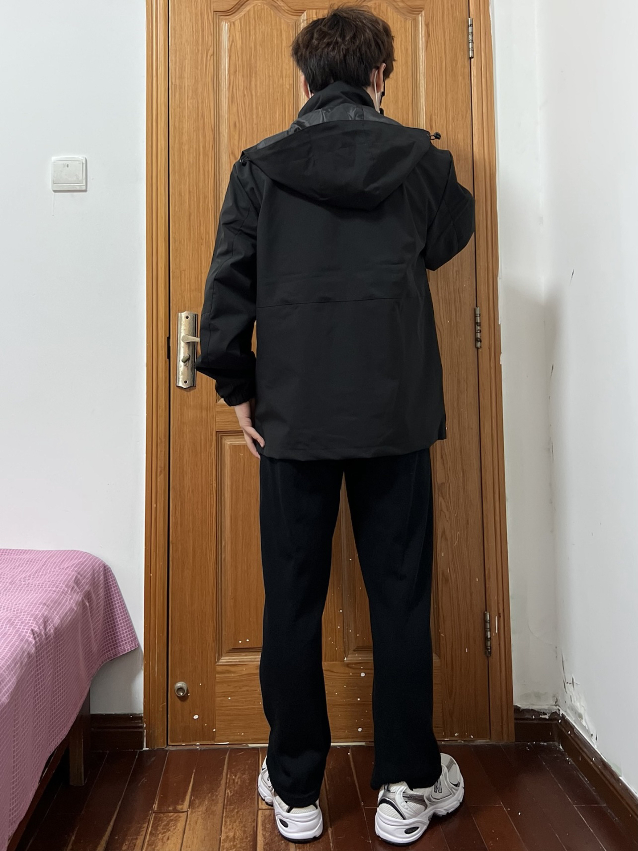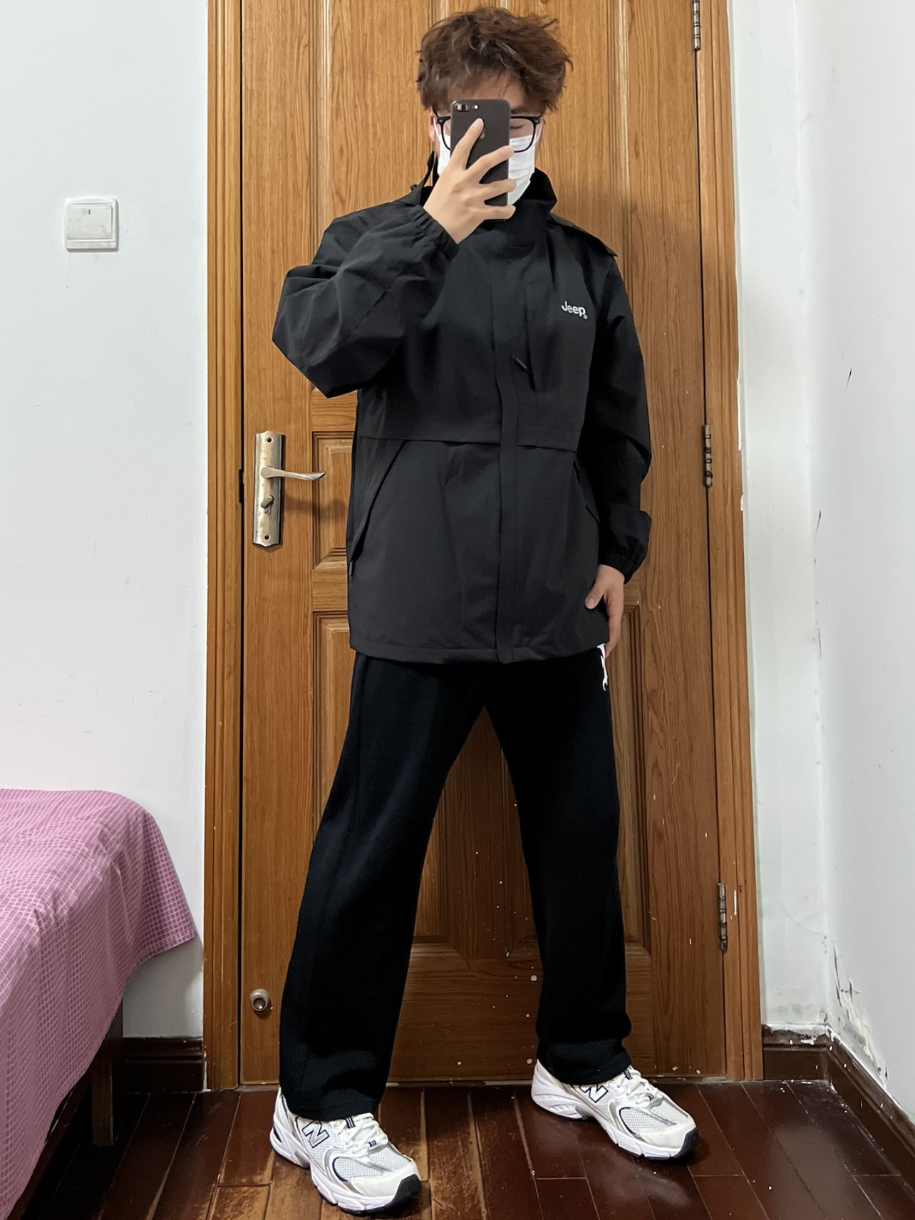 今日份穿搭分享🎉 Jeep吉普 可拆卸连帽冲锋衣 脱掉羽绒服穿什么呢❓那必须的冲锋衣 防风防雨日常穿搭不要太方便啦 黑色冲锋衣超级耐脏还百搭对男生太合适了 胸口一个白色小logo整体为拼接设计👍 穿衣显瘦说的就是它全方位无死角的帅 内搭一件白色长袖T恤就够啦 搭配一条黑色长裤一身黑也超帅 鞋子是NB530白银点睛之笔🉑️ 👔 Jeep 👖 黑色长裤 👟 NB530 🙋♂️ 170/120斤 2...