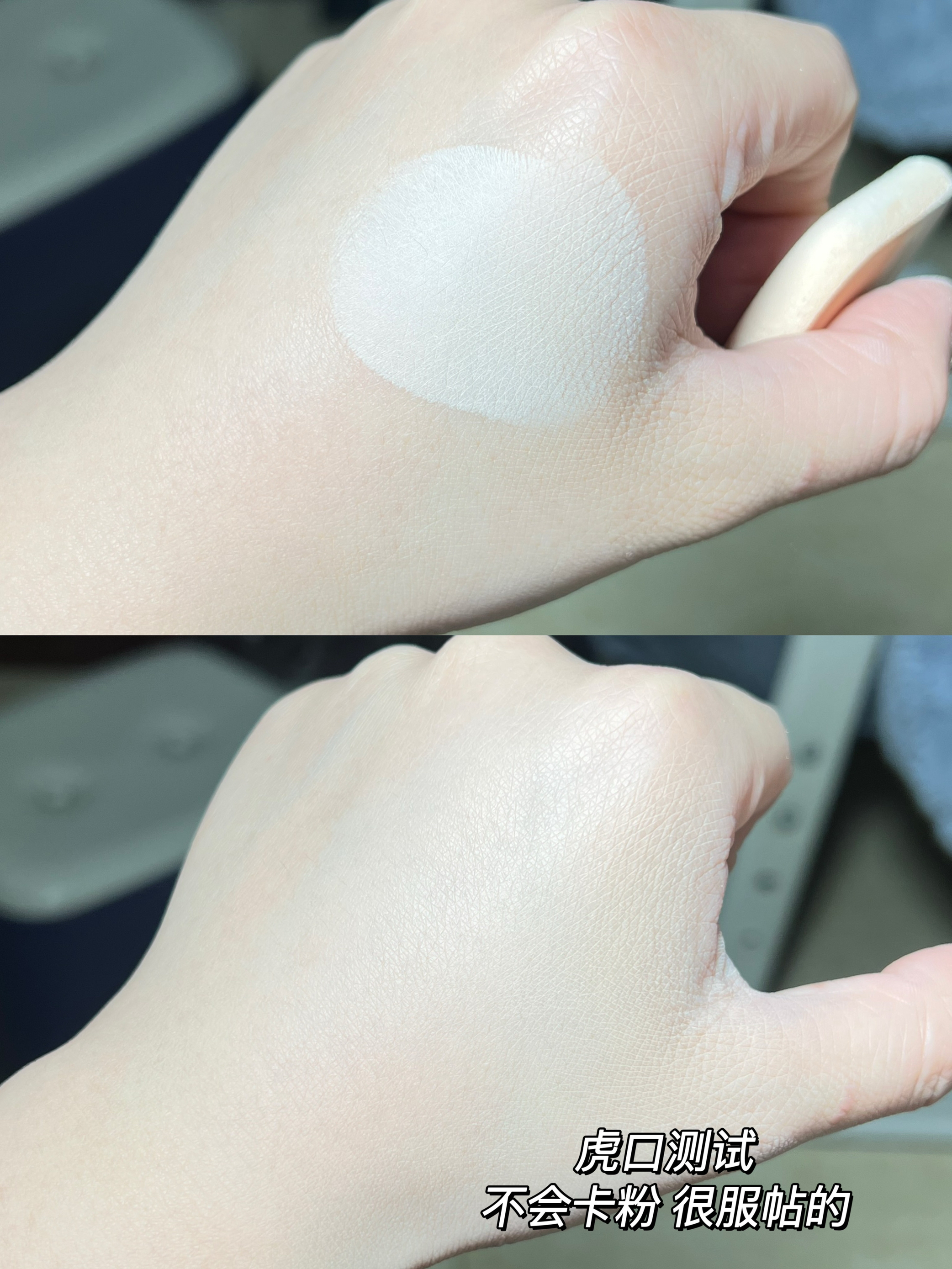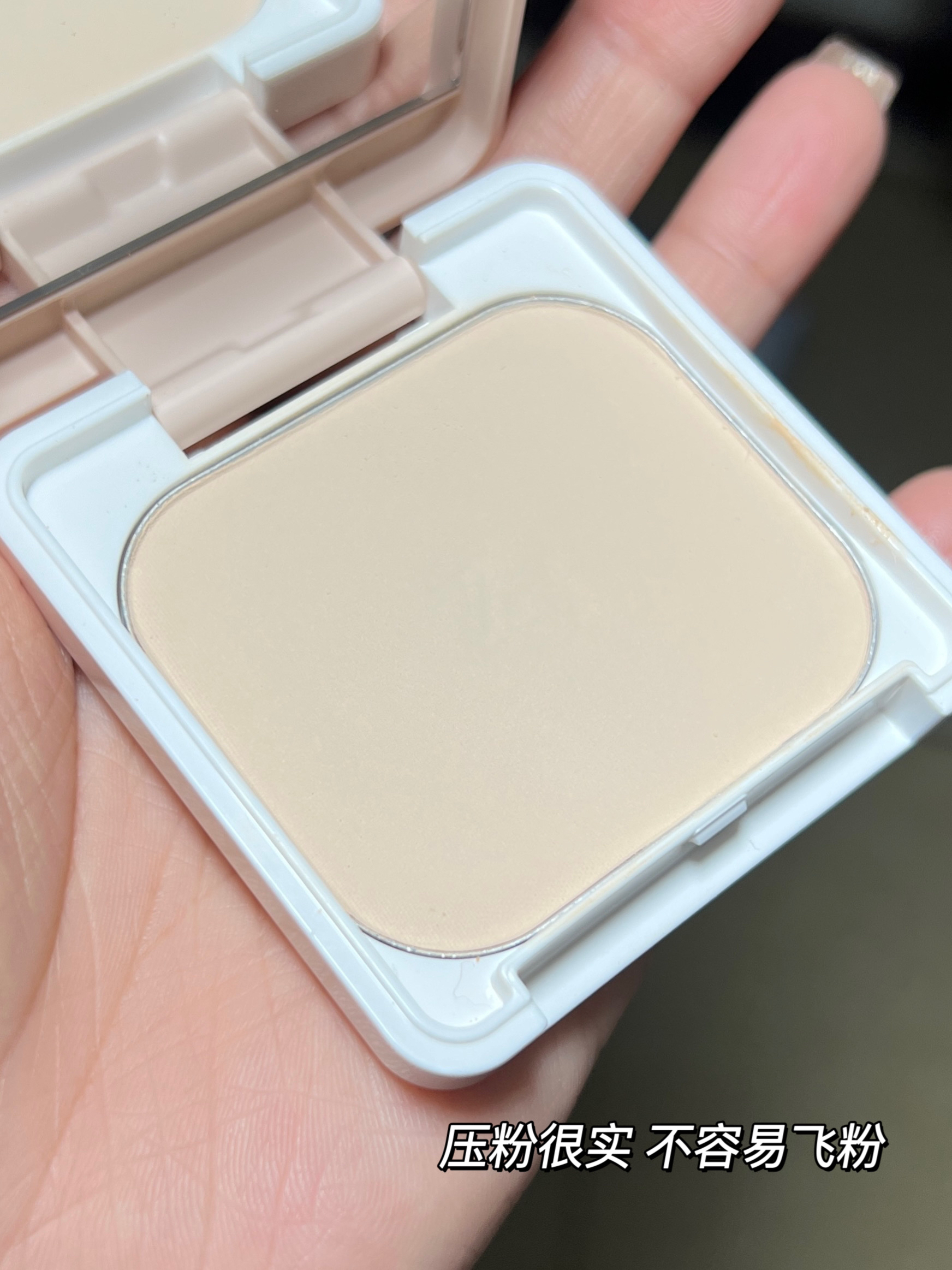 我的肤质: 黄一白(我底妆喜欢用白一点的粉底) 瑕疵皮(脸上有深浅色痘疤痘印) 姬芮 的这块粉饼,就比较适合我这种瑕疵皮。 它搭配的粉扑柔软亲肤,粉饼压粉也很实不会飞粉, 粉质很细腻,上脸很好涂抹开的。 我平时干用定妆,如果早上着急出门就会湿用。 它出来的妆效就是哑光雾面的妆效,很服帖轻薄不会卡粉。粉饼还有遮瑕力,能够遮盖住我脸上的瑕疵。 持妆也很不错的,到晚上回家底妆也不会氧化暗沉。